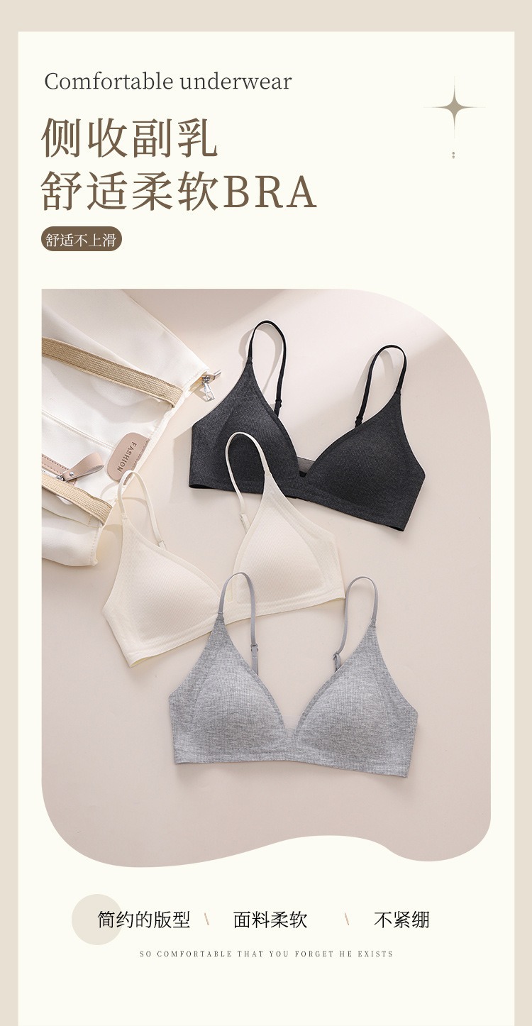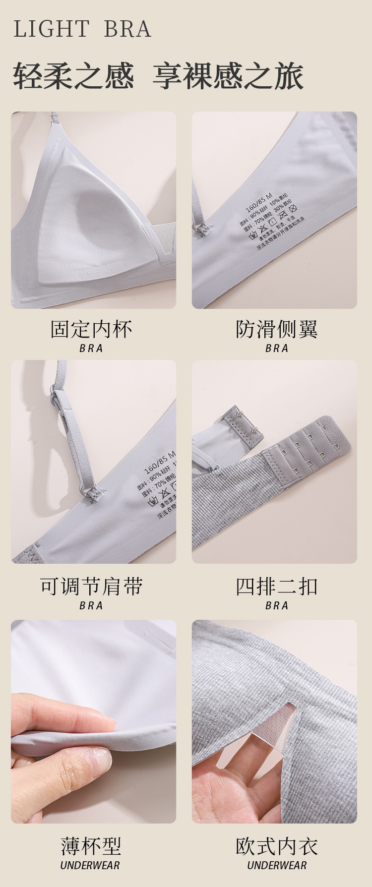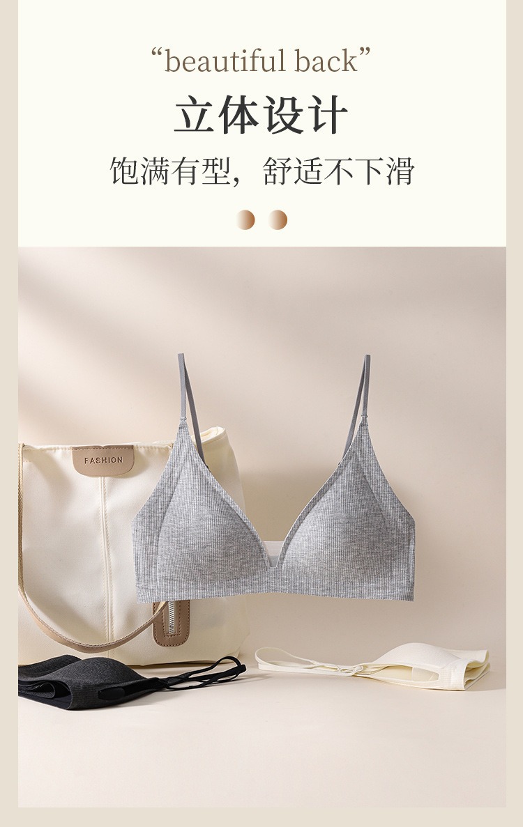 【GZ】无忧购49元2件法式深V细肩带螺纹三角杯内衣轻盈交叉网纱文胸(截单后3-5天发货)