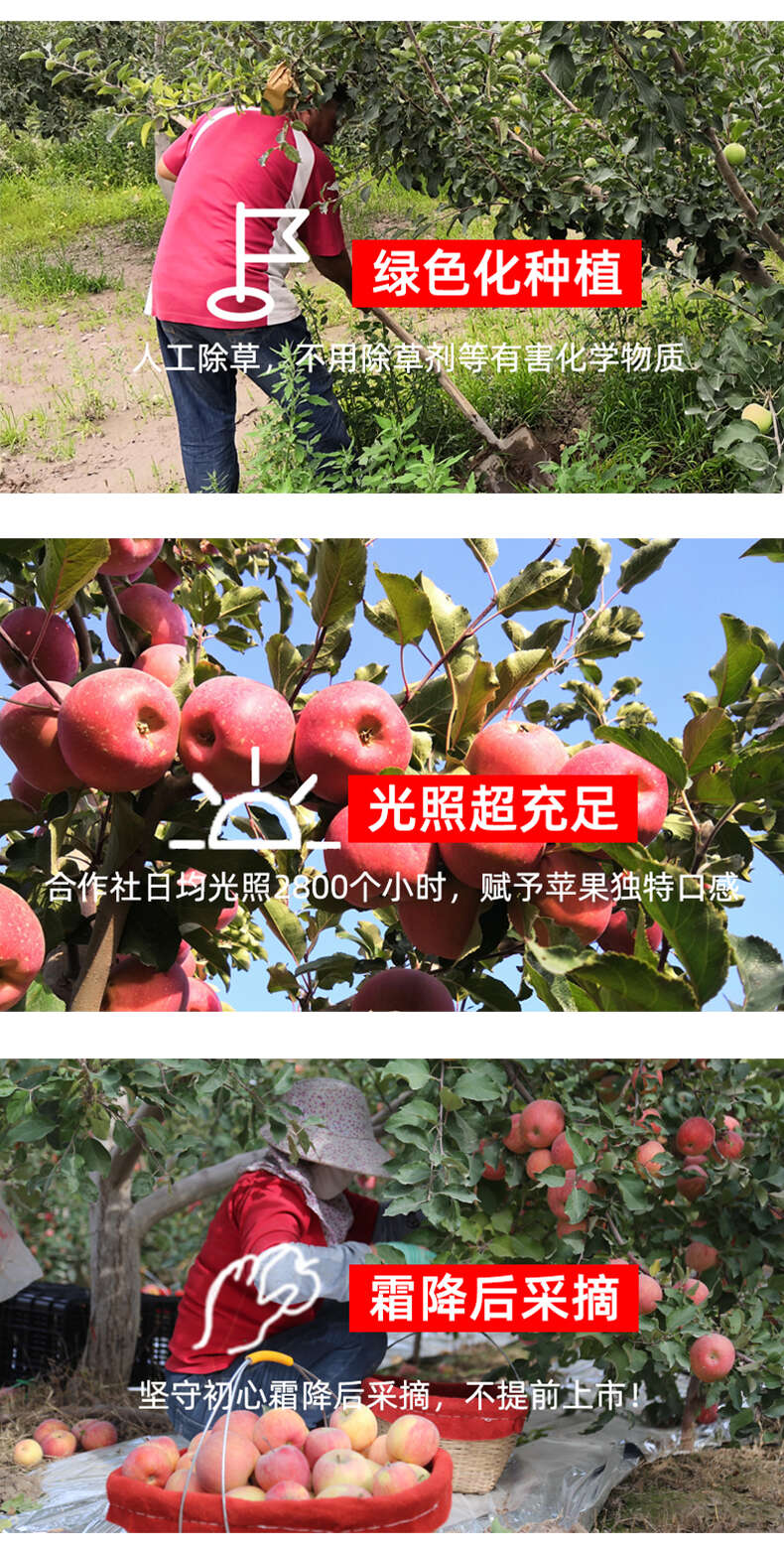 【温馨提示】由于贮存条件和气候等原因,糖分会溶解在果肉中,导致冰糖心会变浅或消失,但苹果甜度不会因此降低,请放心享用,糖心多少并不影响苹果品质,不属于售后范围哟~