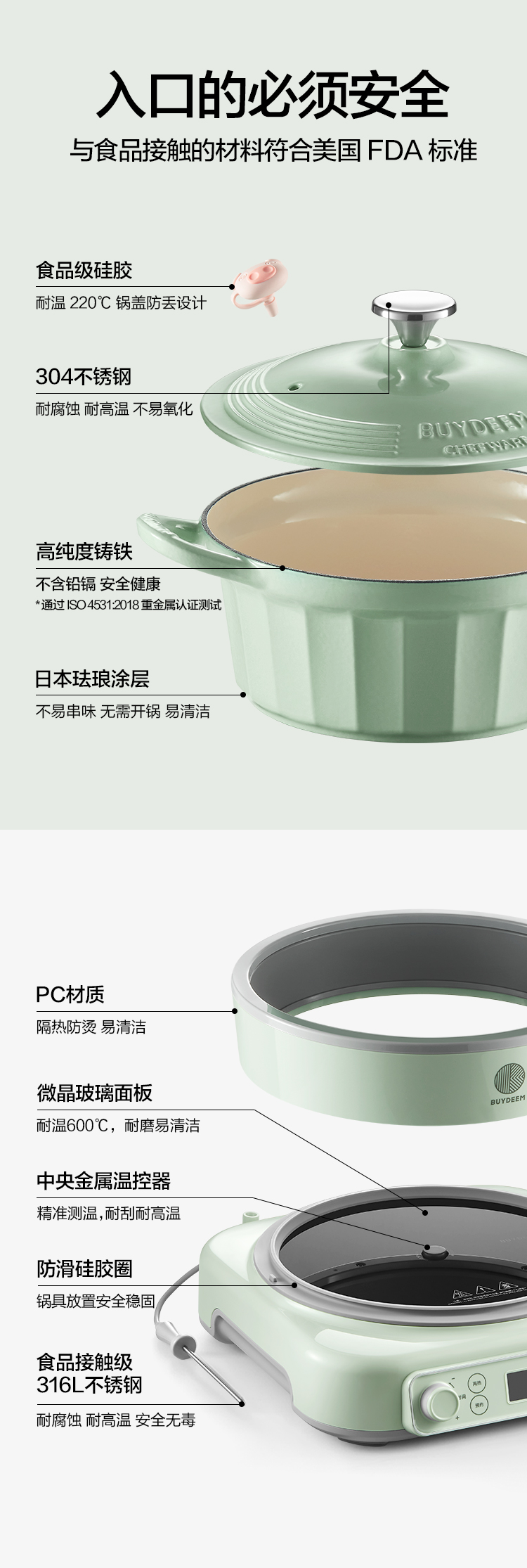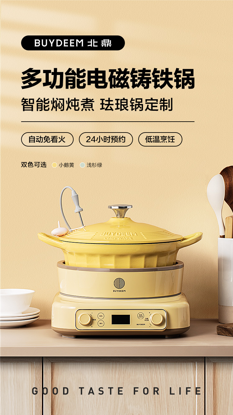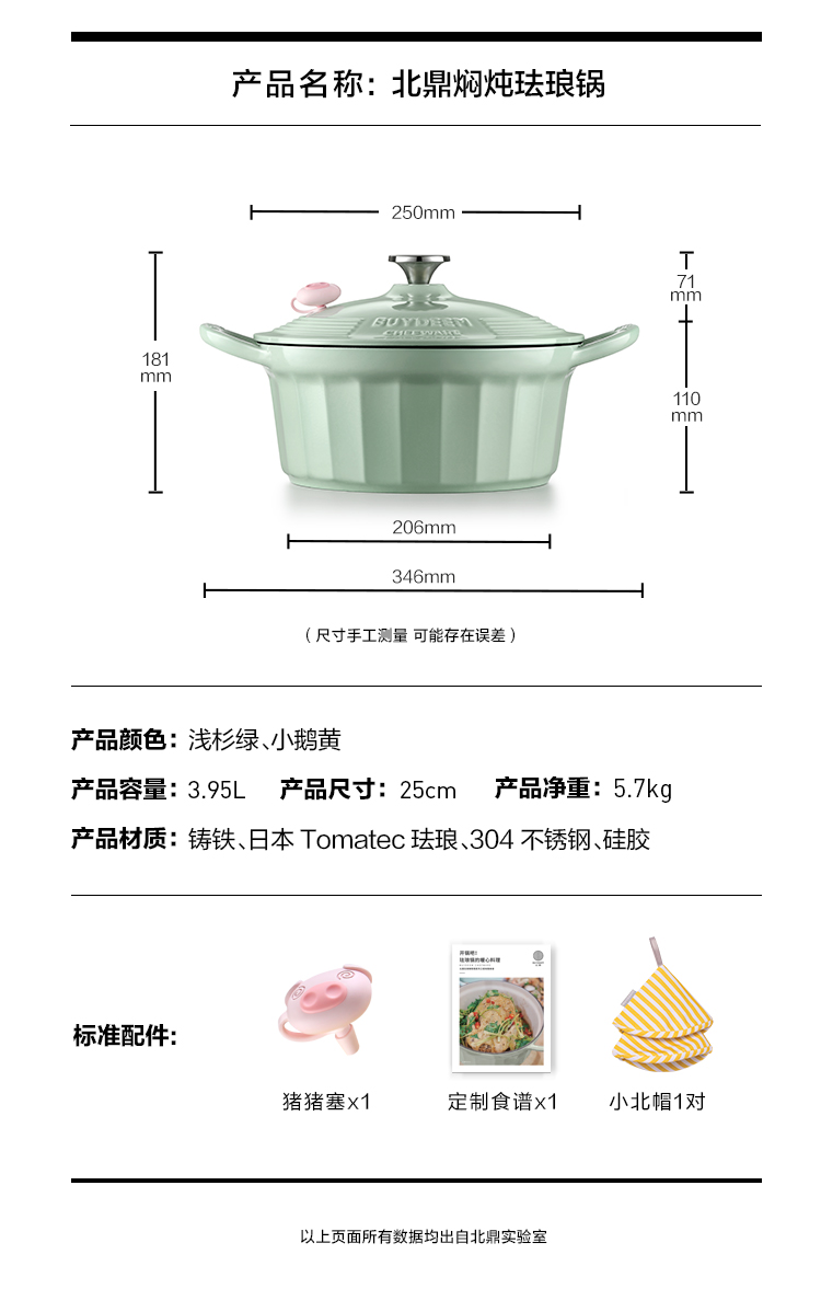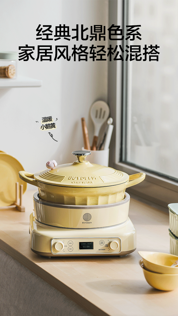 北鼎珐琅锅电磁锅煲汤家用25cm焖炖锅多功能炒锅平底锅具电磁炉