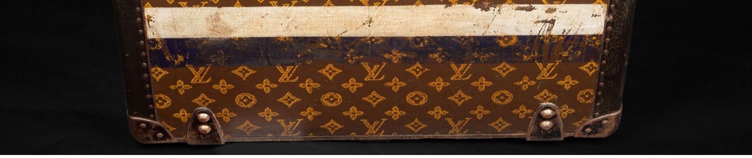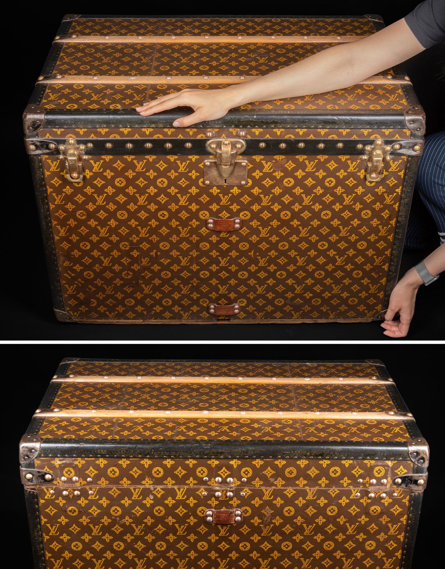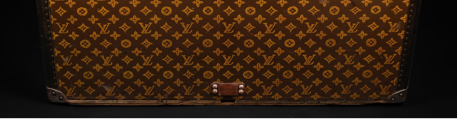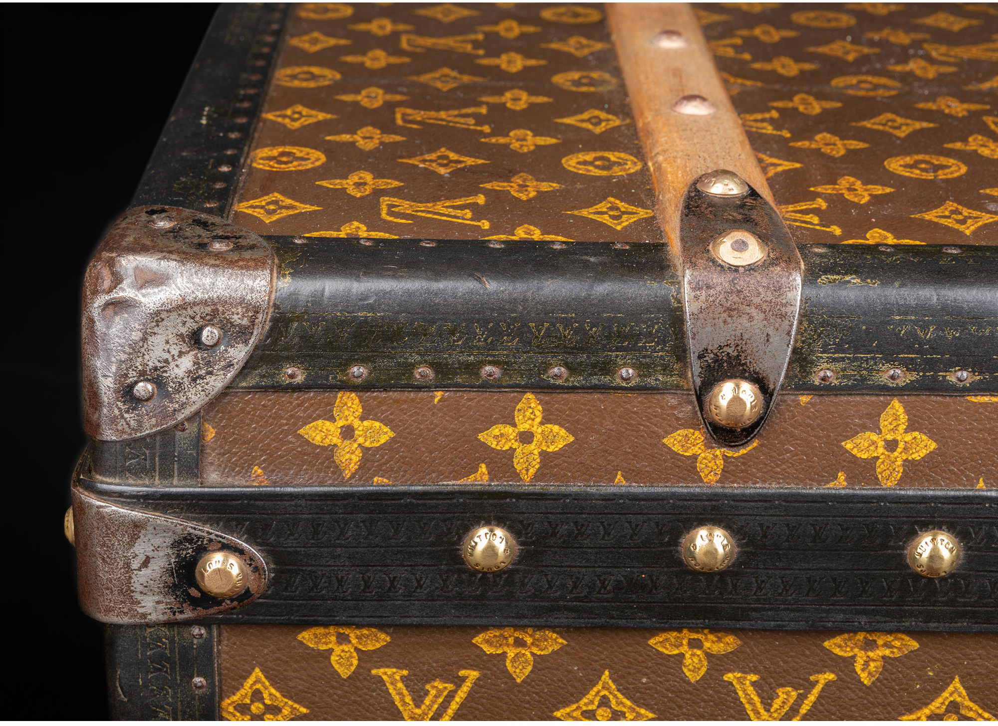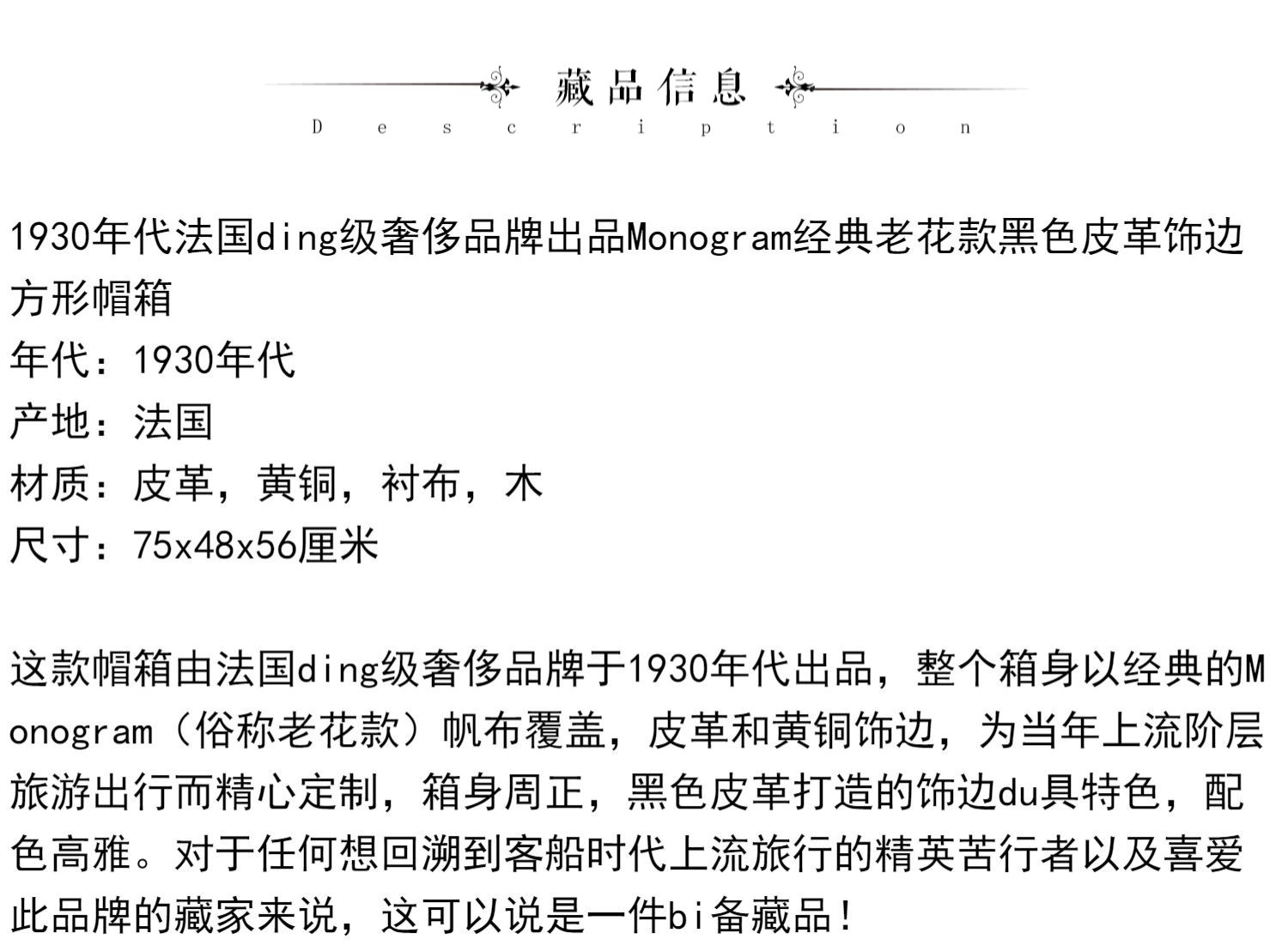 独角鹿西洋古董奢侈品牌Monogram经典老花款黑色皮革饰边方形帽箱