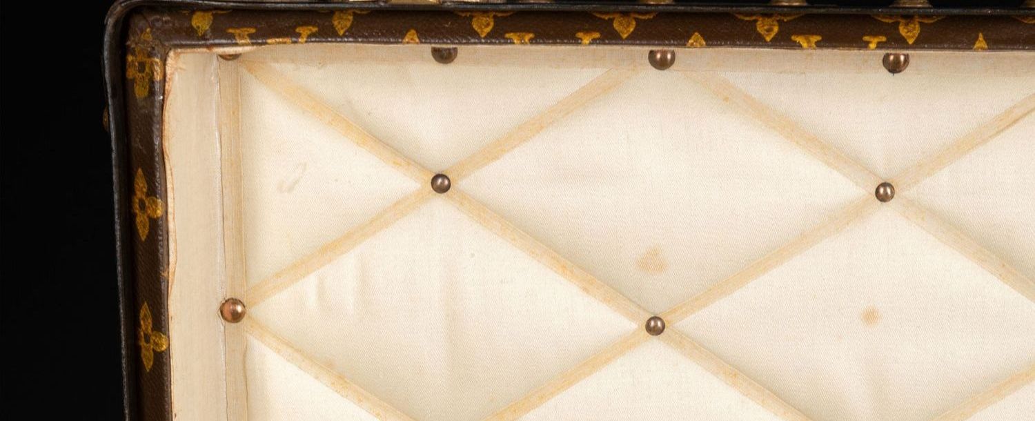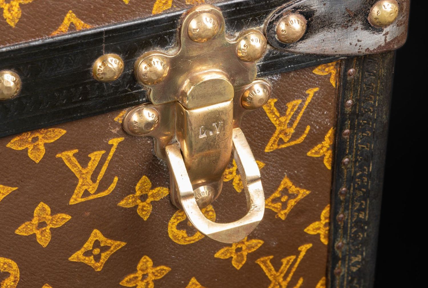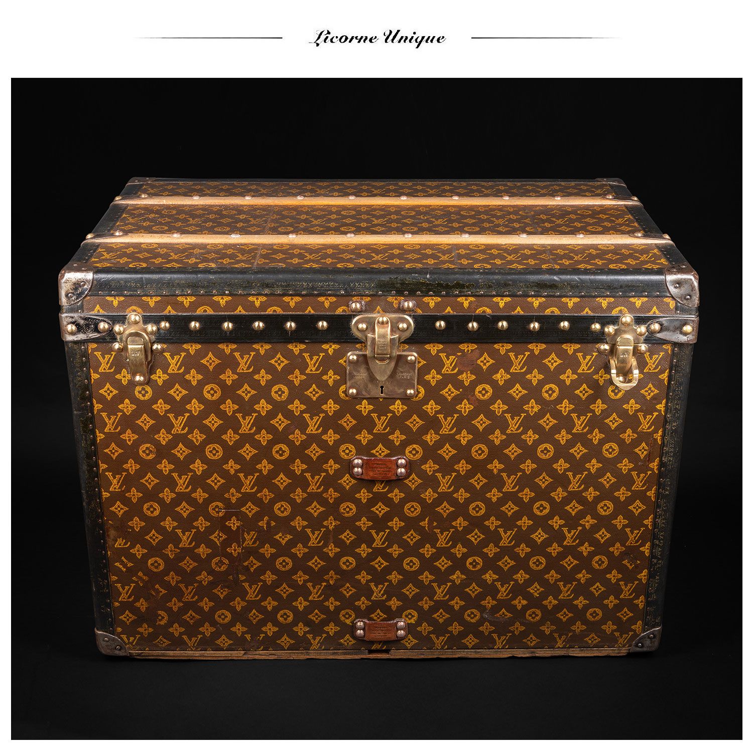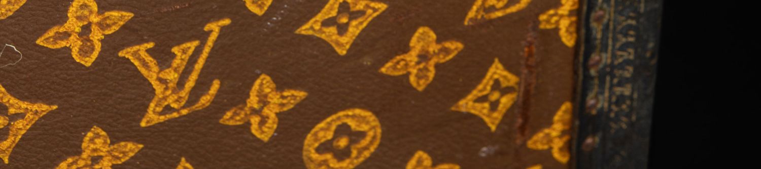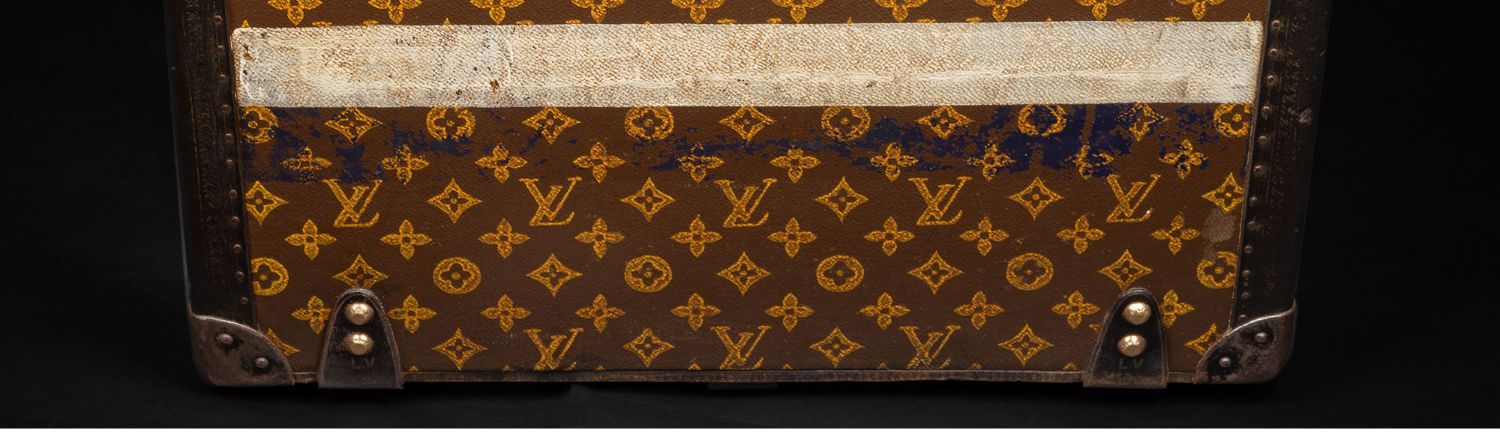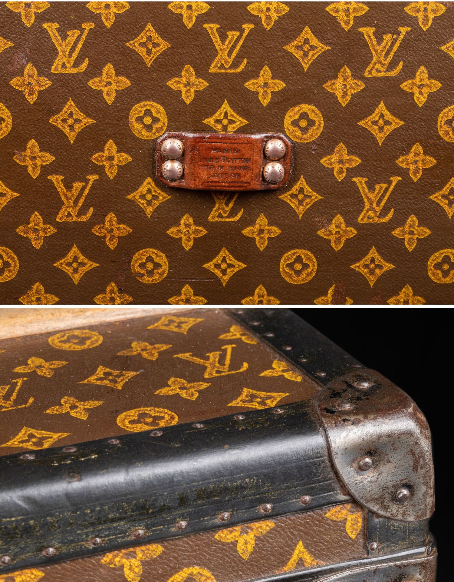 独角鹿西洋古董奢侈品牌Monogram经典老花款黑色皮革饰边方形帽箱