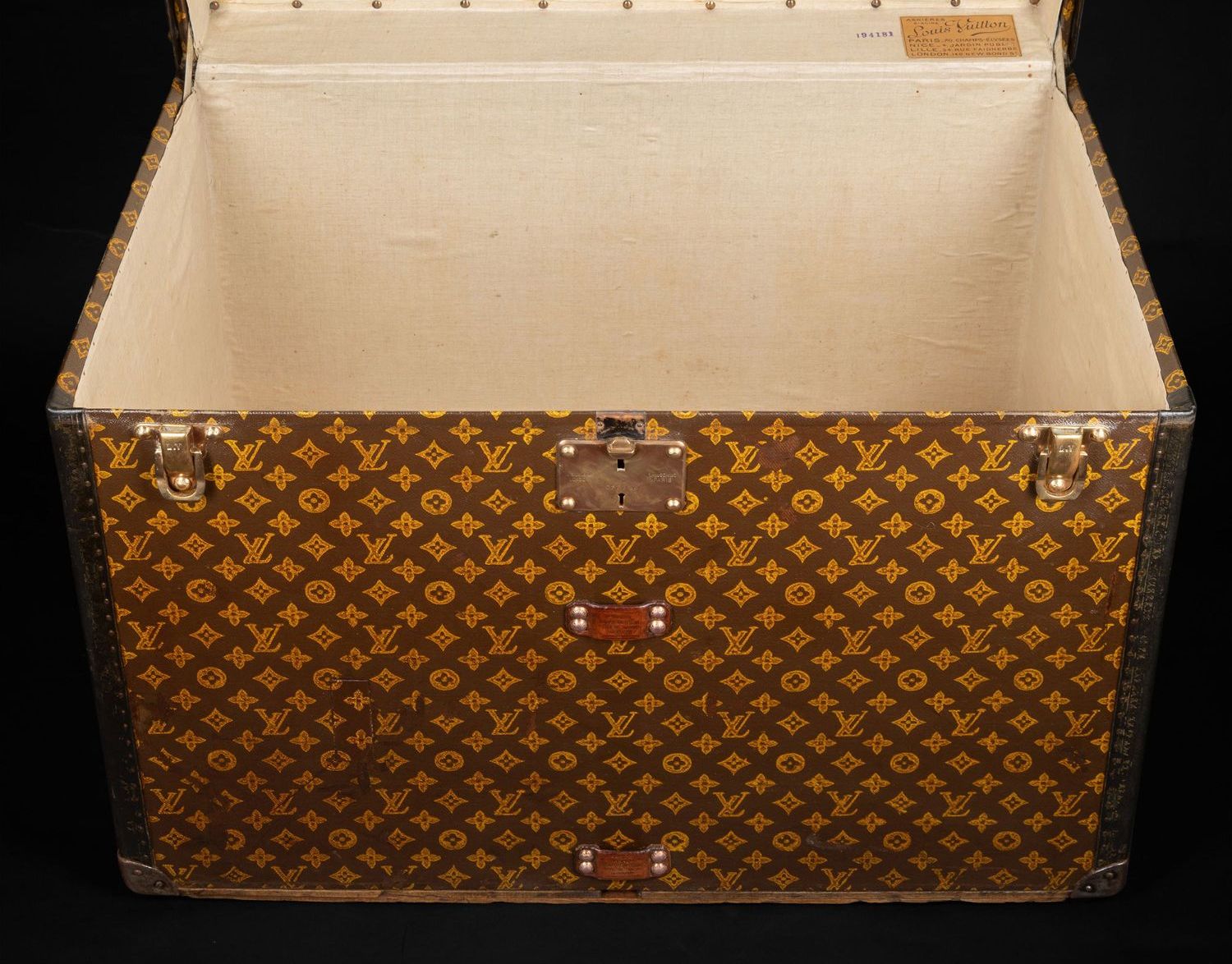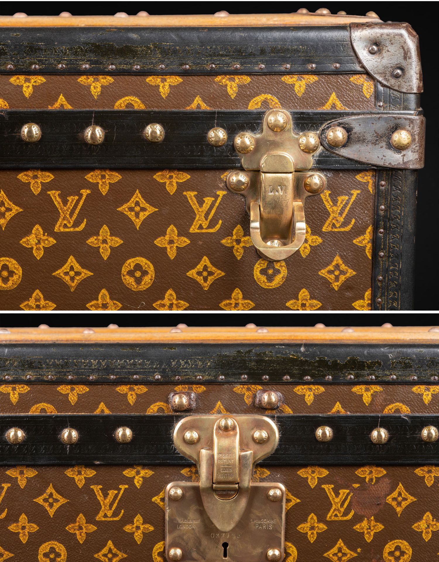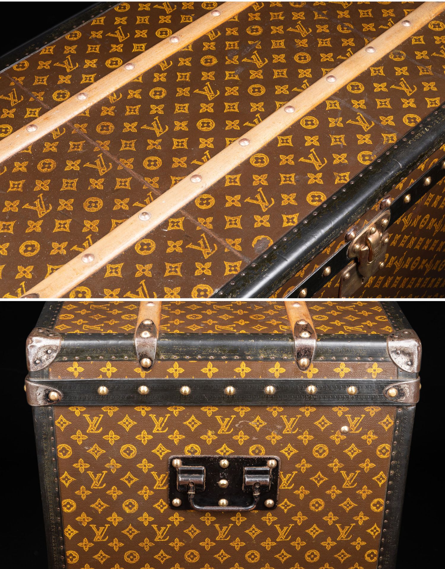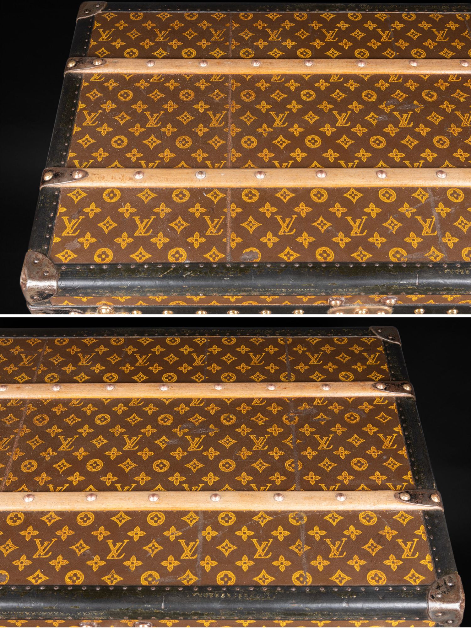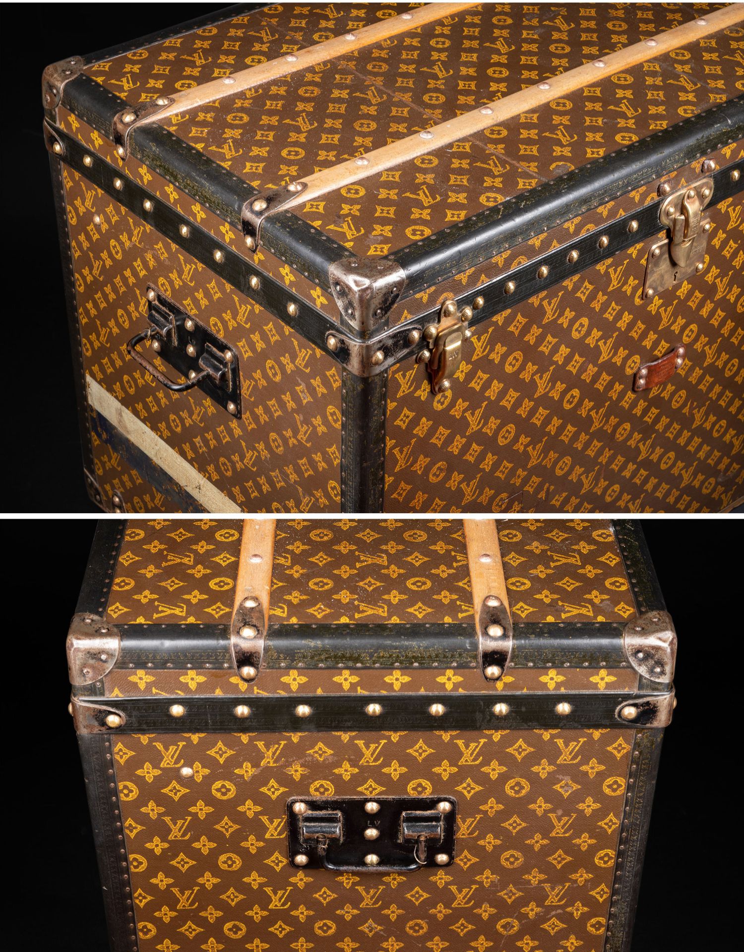 独角鹿西洋古董奢侈品牌Monogram经典老花款黑色皮革饰边方形帽箱