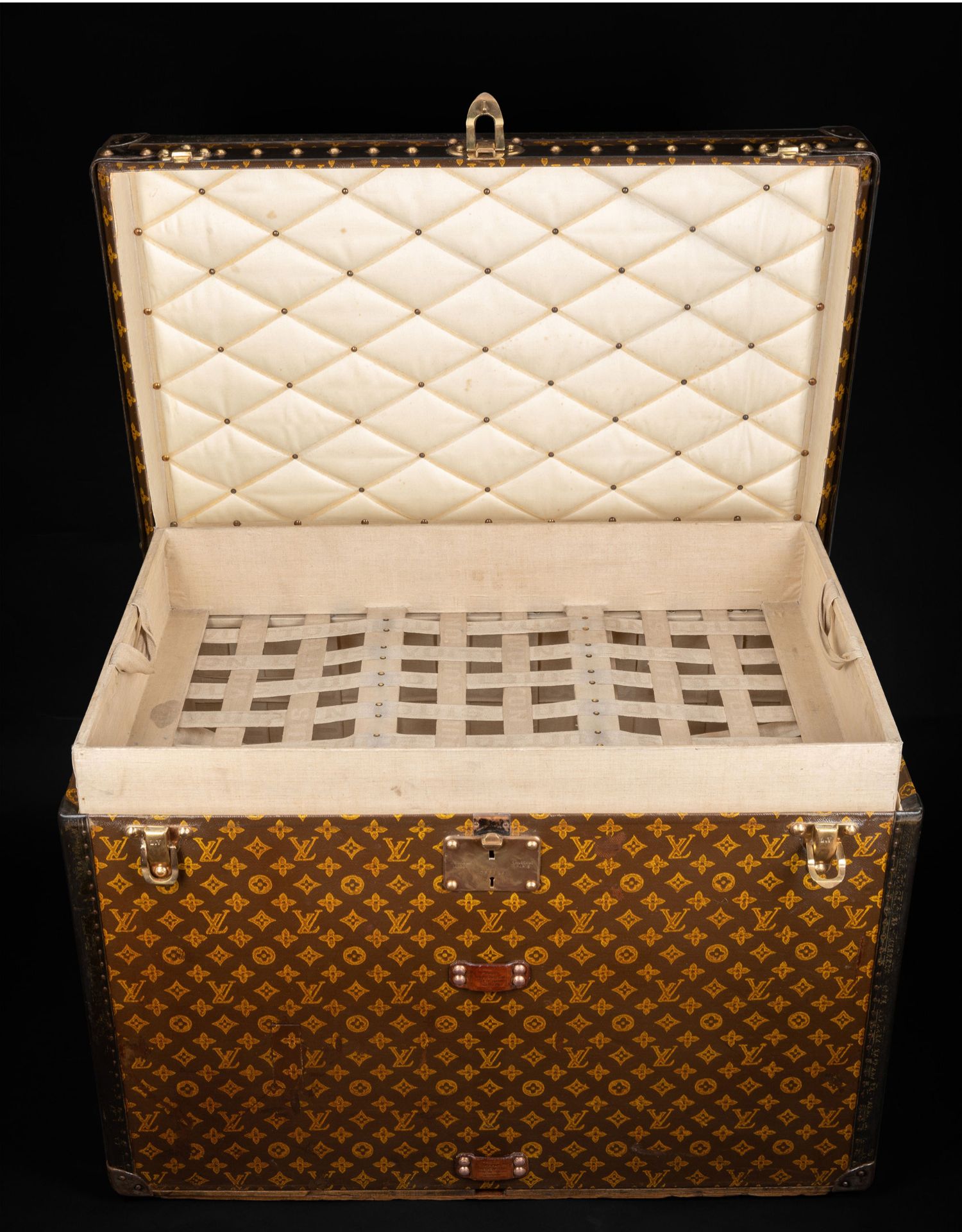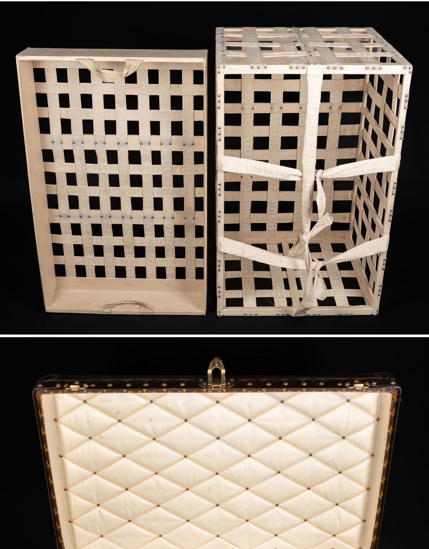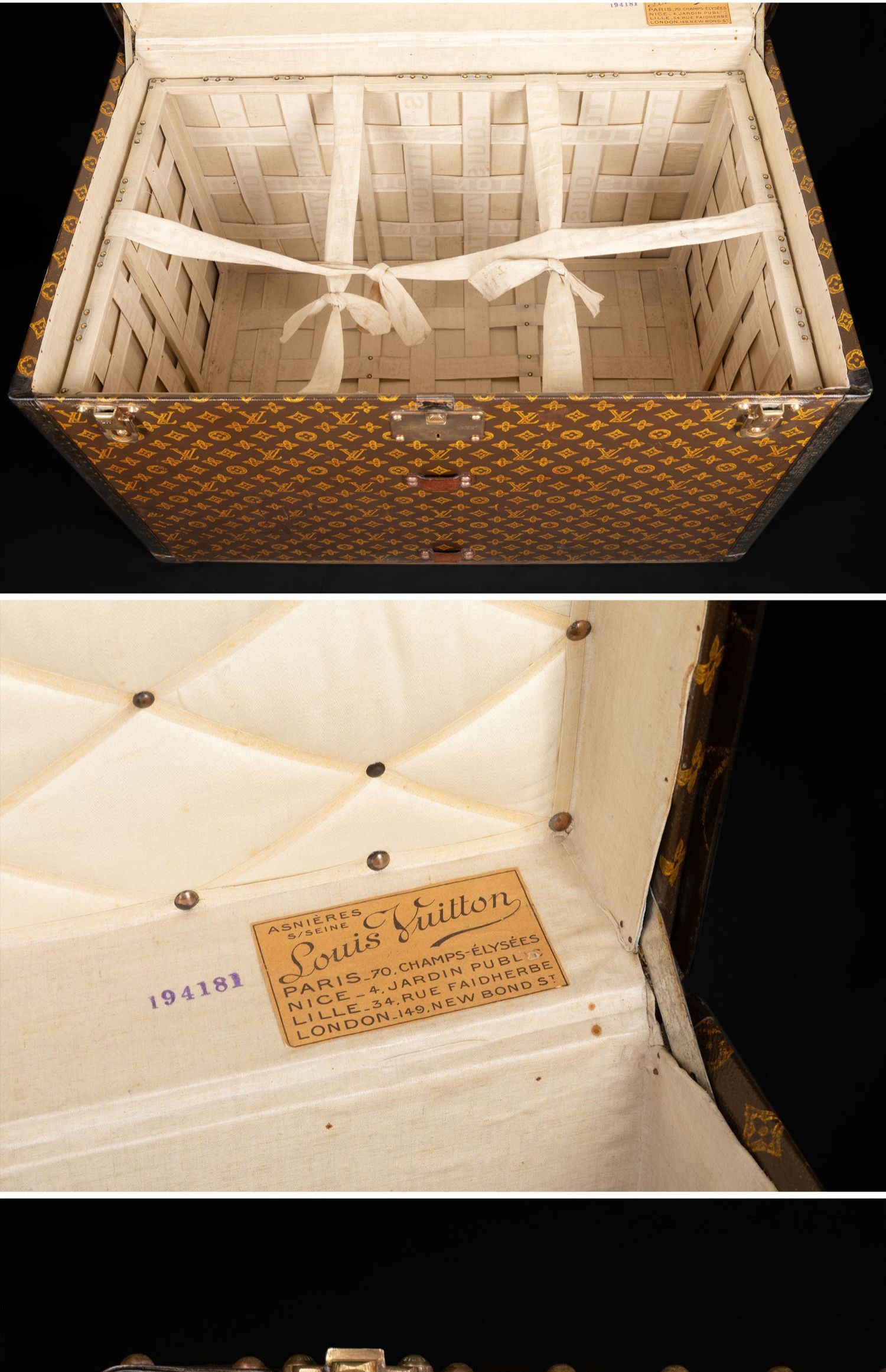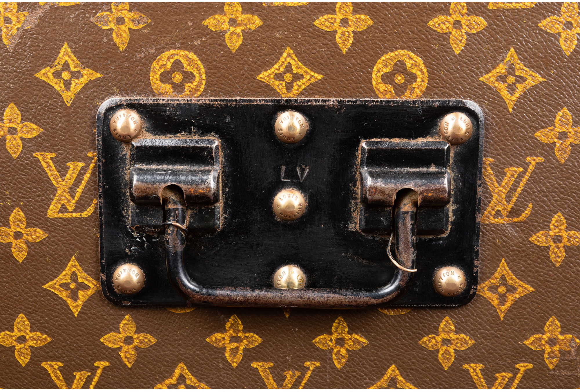 独角鹿西洋古董奢侈品牌Monogram经典老花款黑色皮革饰边方形帽箱