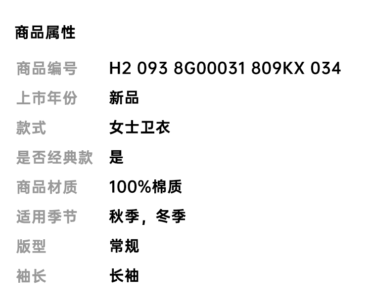 MONCLER 蒙口 女士棉质徽标印花圆领长袖卫衣 白色 H2 093 8G00031 809KX 034