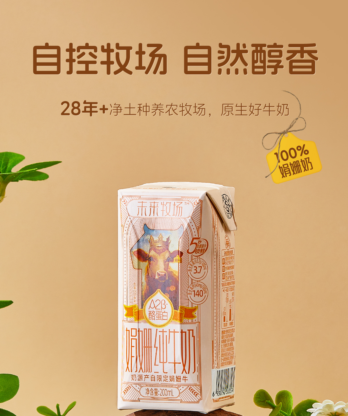 归一未来牧场A2β酪蛋白娟姗纯牛奶全脂牛奶儿童早餐奶200ml*12瓶*2箱