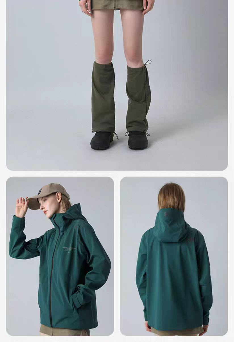 面料功能特性:大身面料:锦纶+科特网布复合面料,冲锋衣标准的六边形功能指数,防水,防风,透湿,耐磨,轻量,灵活!适用于户外徒步及日常通勤,日常外出游玩时尚首选
