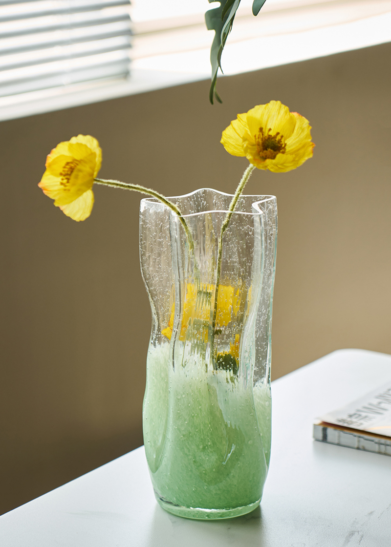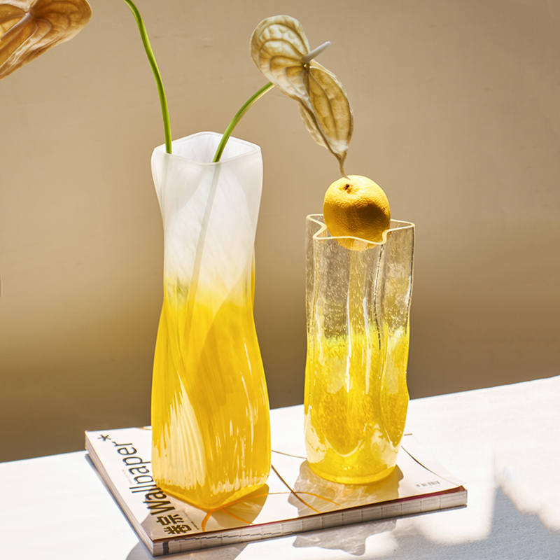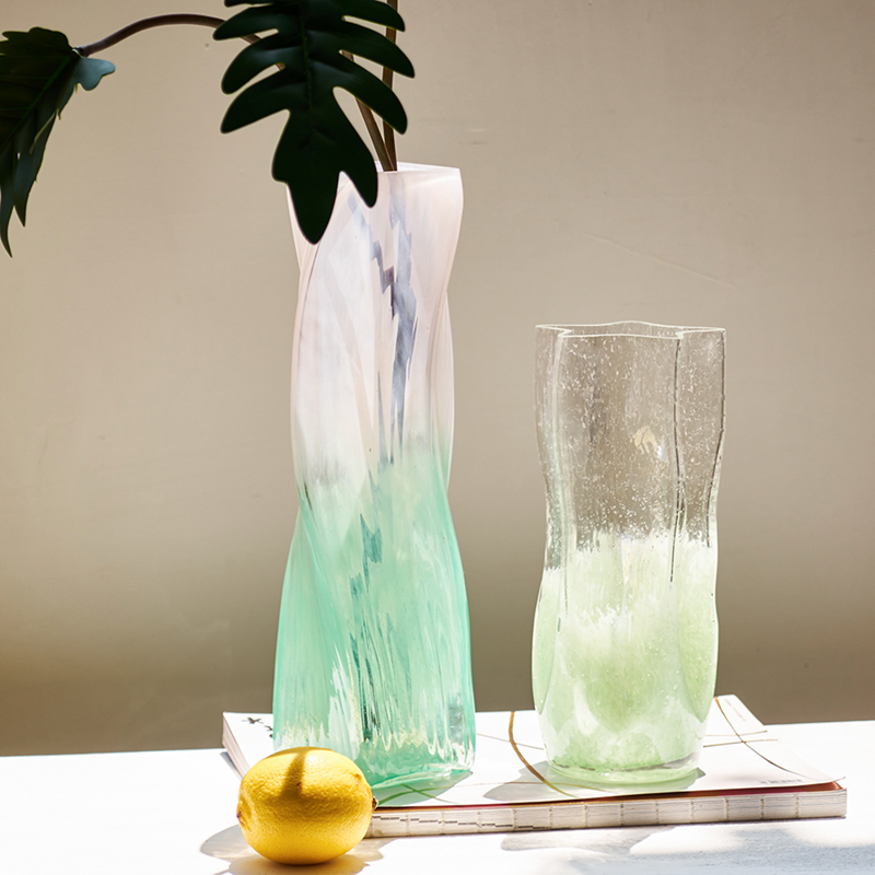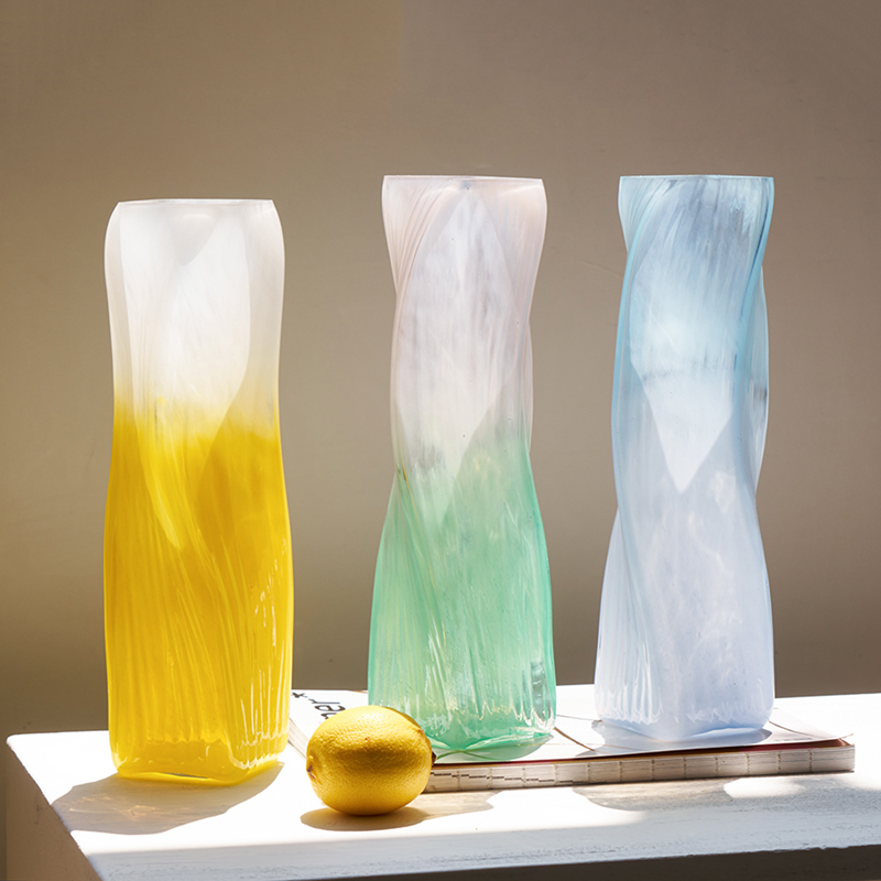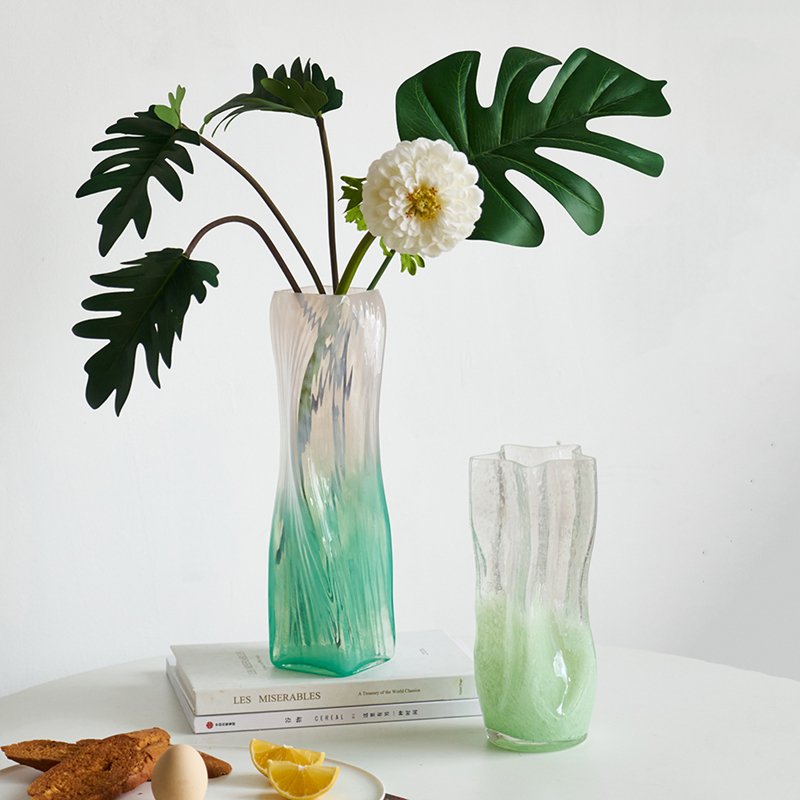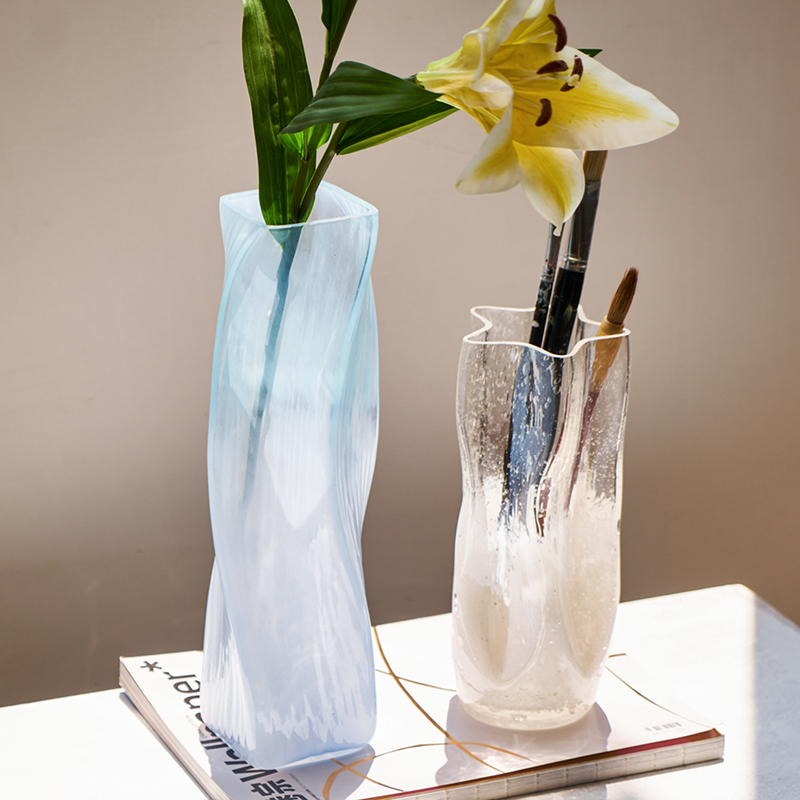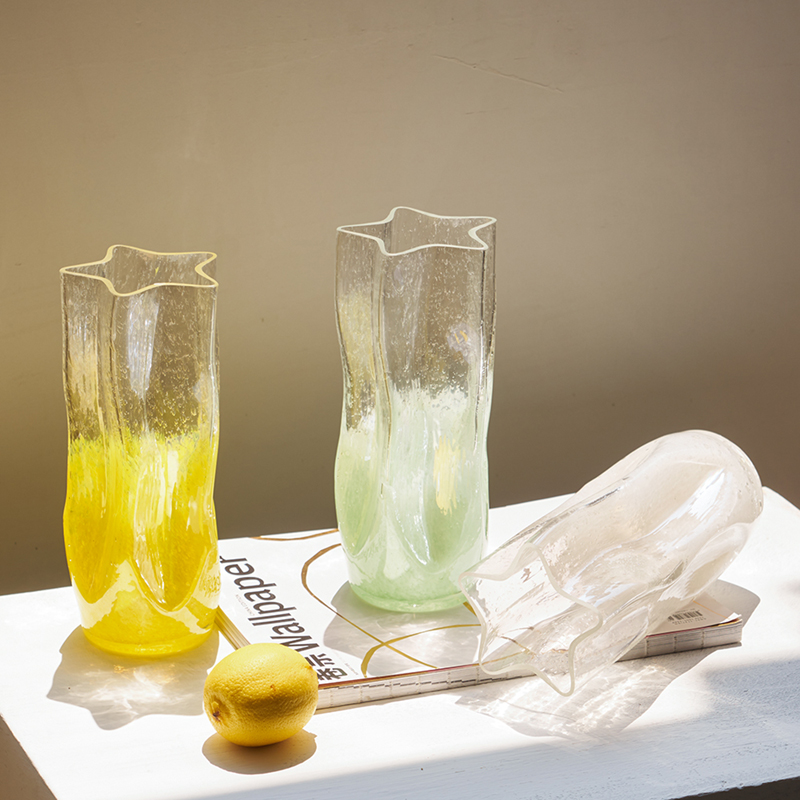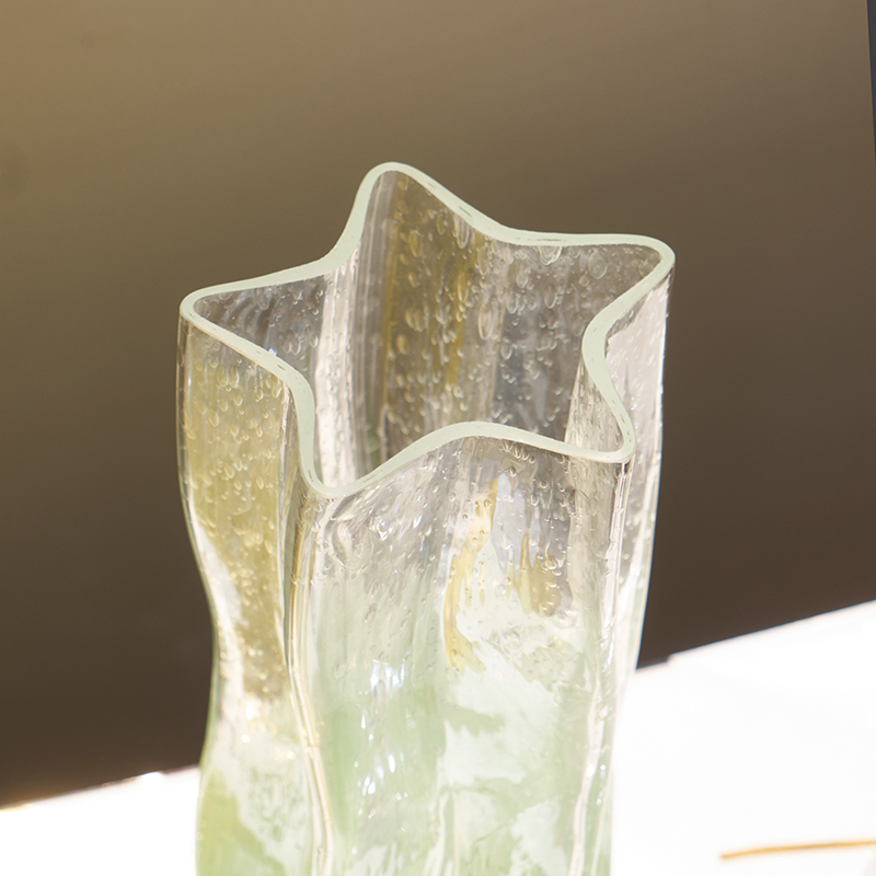 北欧风直筒渐变方口幻彩玻璃花瓶创意五角星口气泡瓶鲜花客厅装饰