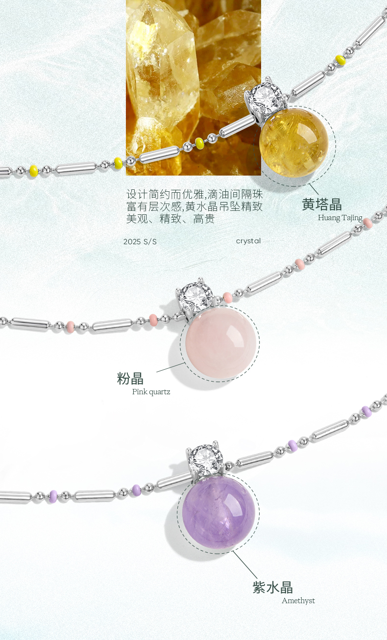 ZEGL水晶物语系列天然黄塔晶项链高级感轻奢小众鎏光梦境锁骨链女