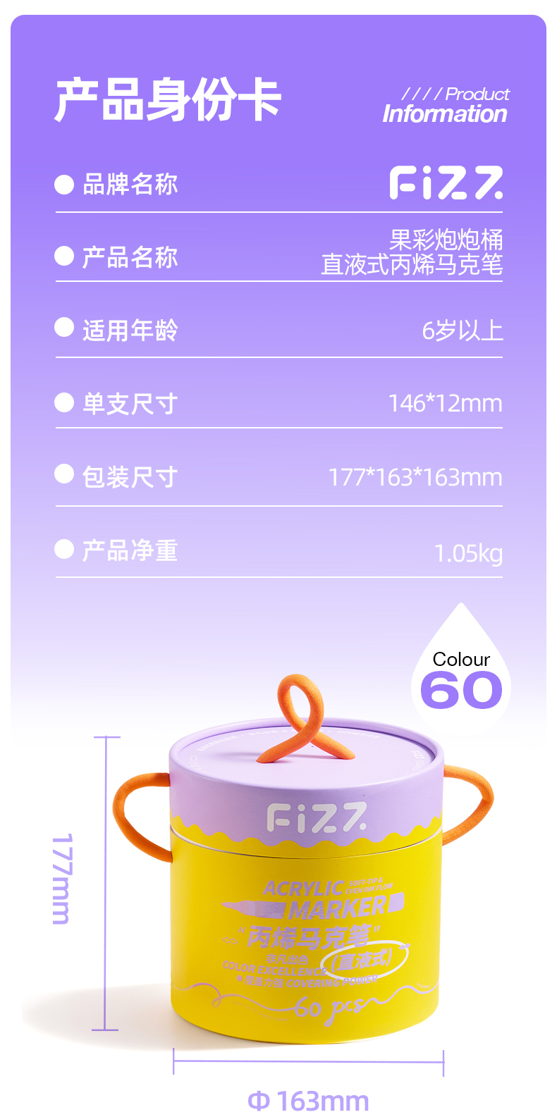 广博果彩炮炮桶(直液丙烯马克笔60色)