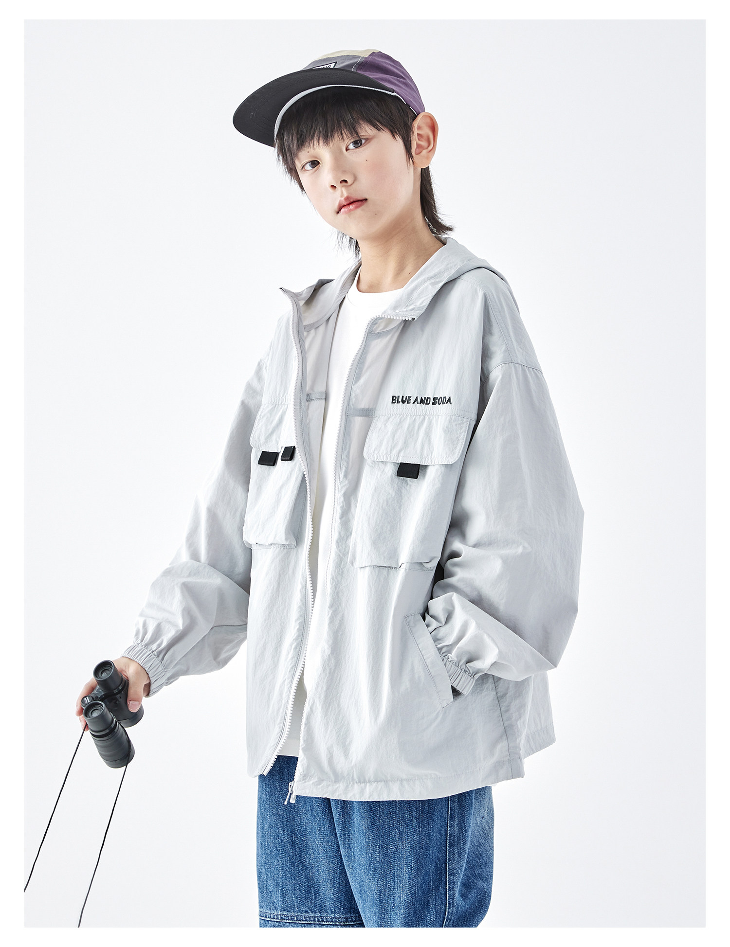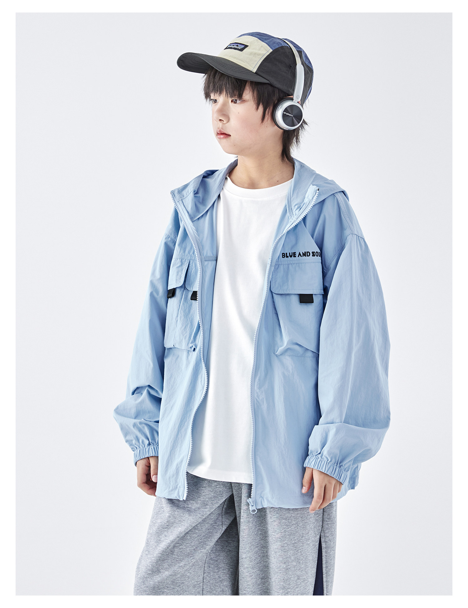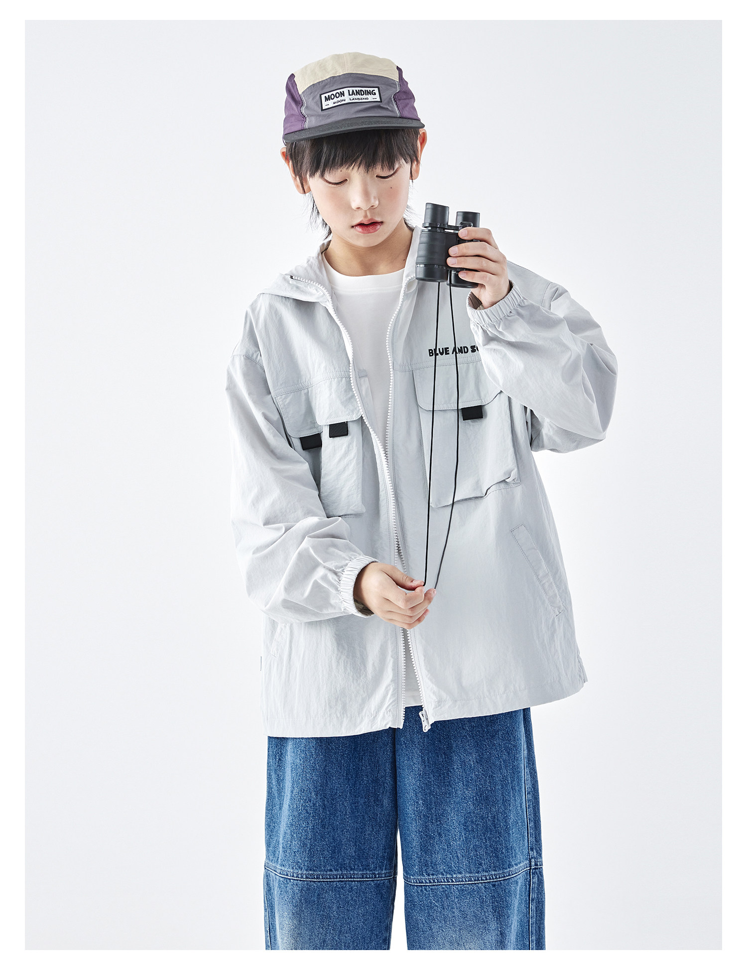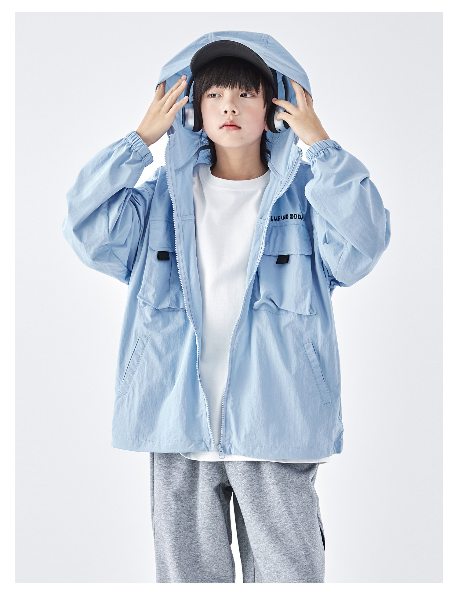 蓝汽水2026春季新款男童户外山系立体多口袋青少年轻量防泼水外套