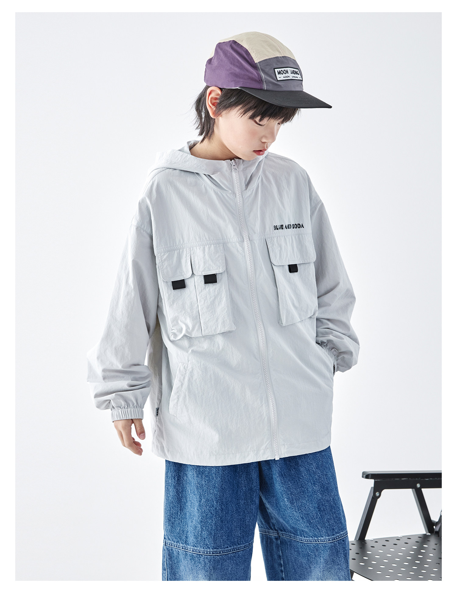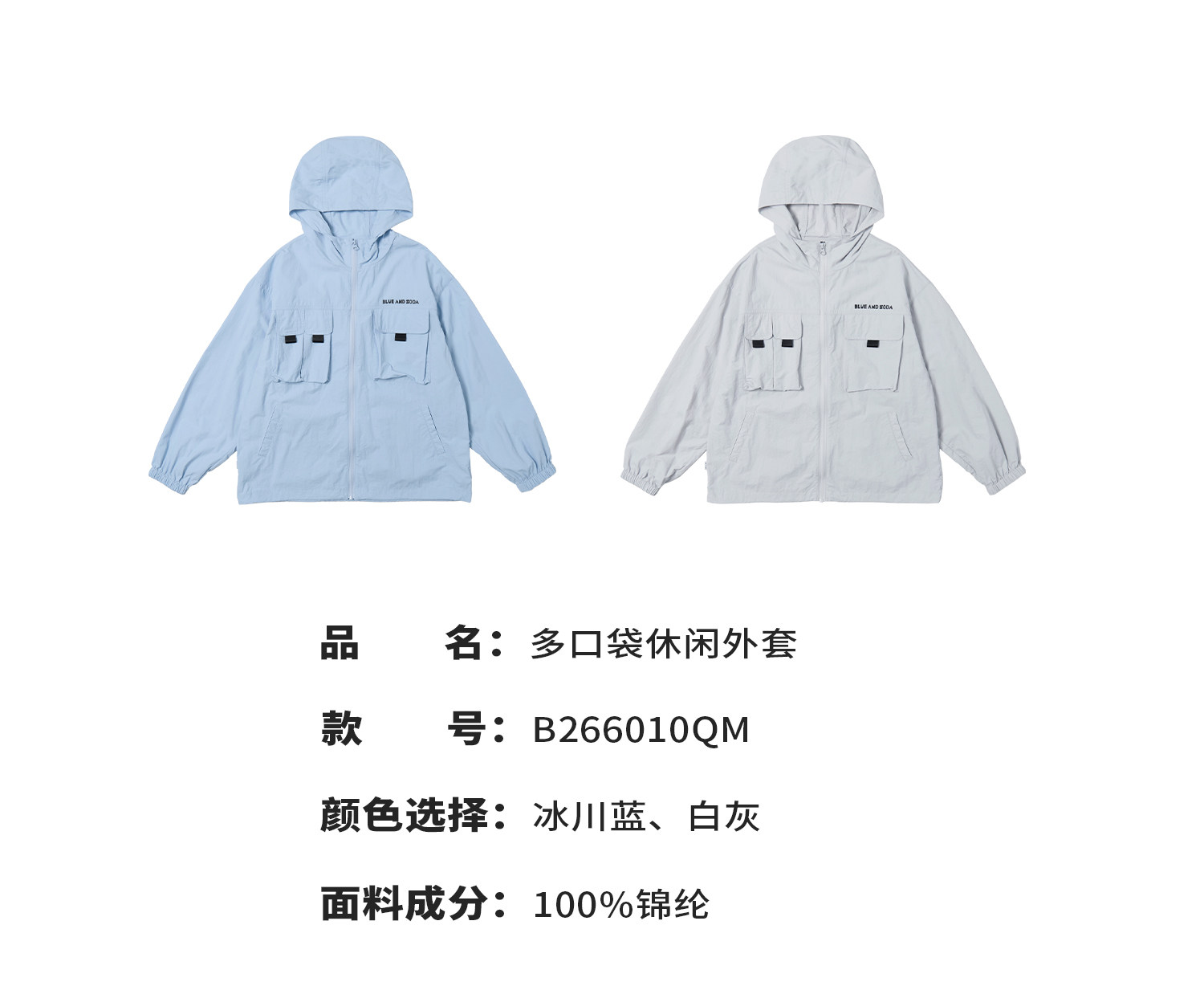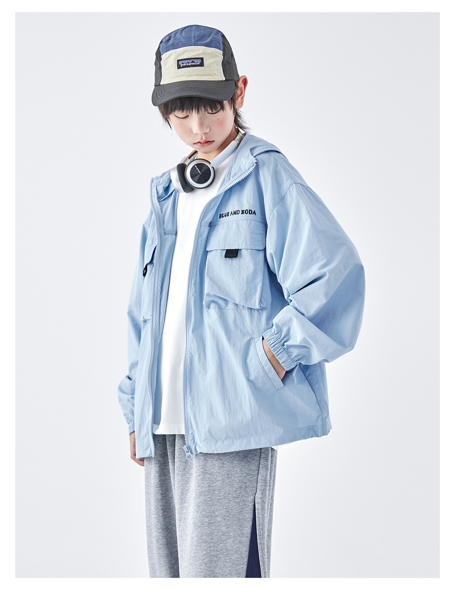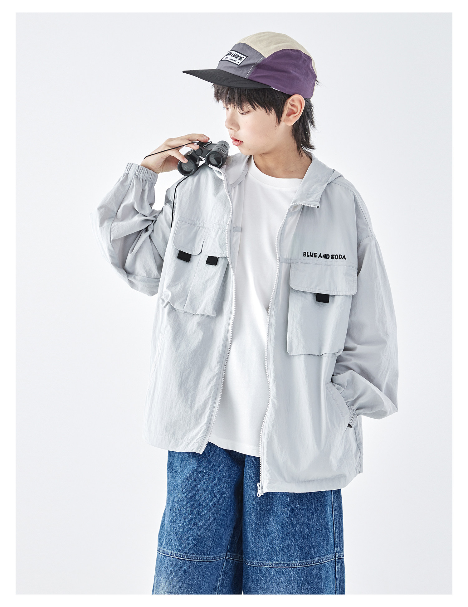 蓝汽水2026春季新款男童户外山系立体多口袋青少年轻量防泼水外套