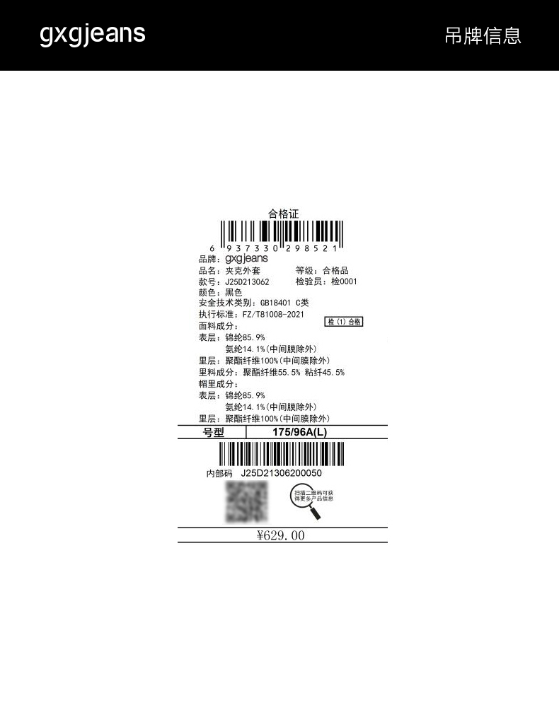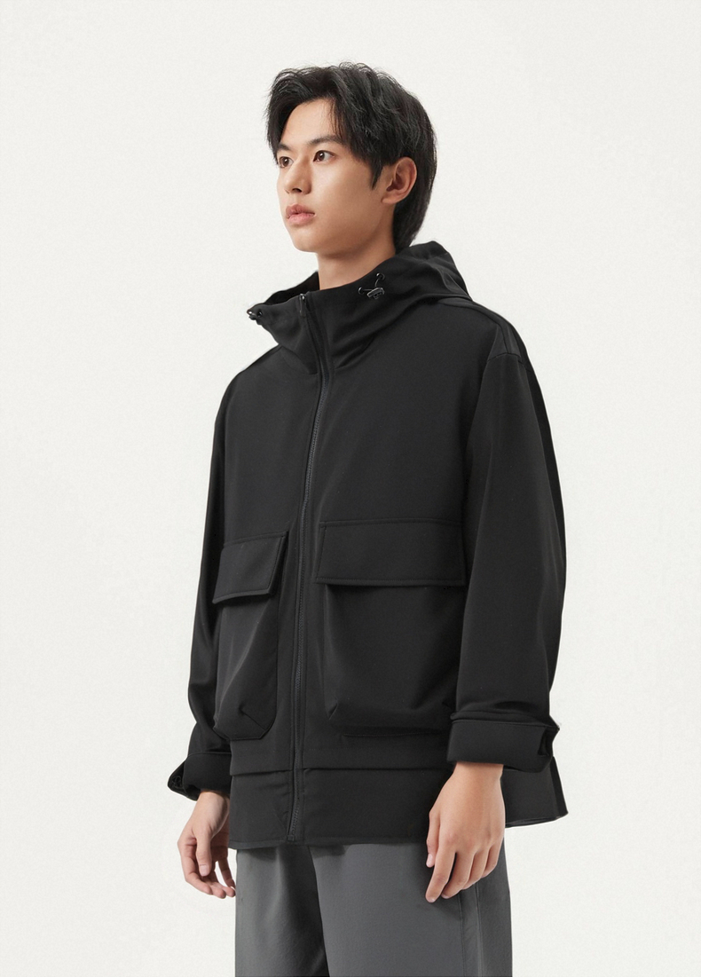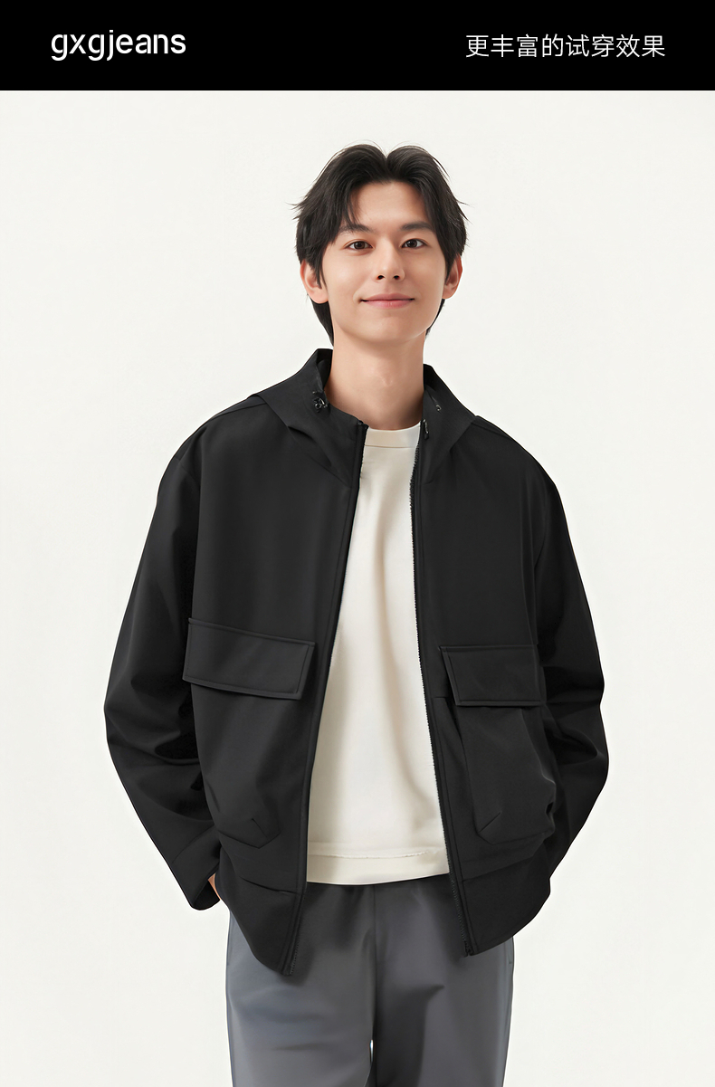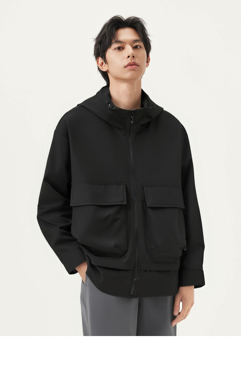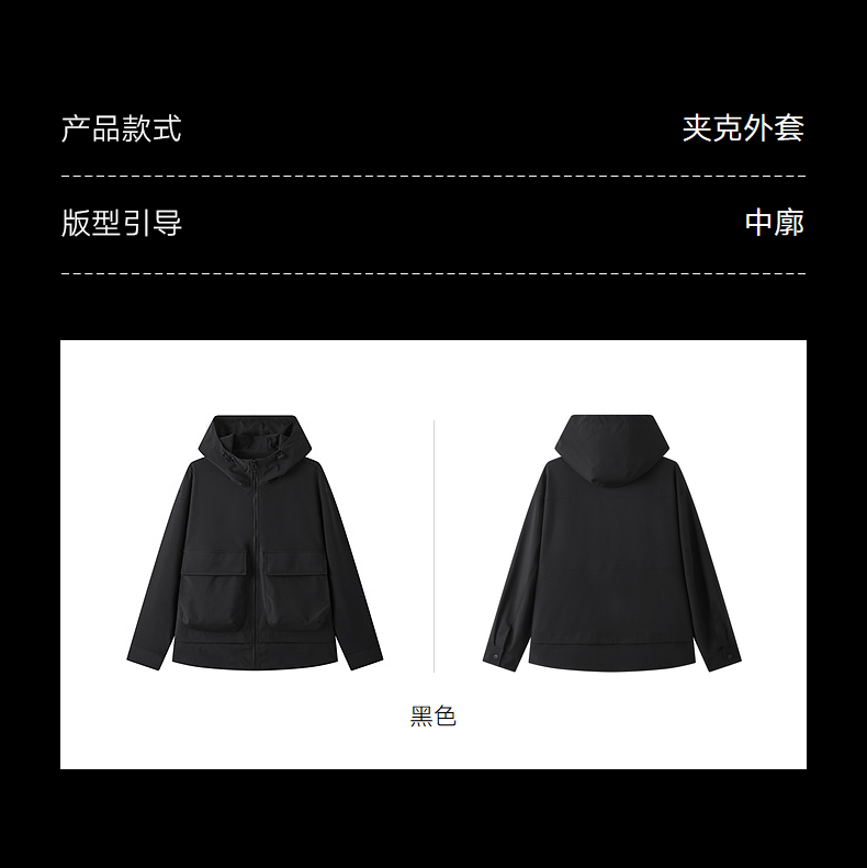 gxg.jeans男装 黑色口袋设计工装风连帽夹克外套男士 25年夏热卖