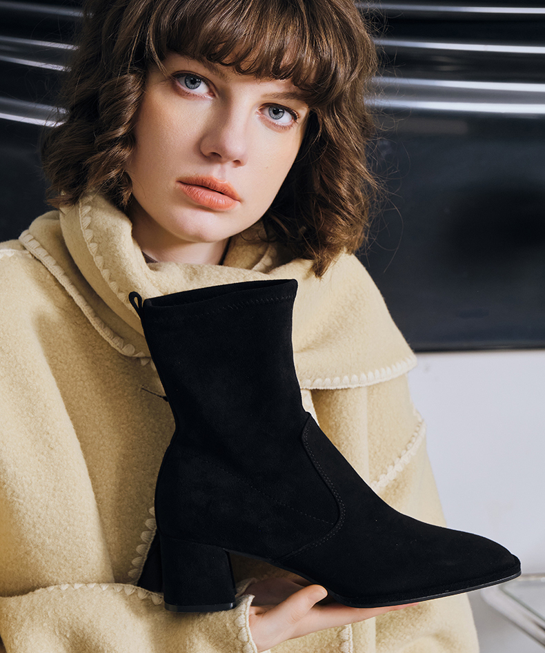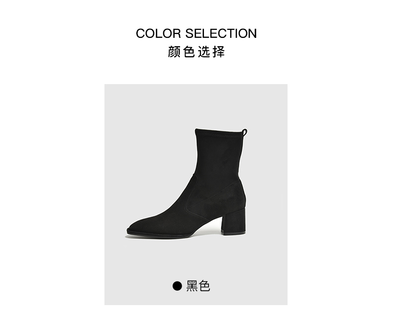 SACHA复古女士粗跟中筒靴,时尚百搭方头粗跟短靴,保暖舒适,BTZ020