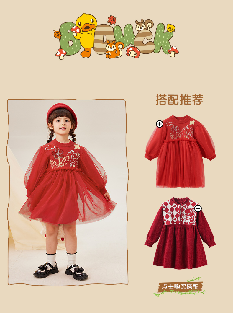 B.DUCK小黄鸭童装春秋连衣裙105-150 FF3480007