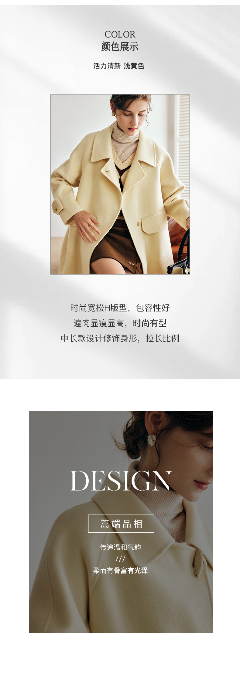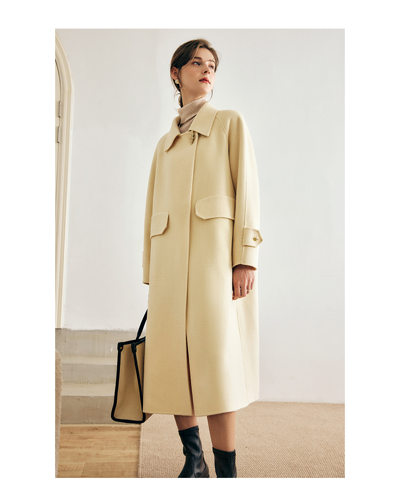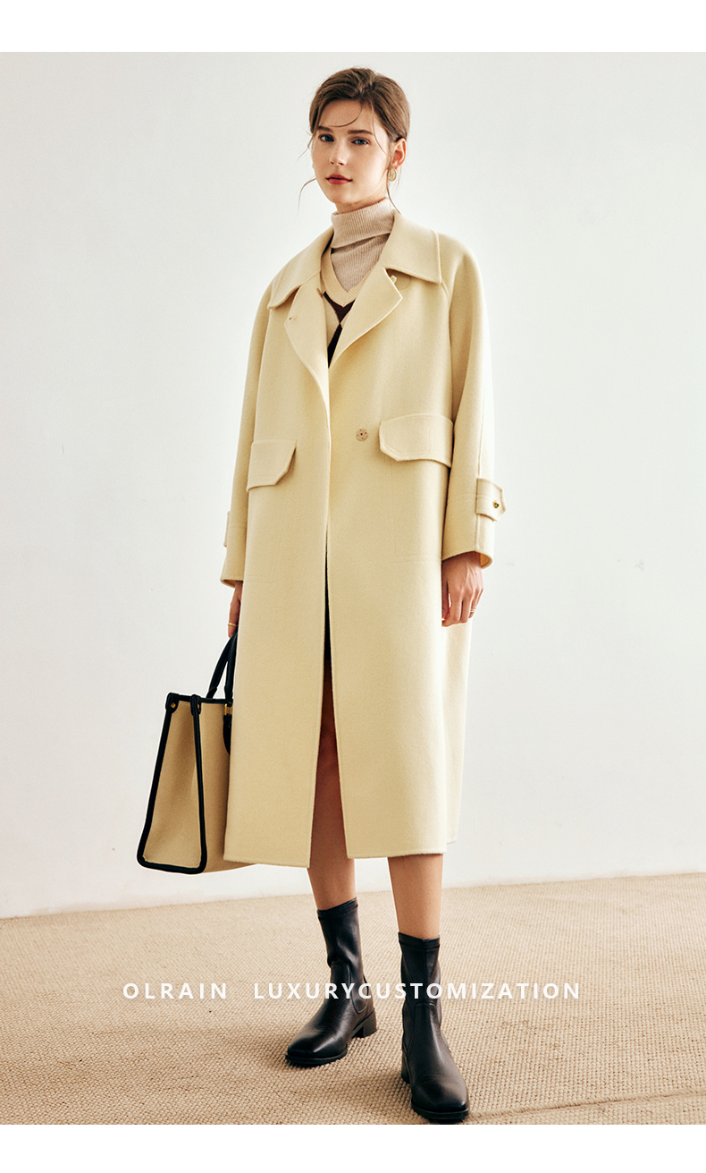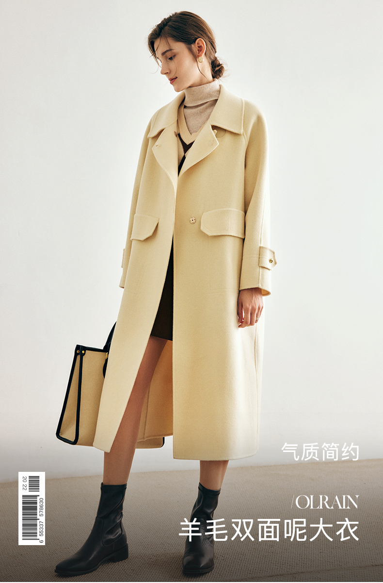 OLrain欧芮儿法式绿色毛呢外套女春季2024年新款韩系高级翻领大衣