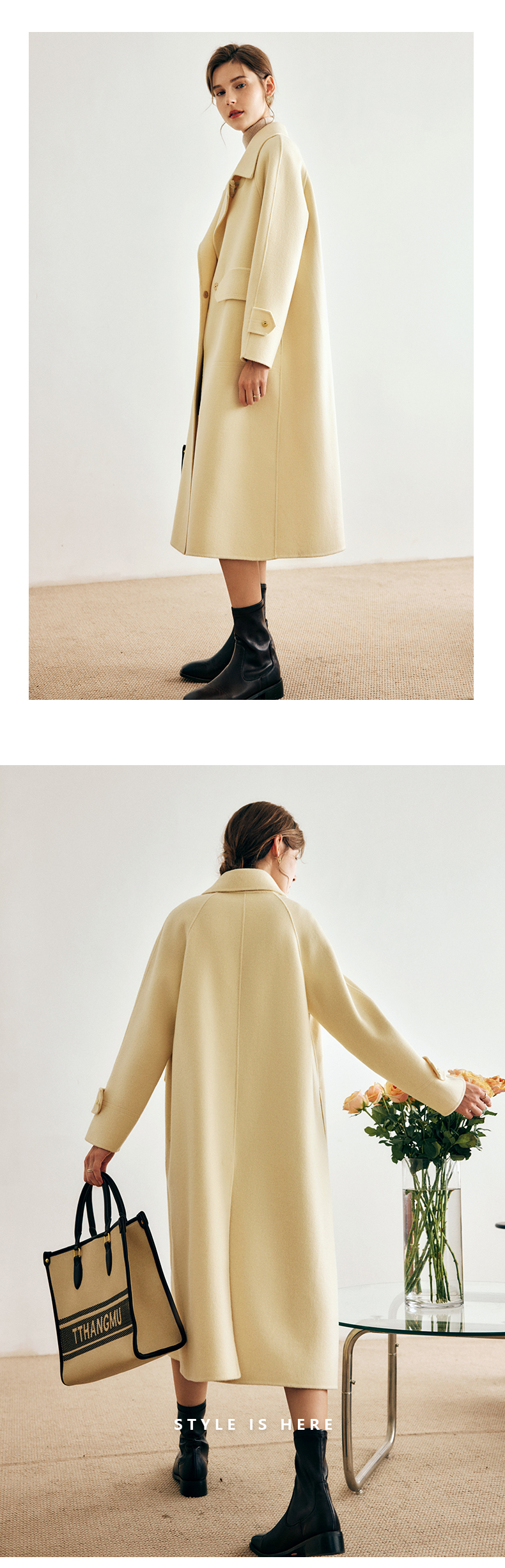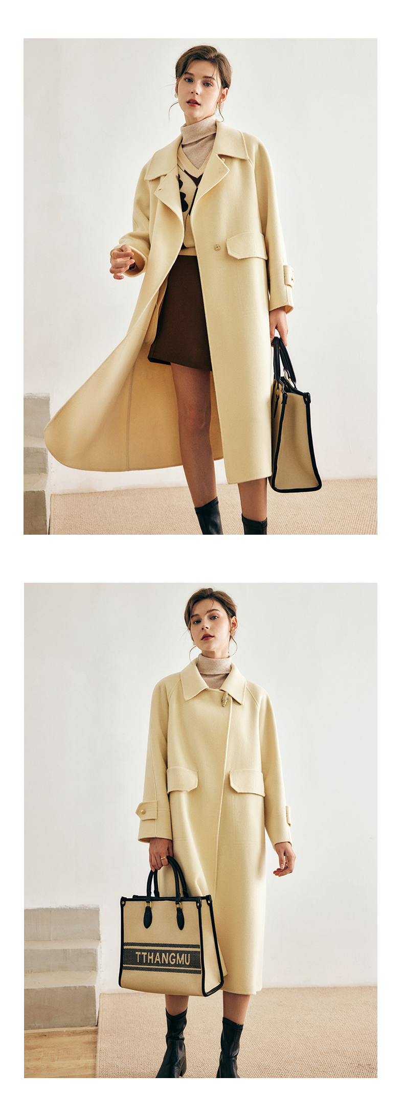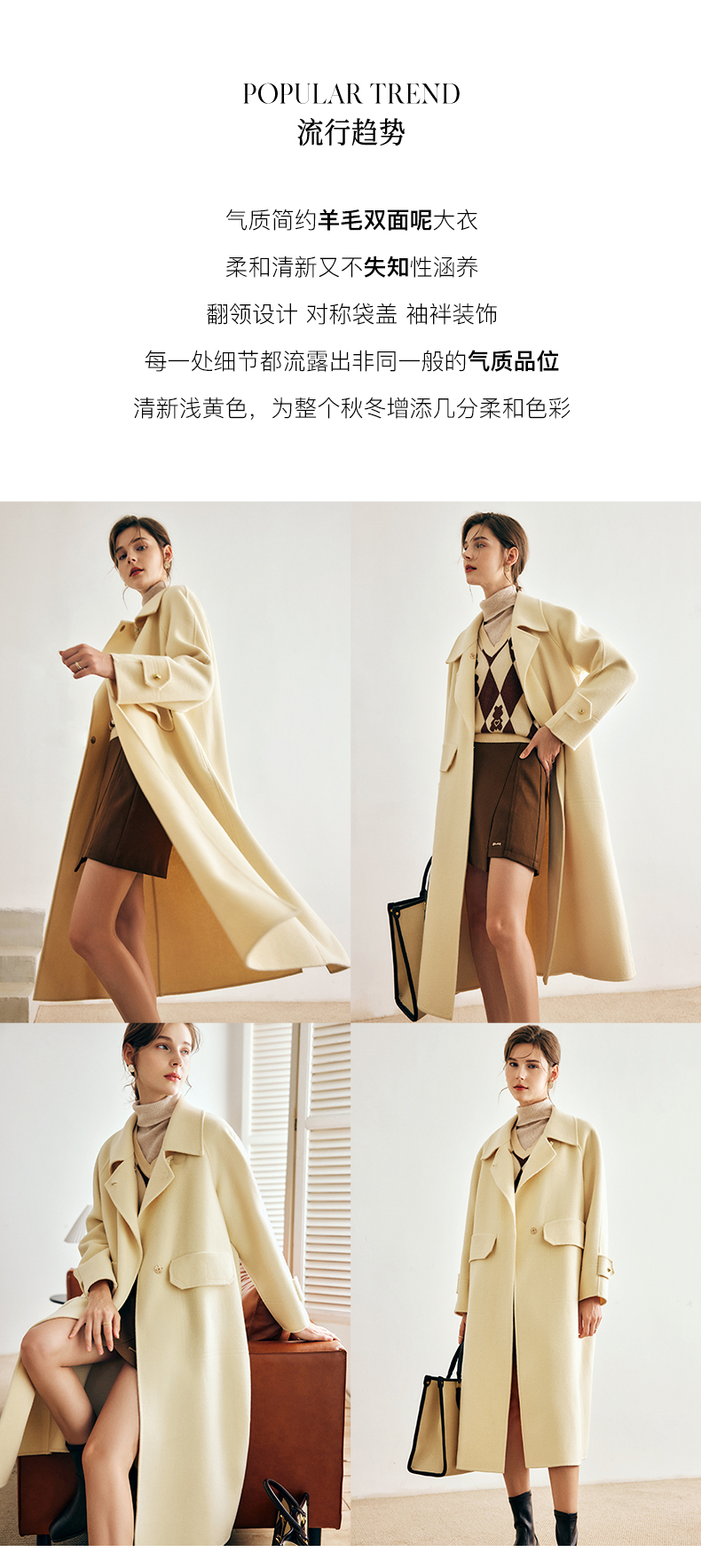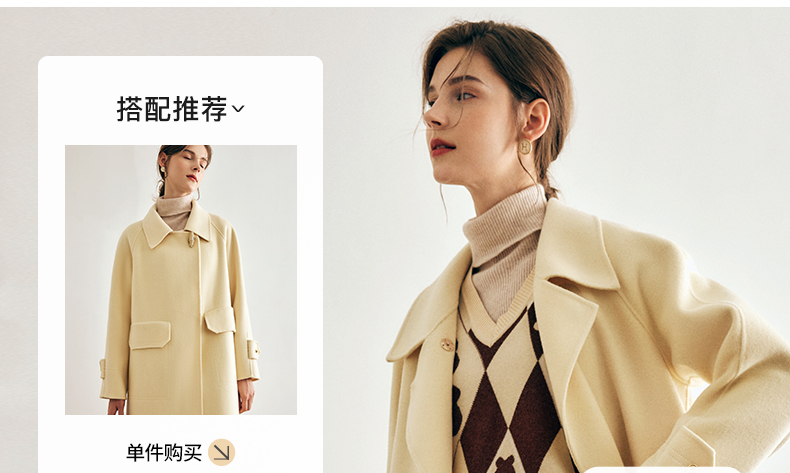 OLrain欧芮儿法式绿色毛呢外套女春季2024年新款韩系高级翻领大衣