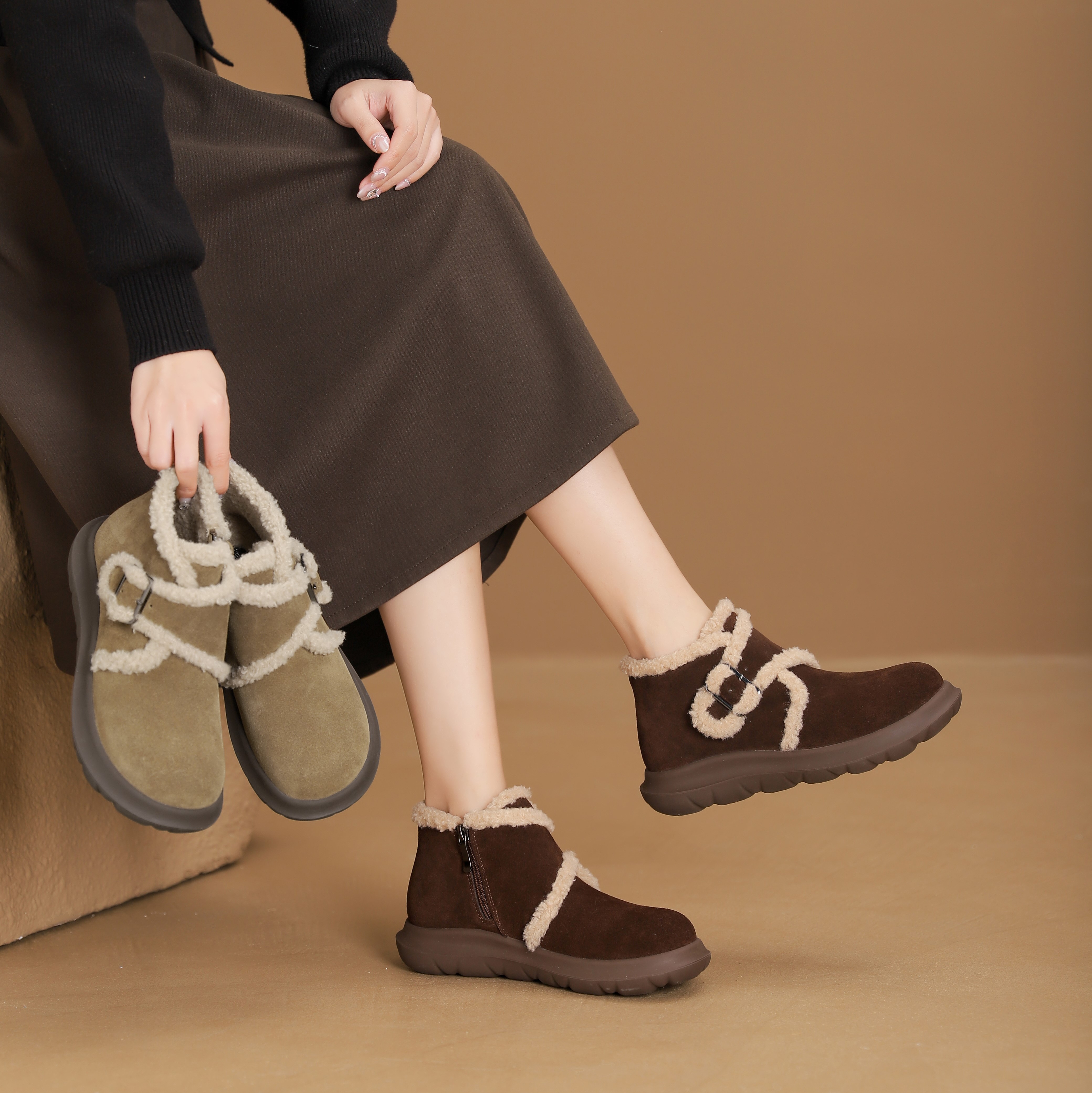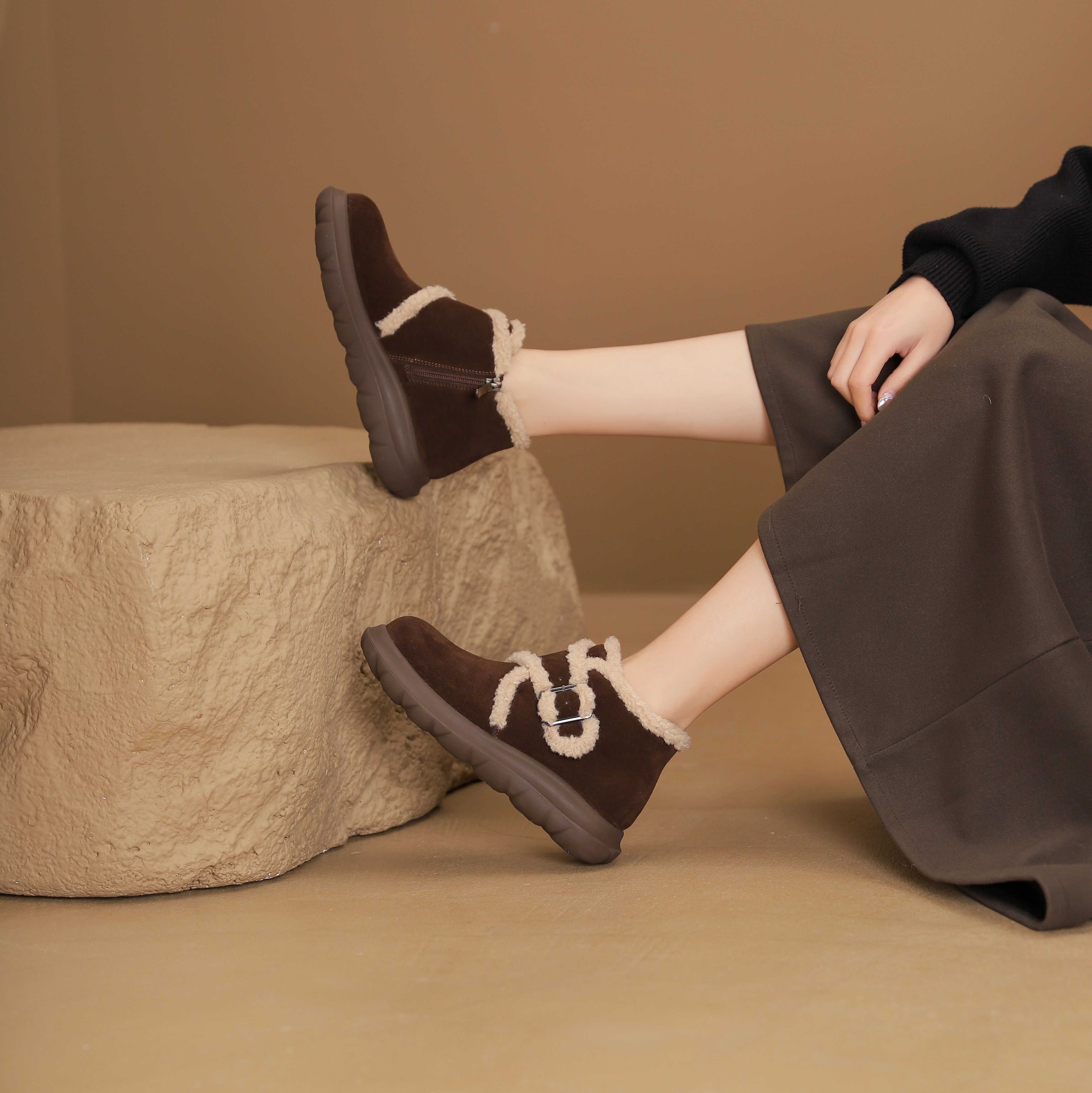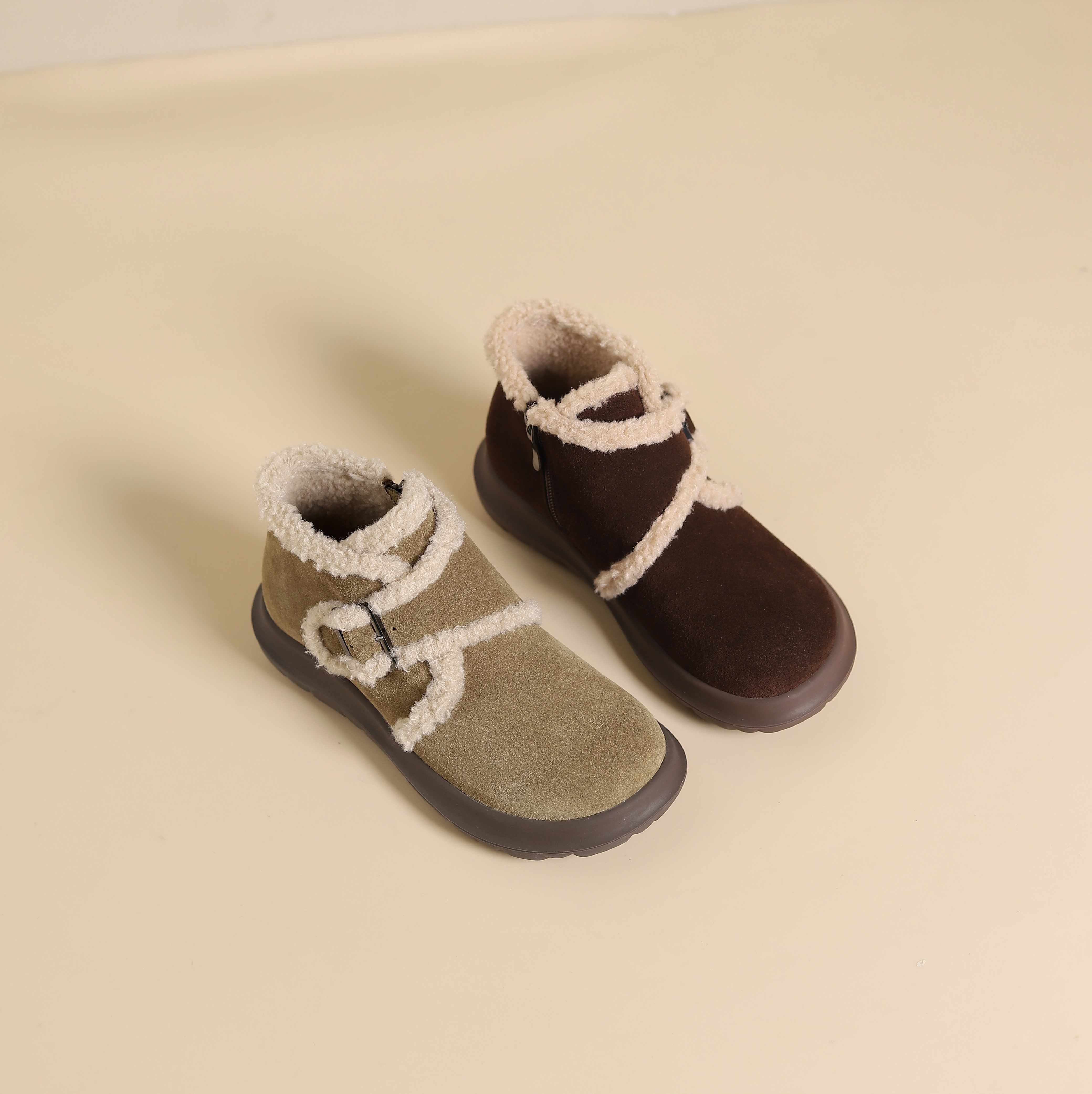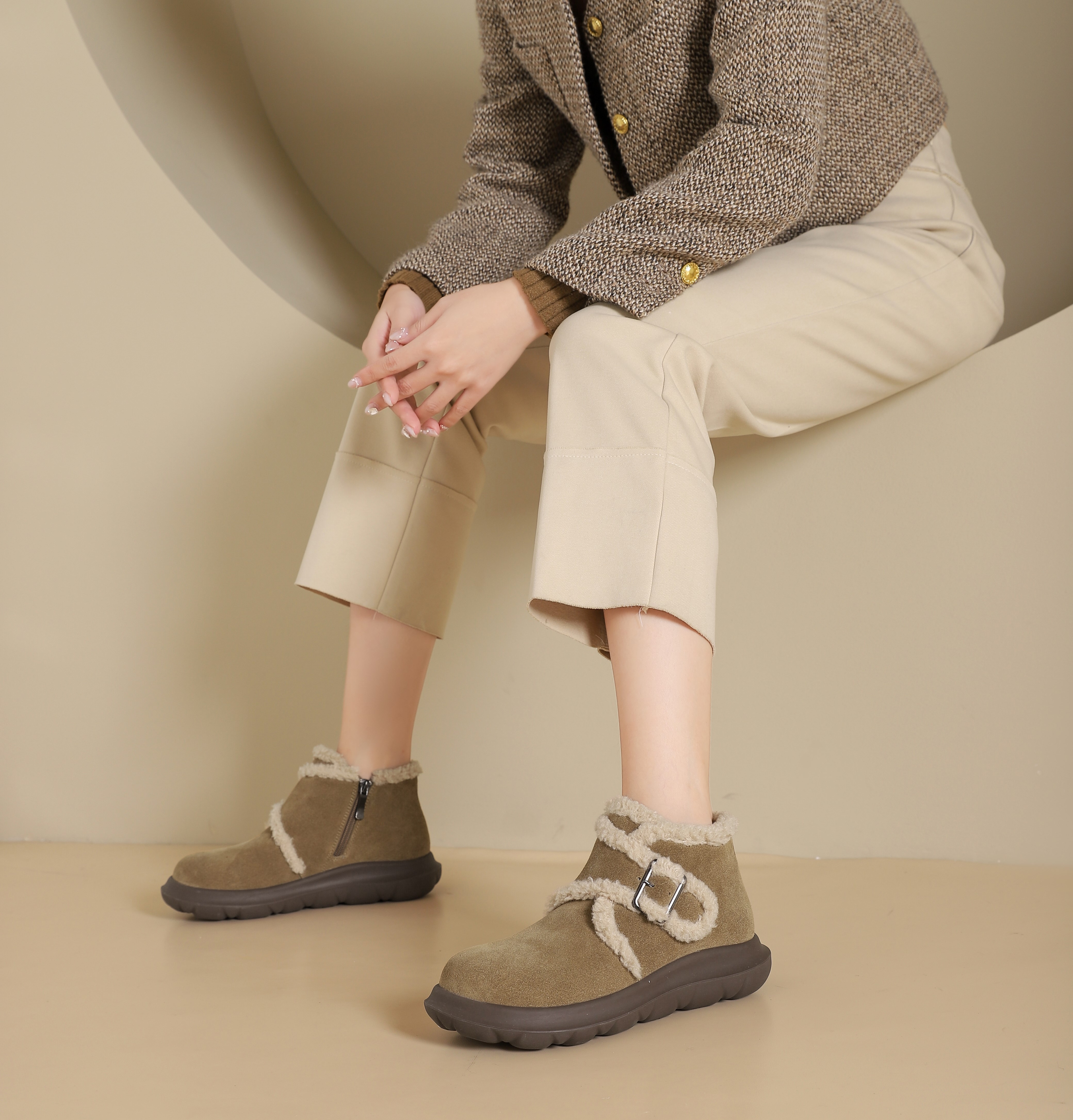 西村名物2024年冬季新款加毛保暖超轻厚底防滑毛毛靴T24DS48311