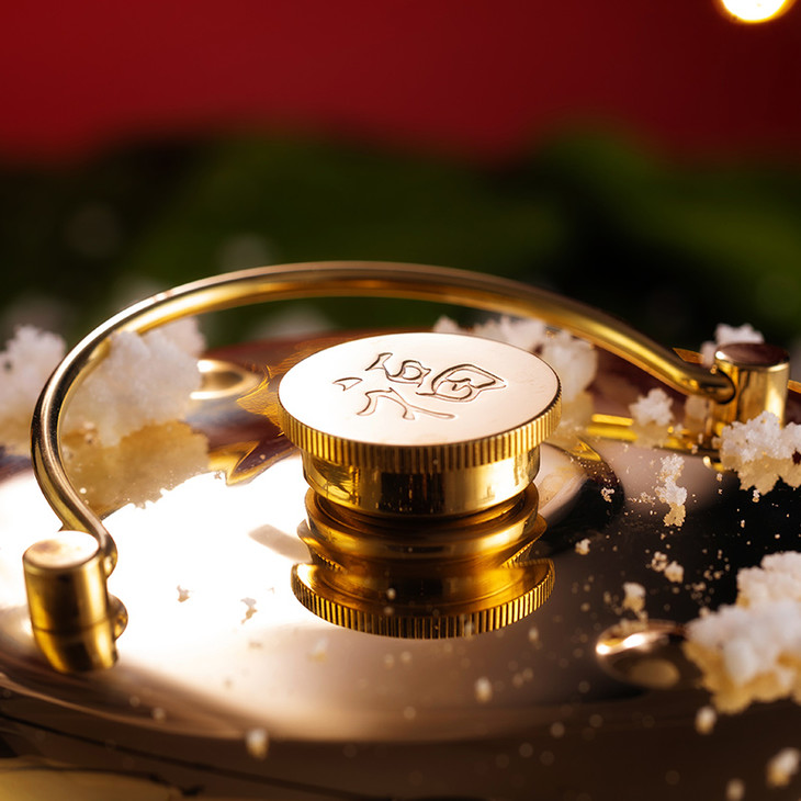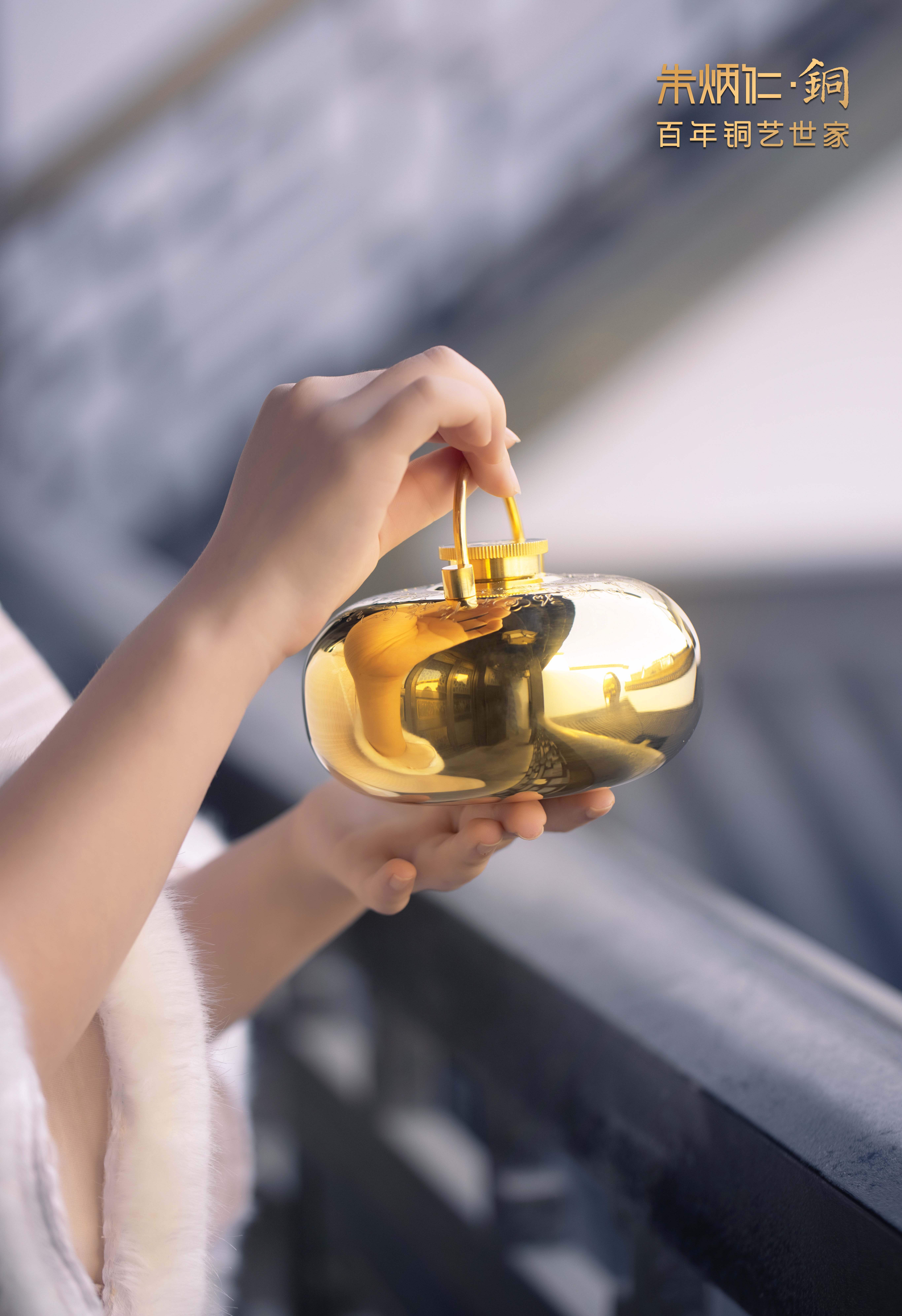 朱炳仁·铜的福满金运汤婆子,原材料采取云南的东川铜,它是国内富有名盛的一种铜材,在明清时期,是铸币、造器的主要材料,规格是125mm*90mm,重量约0.3千克,这是小尺寸的汤婆子,拿在手里也不会觉得特别重。