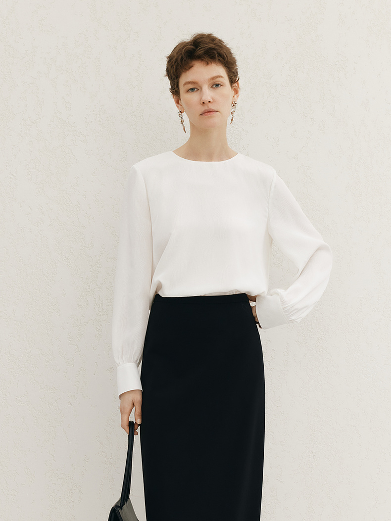 【商场同款】麦檬春秋圆领百搭真丝高包容性衬衫5F2121141
