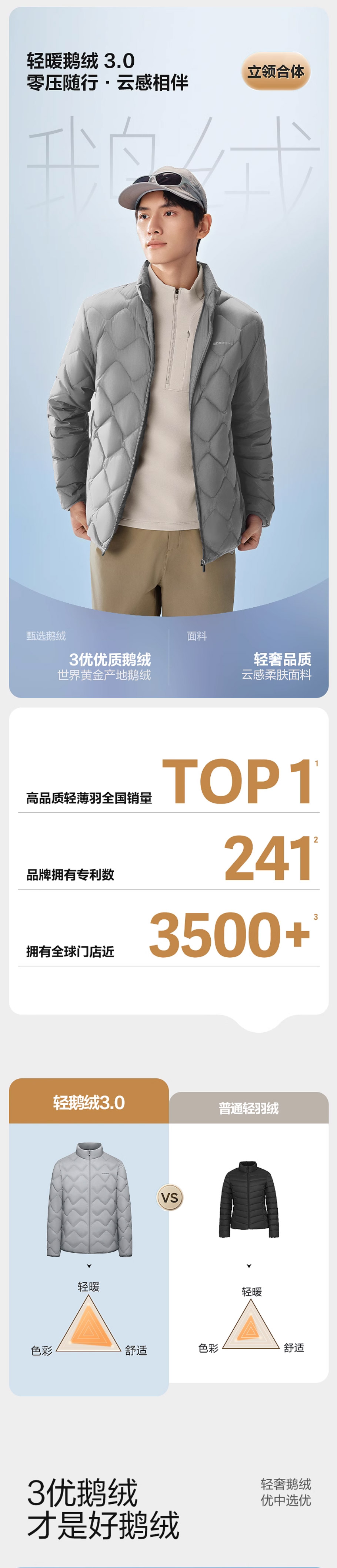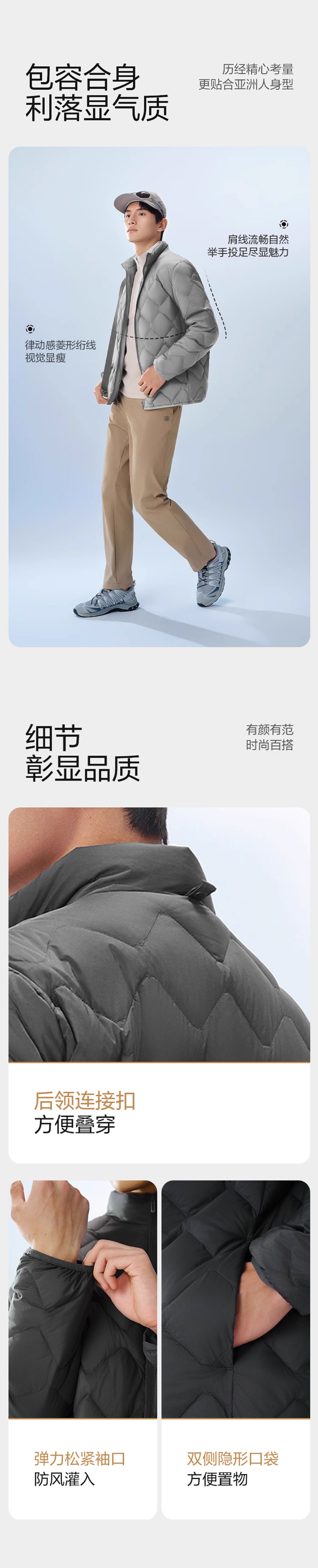 波司登2025秋季新款鹅绒羽绒服男短款立领轻薄保暖外套B250131021