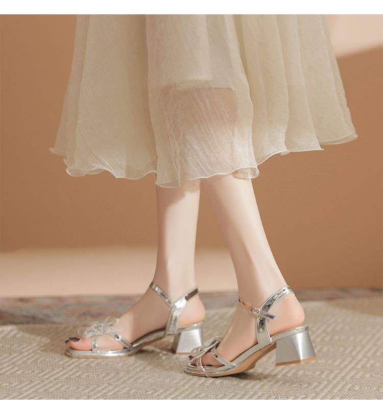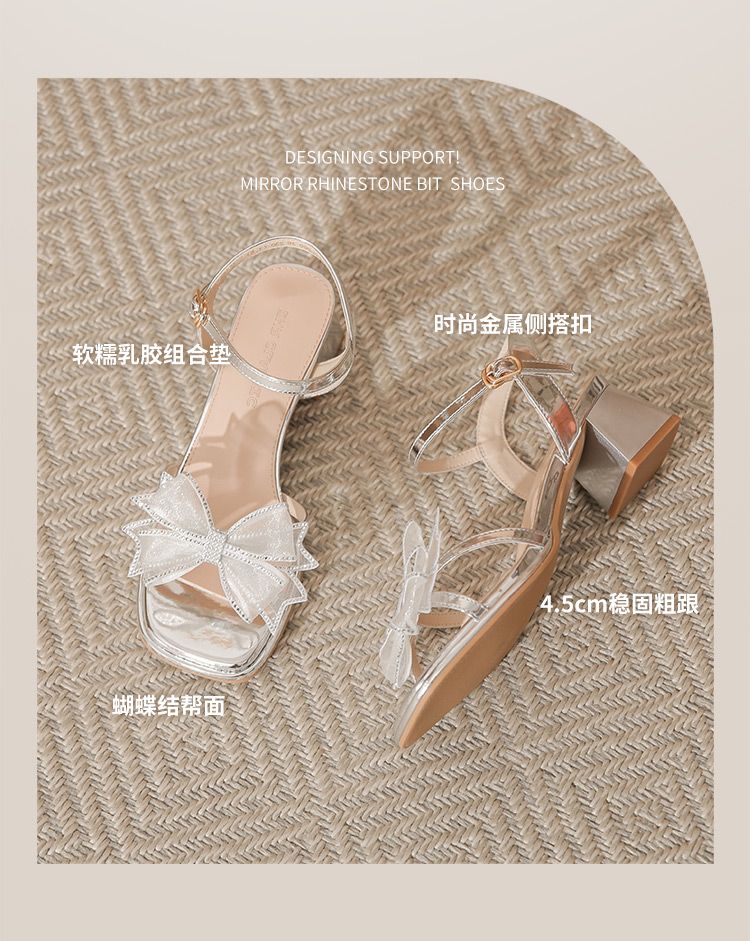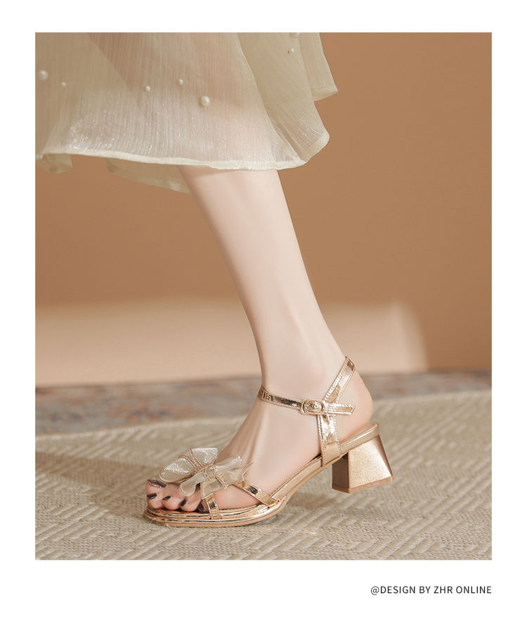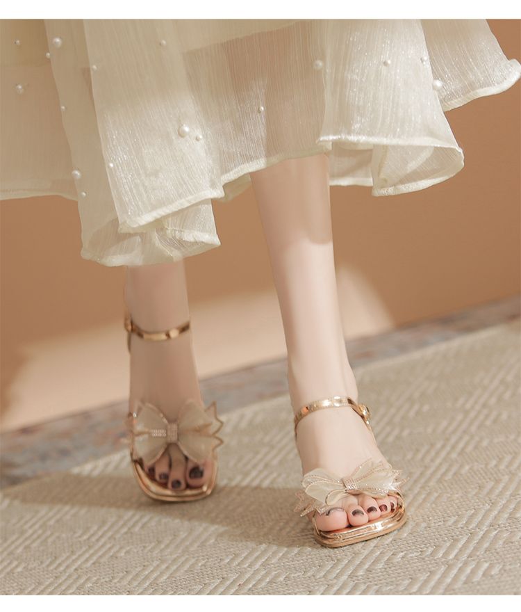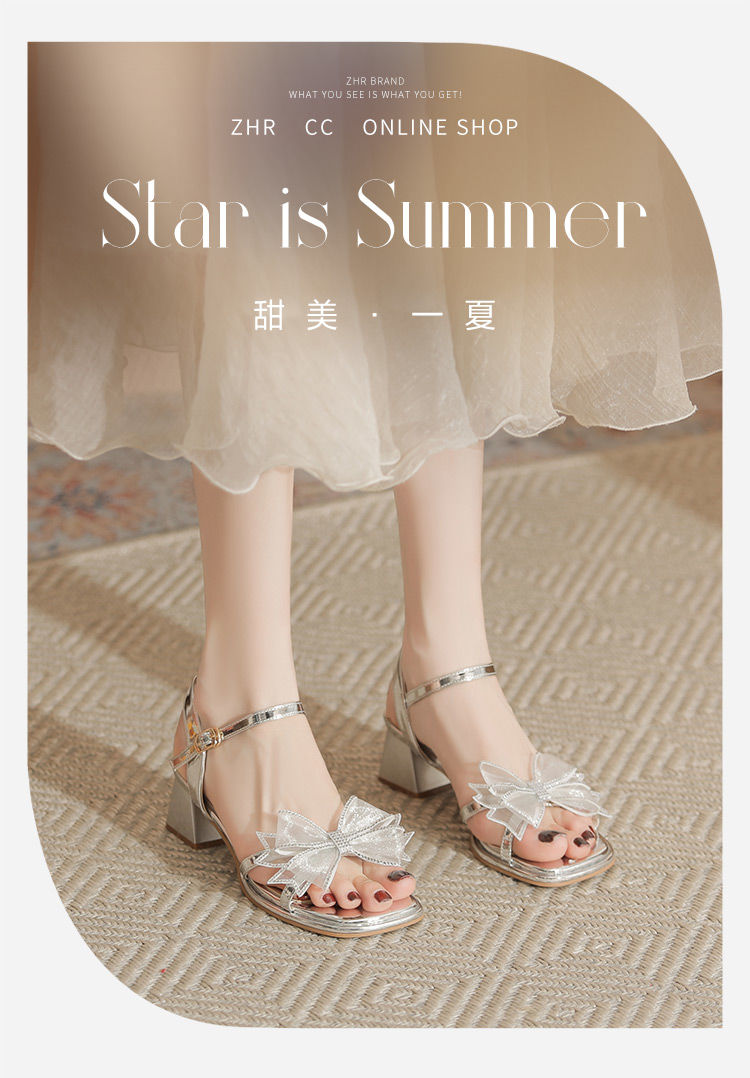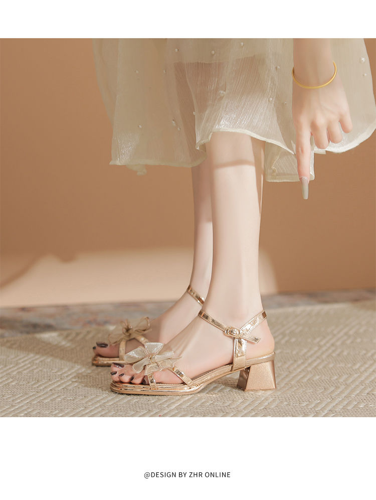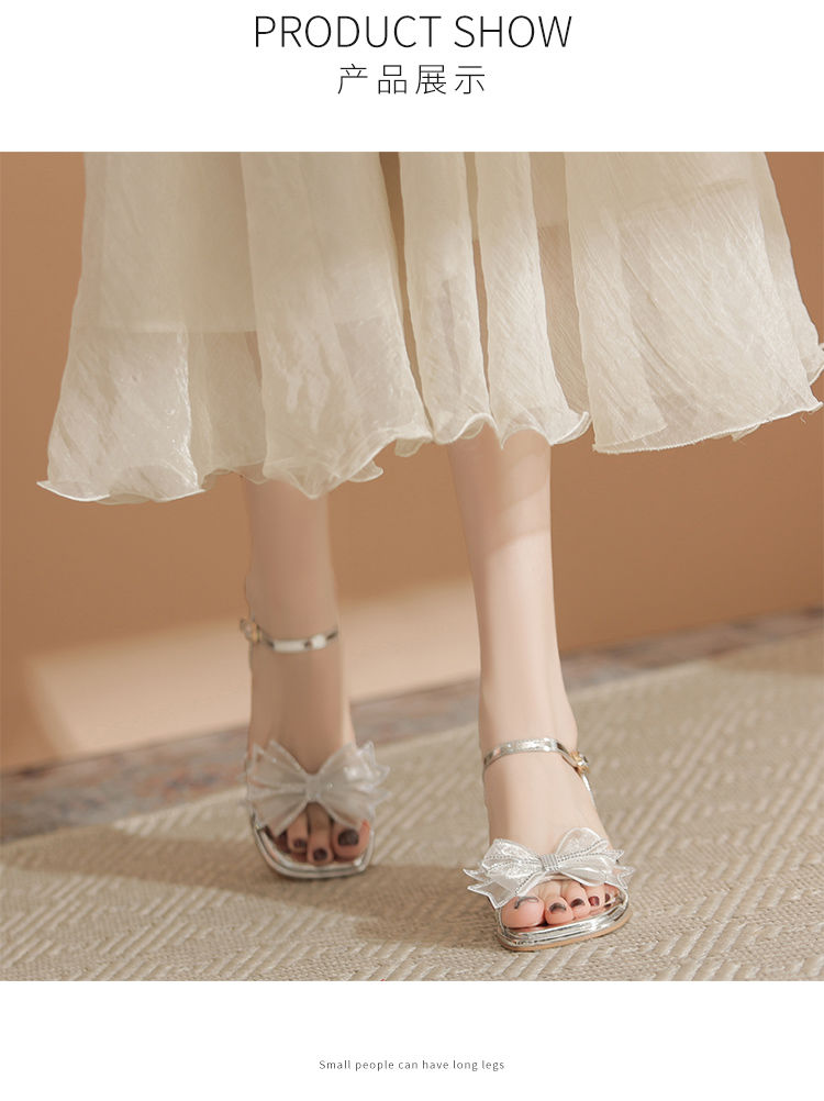 ZHR洋气超软外出凉鞋女2024新款夏季一字带绝美高跟鞋蝴蝶结女鞋