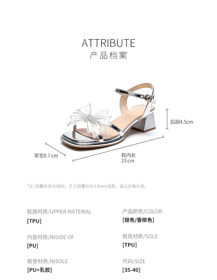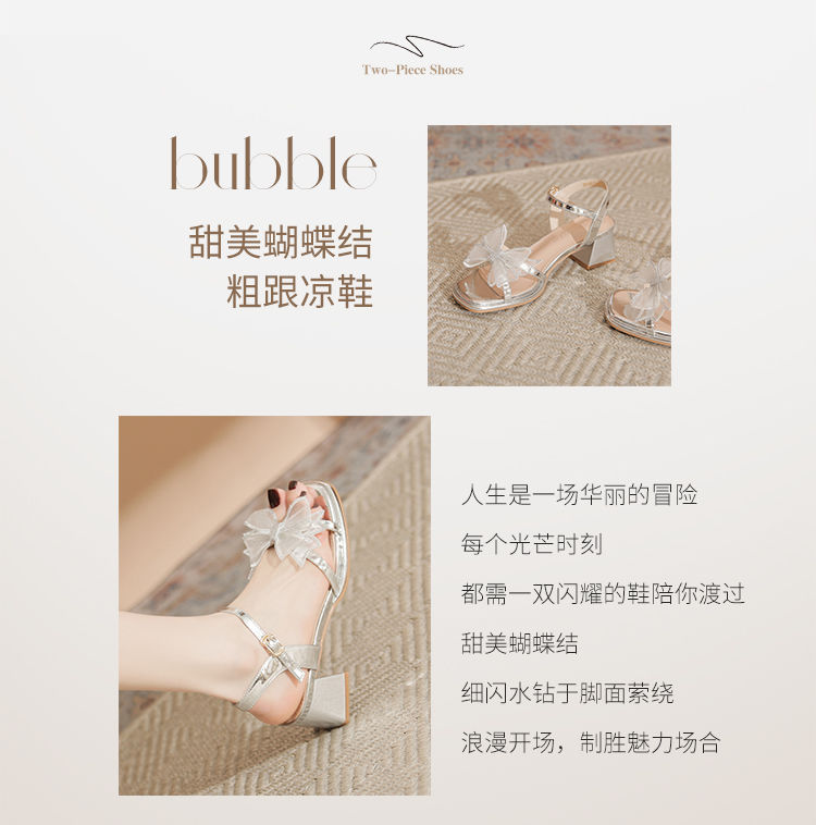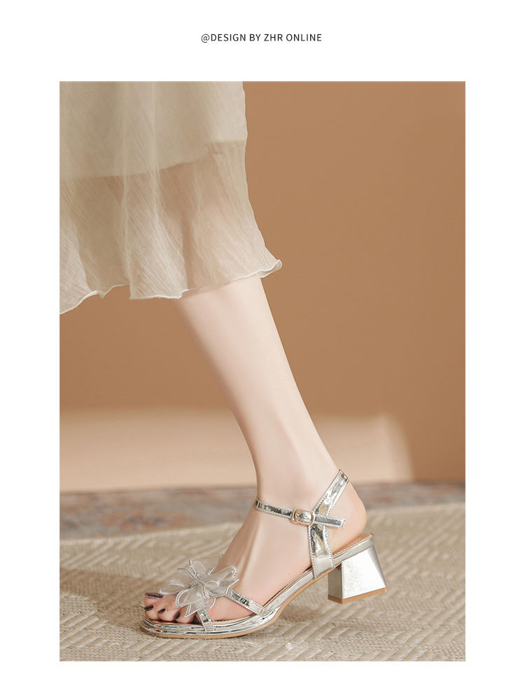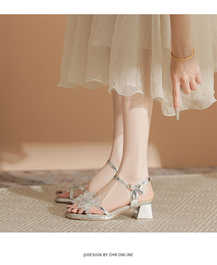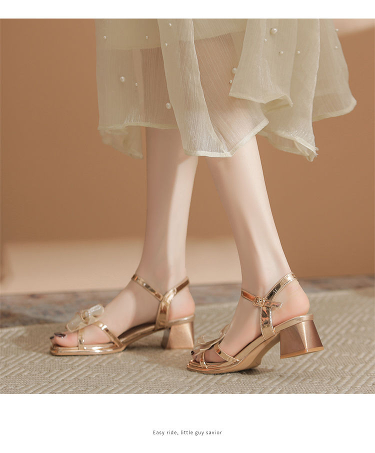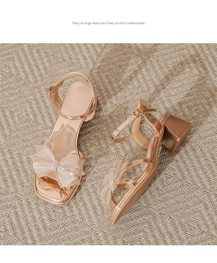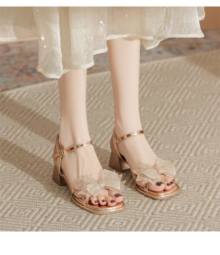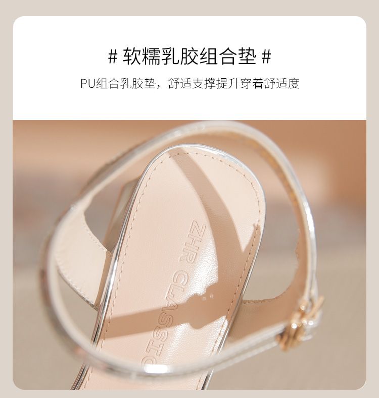 ZHR洋气超软外出凉鞋女2024新款夏季一字带绝美高跟鞋蝴蝶结女鞋