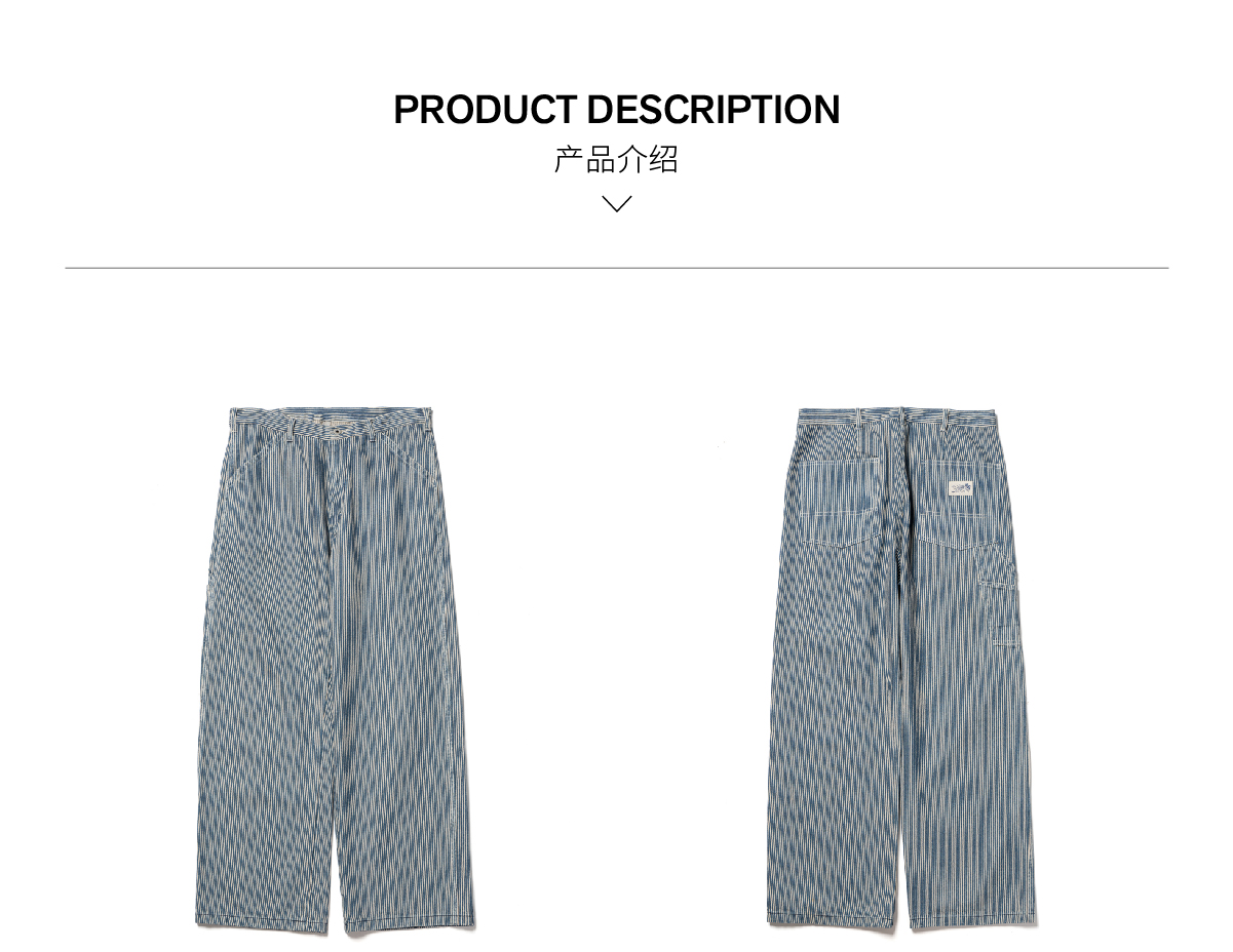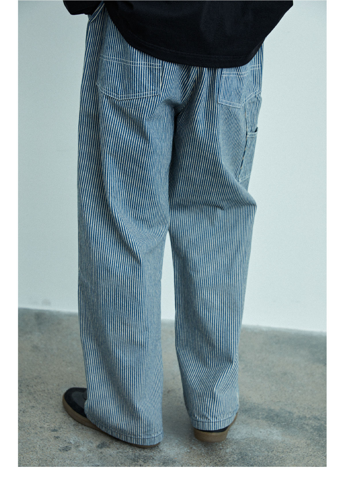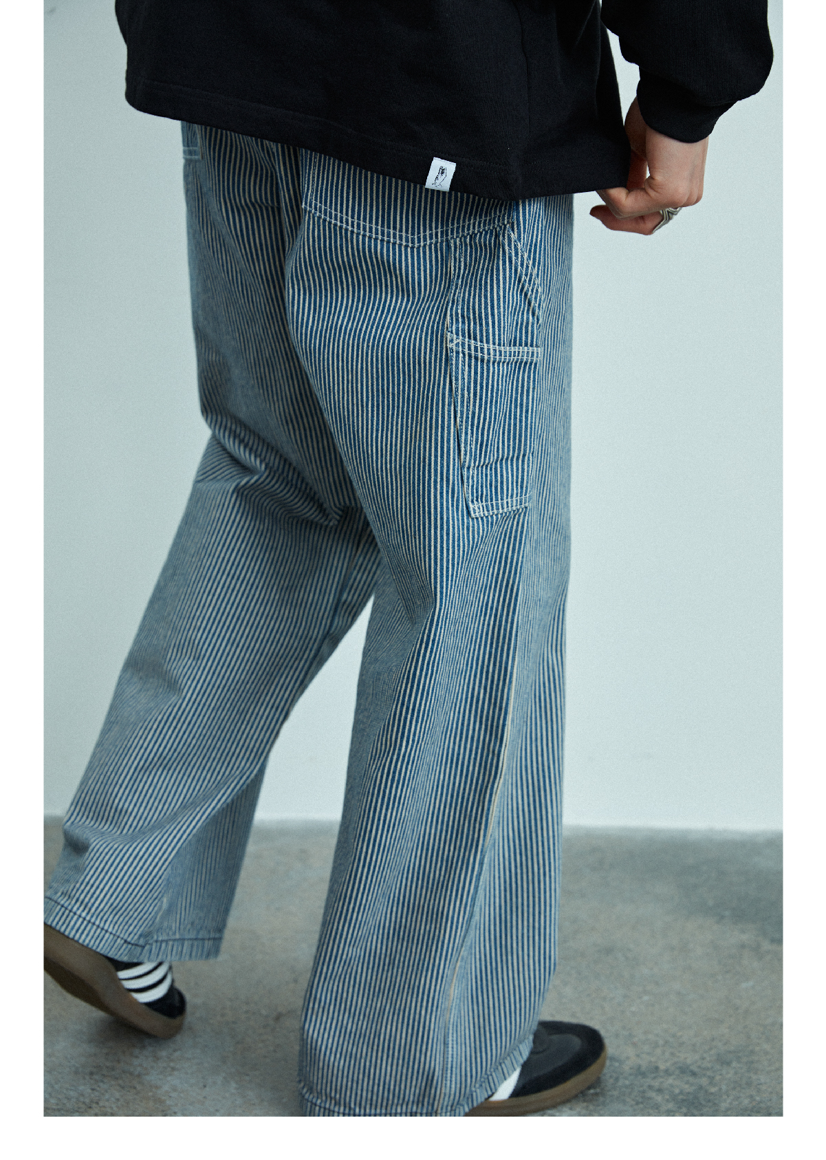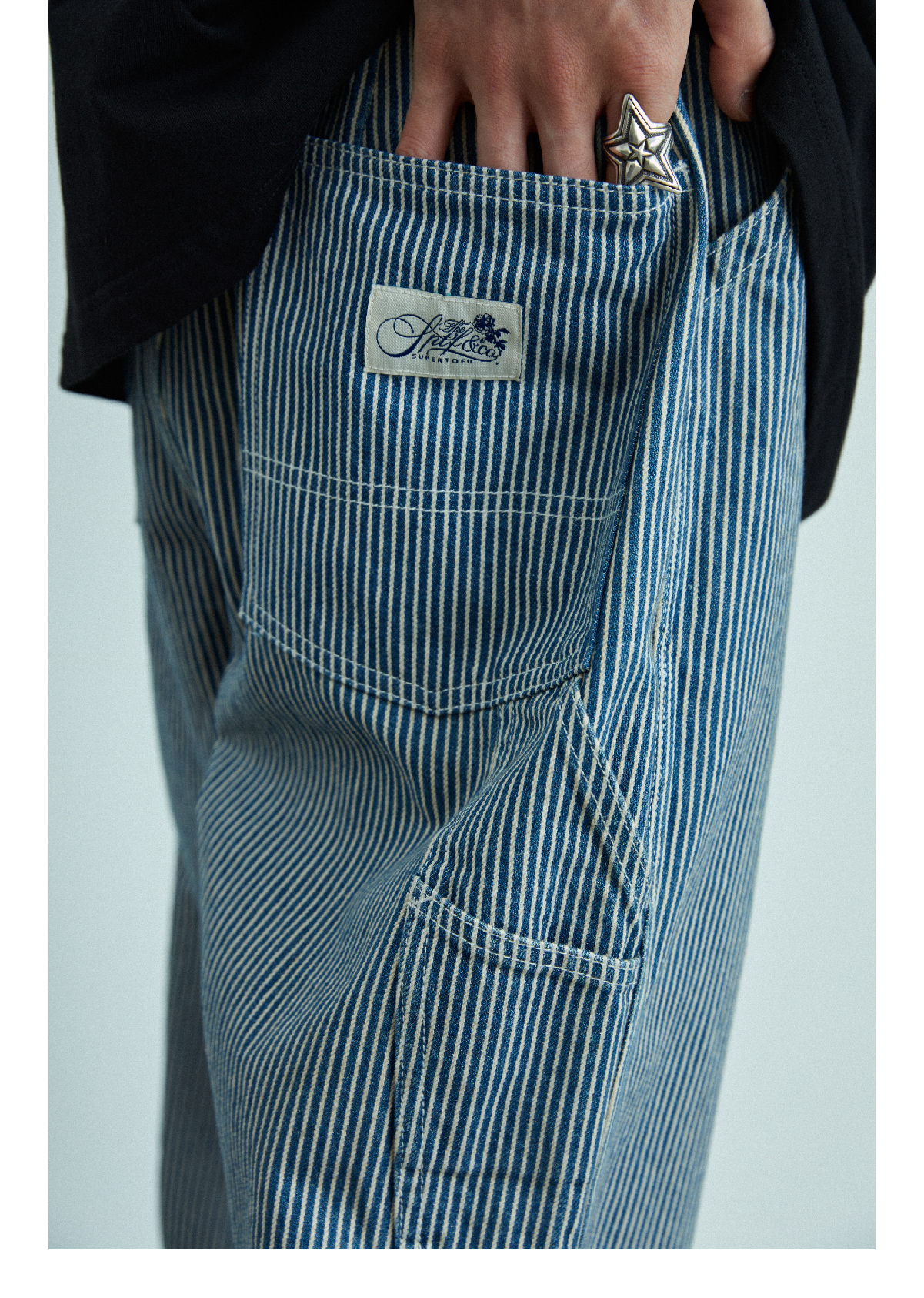 SUPERTOFU/复古工装口裤袋 宽松直筒 色织条纹工装裤