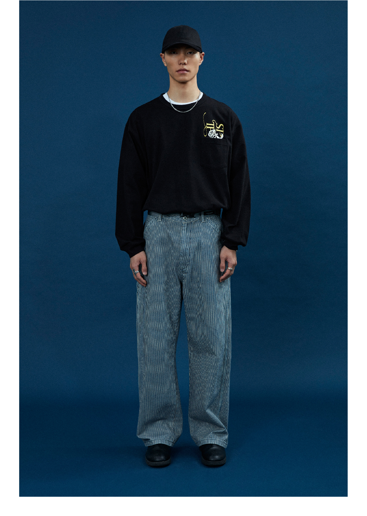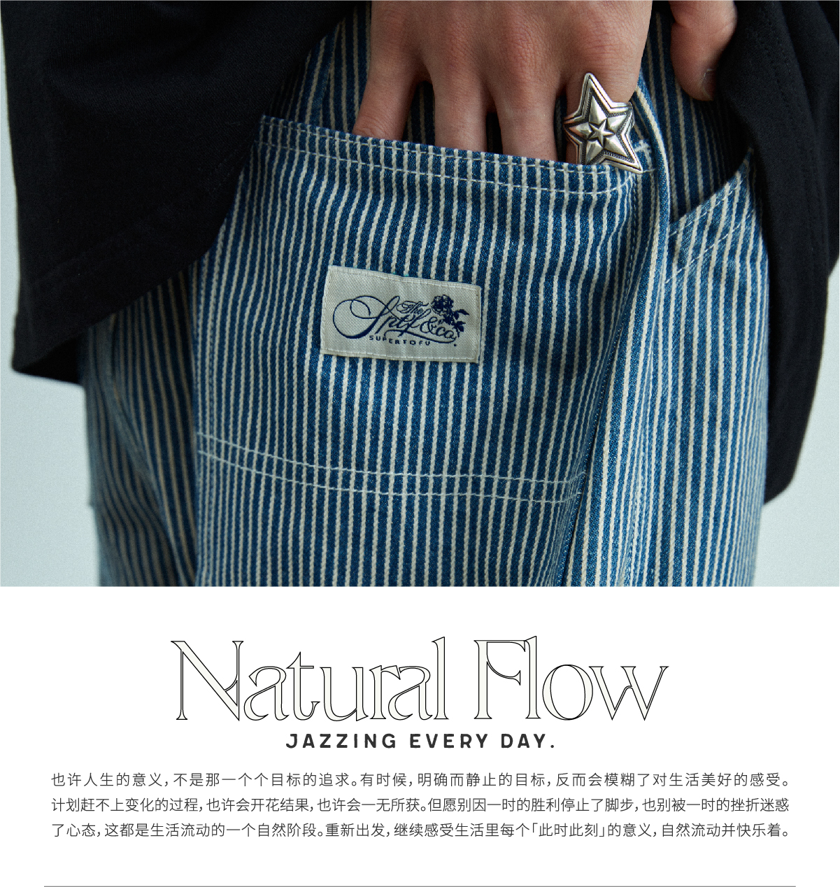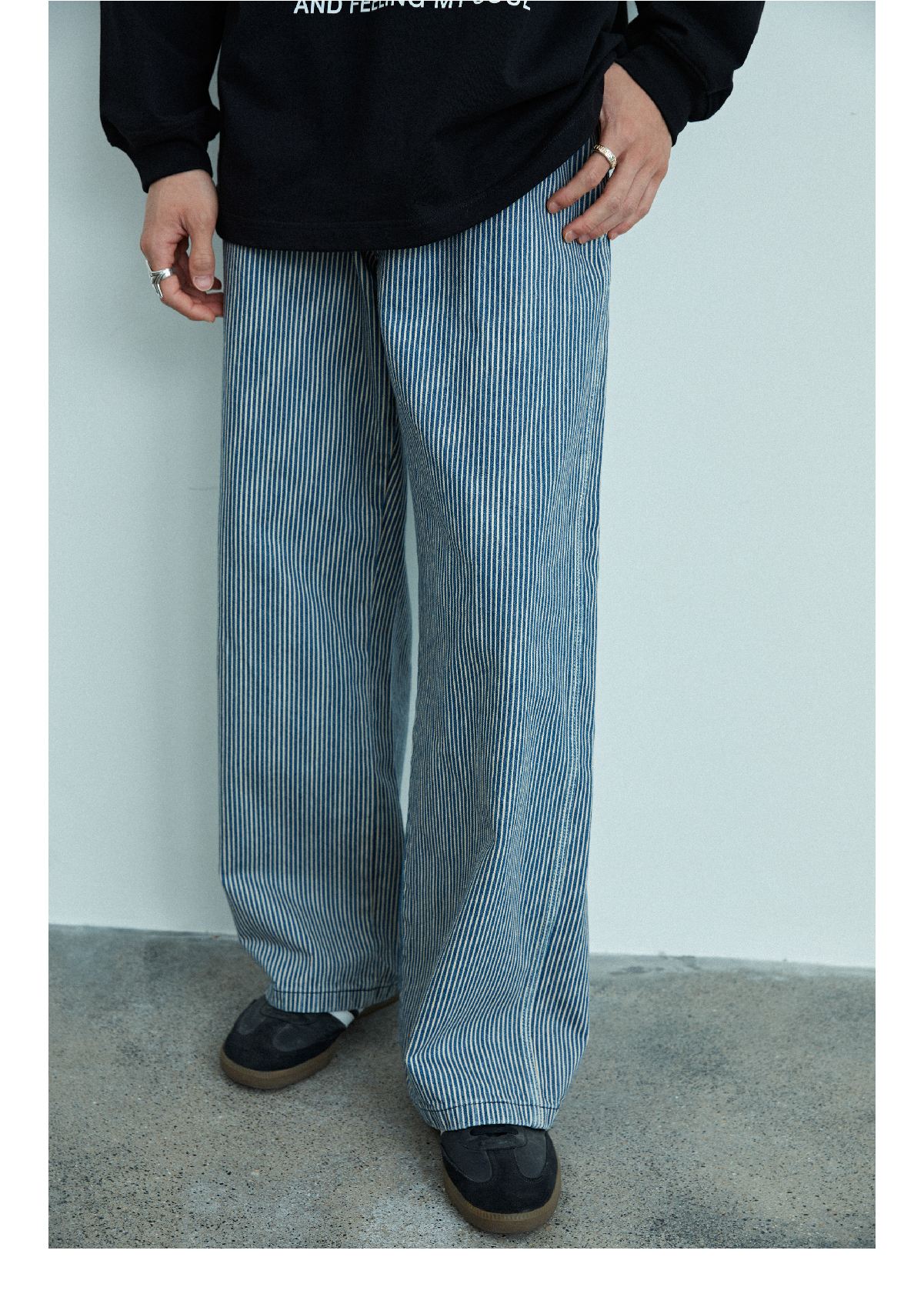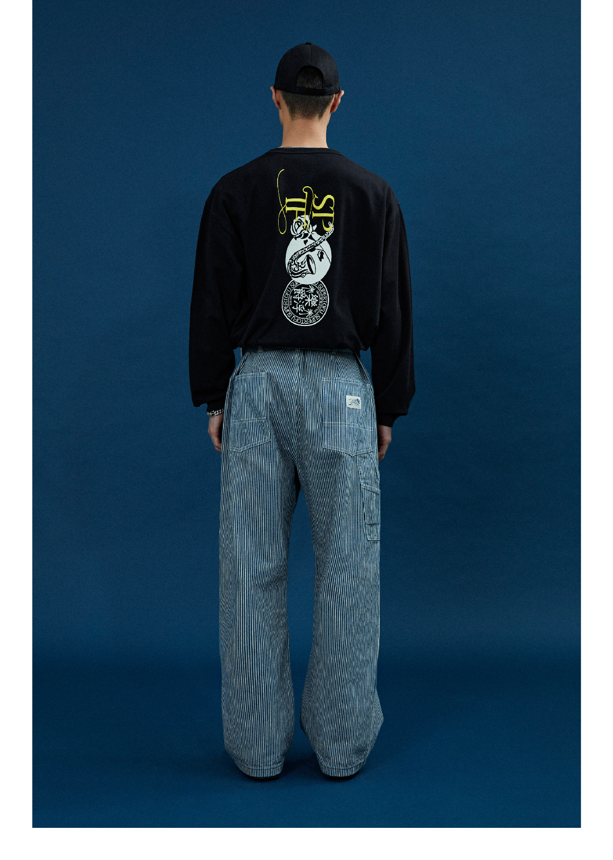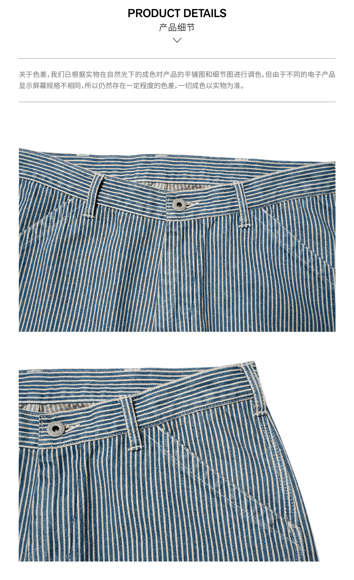 SUPERTOFU/复古工装口裤袋 宽松直筒 色织条纹工装裤