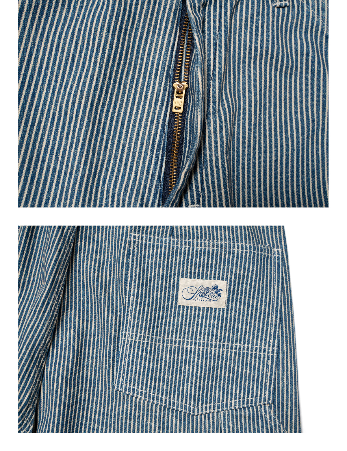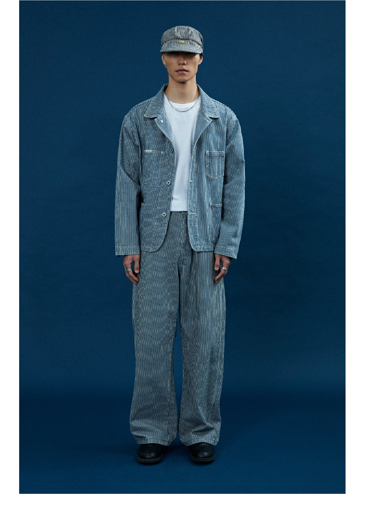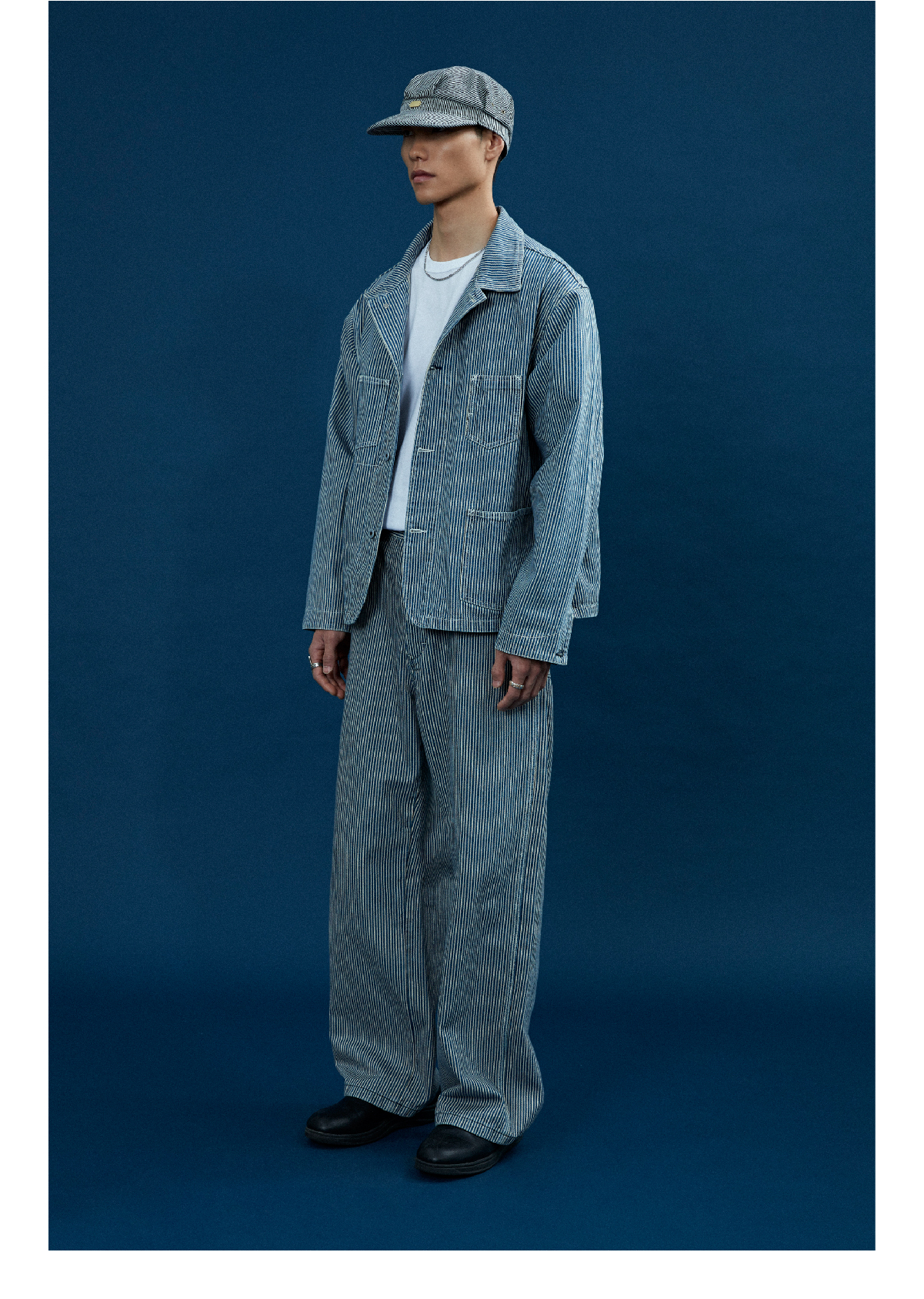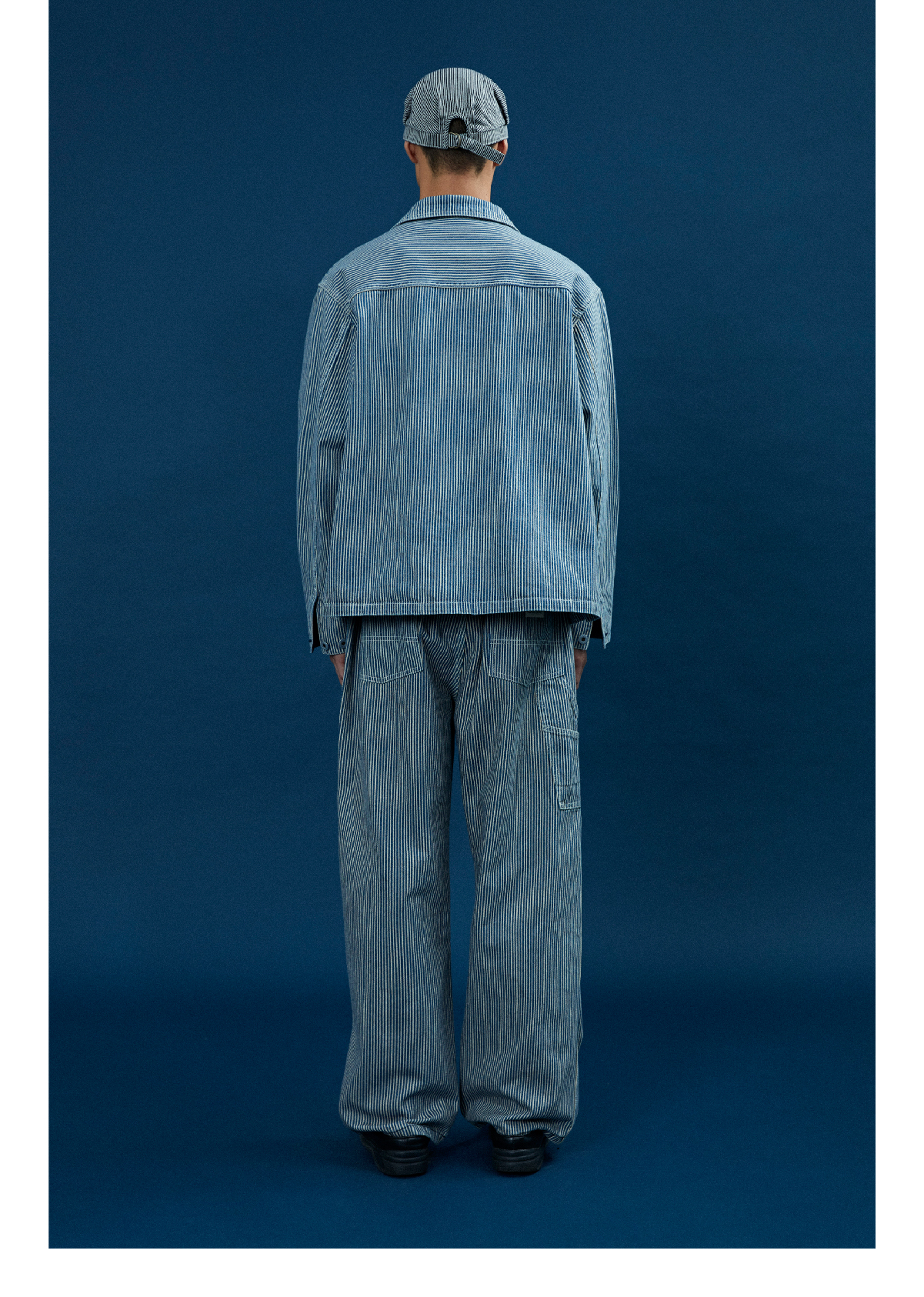 SUPERTOFU/复古工装口裤袋 宽松直筒 色织条纹工装裤