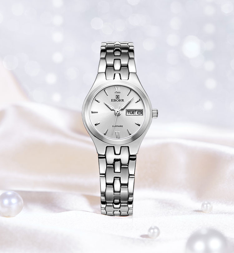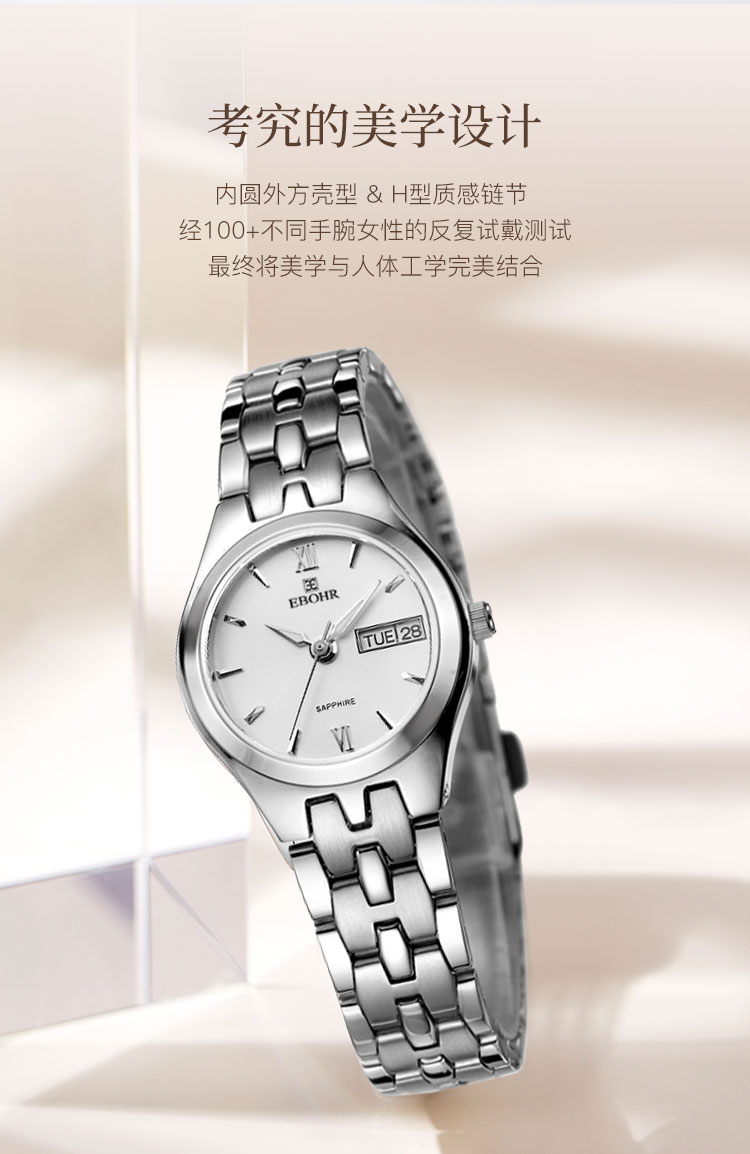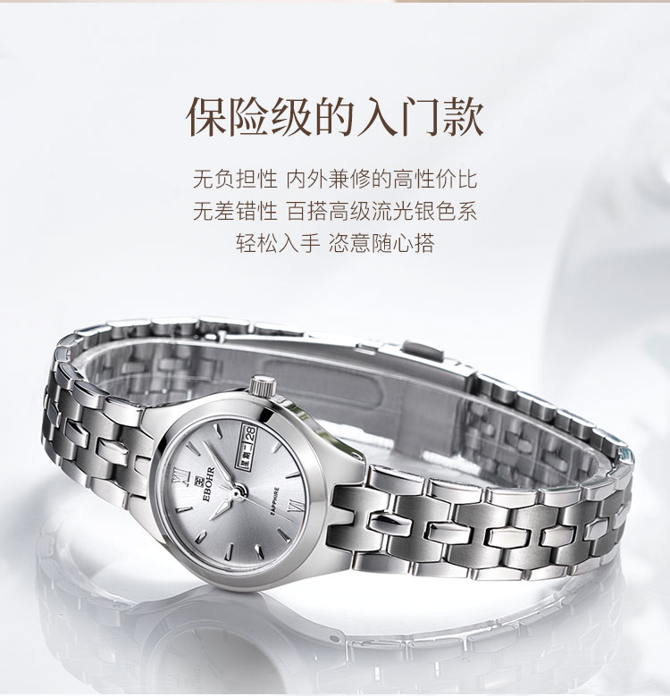 EBOHR 依波表 卡纳系列镶钻白面钢带机械防水女士手表礼物 5163