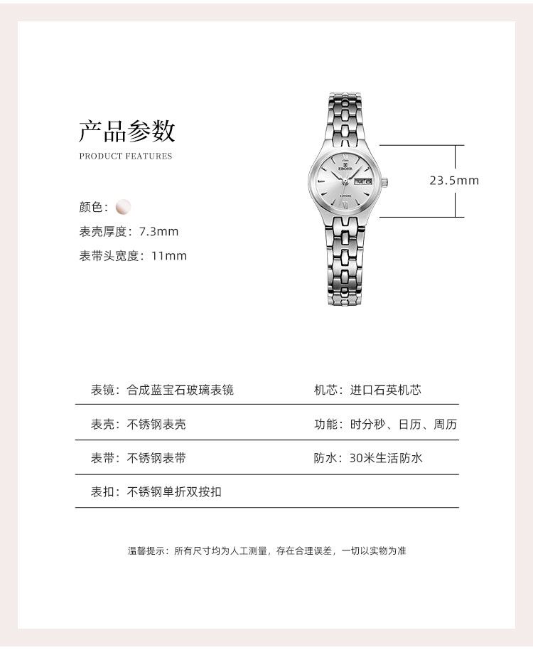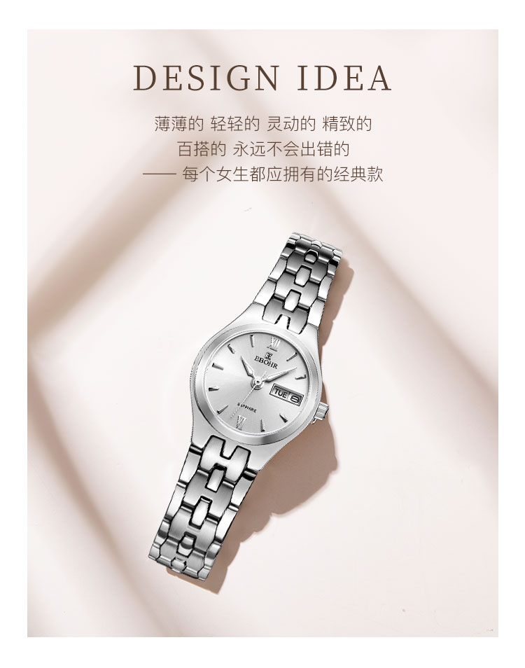 依波(EBOHR)精致小巧百搭女士石英表手表防水女神礼物5003