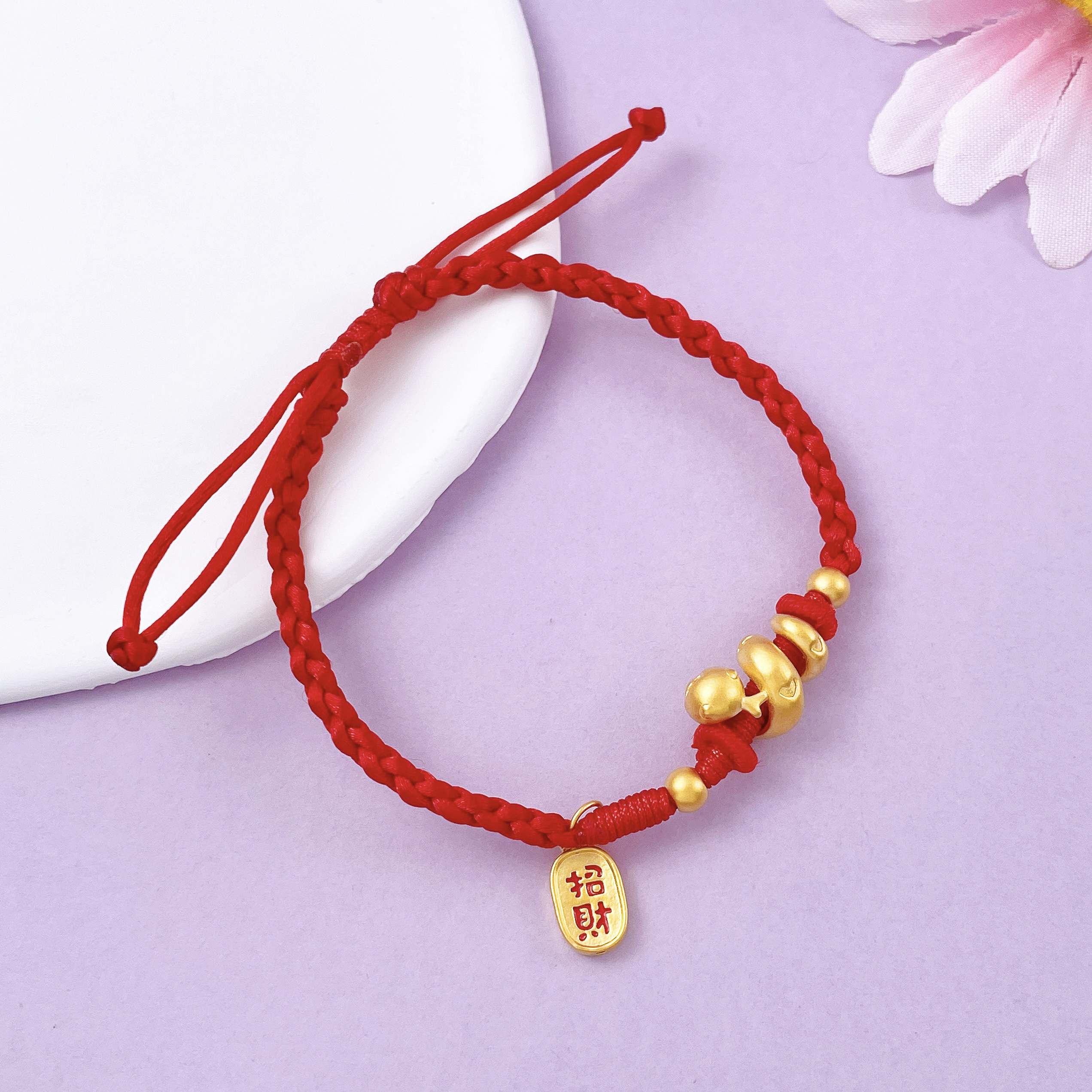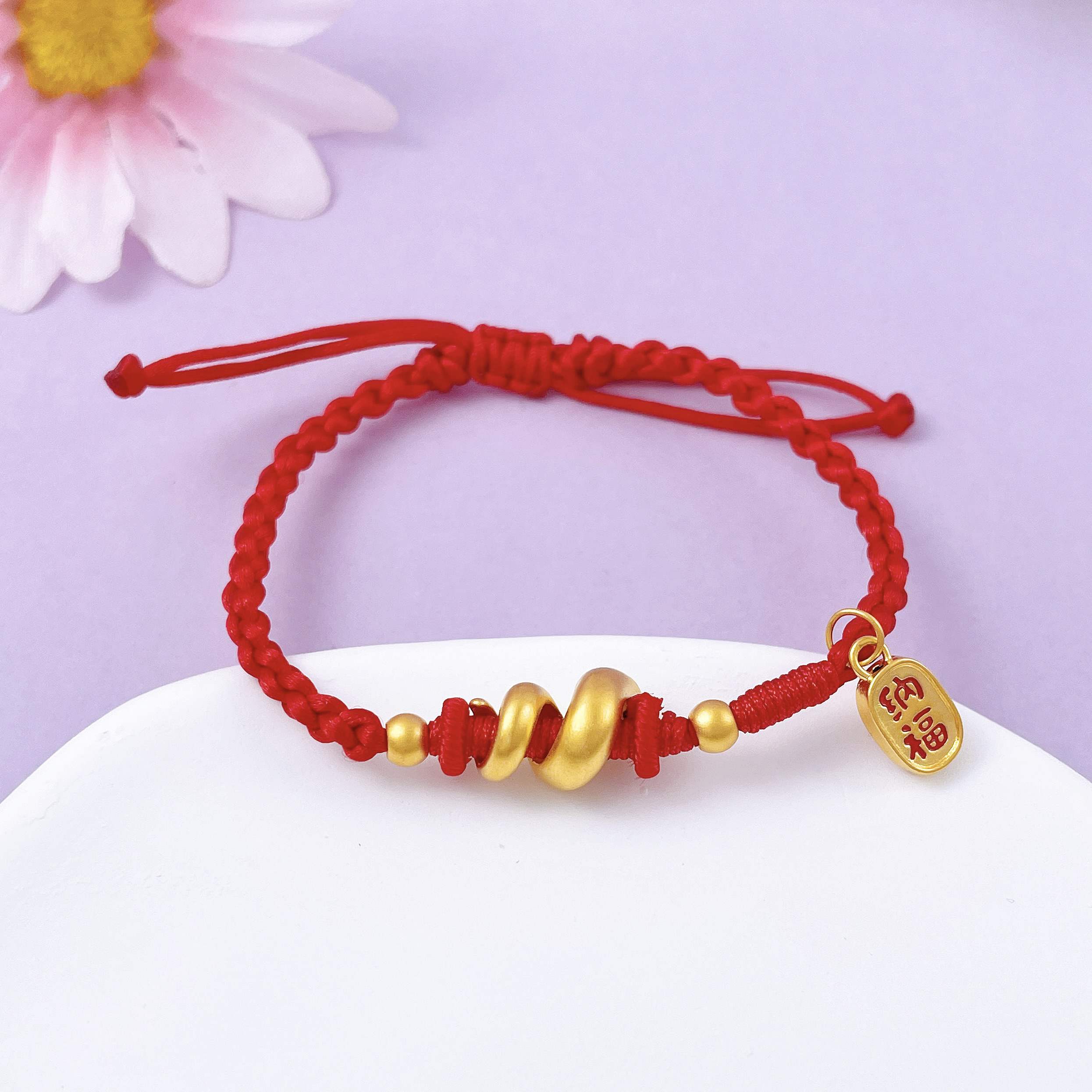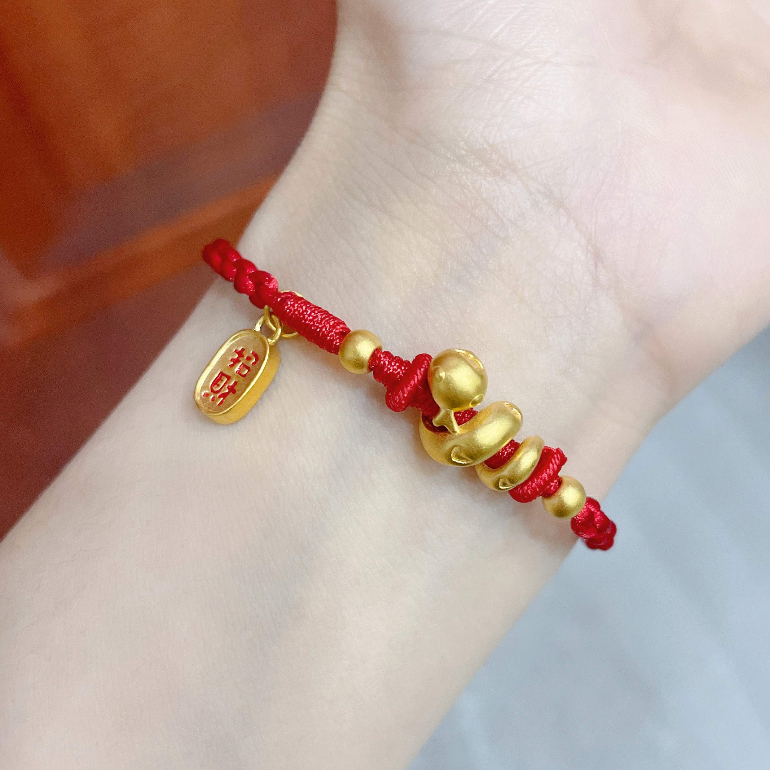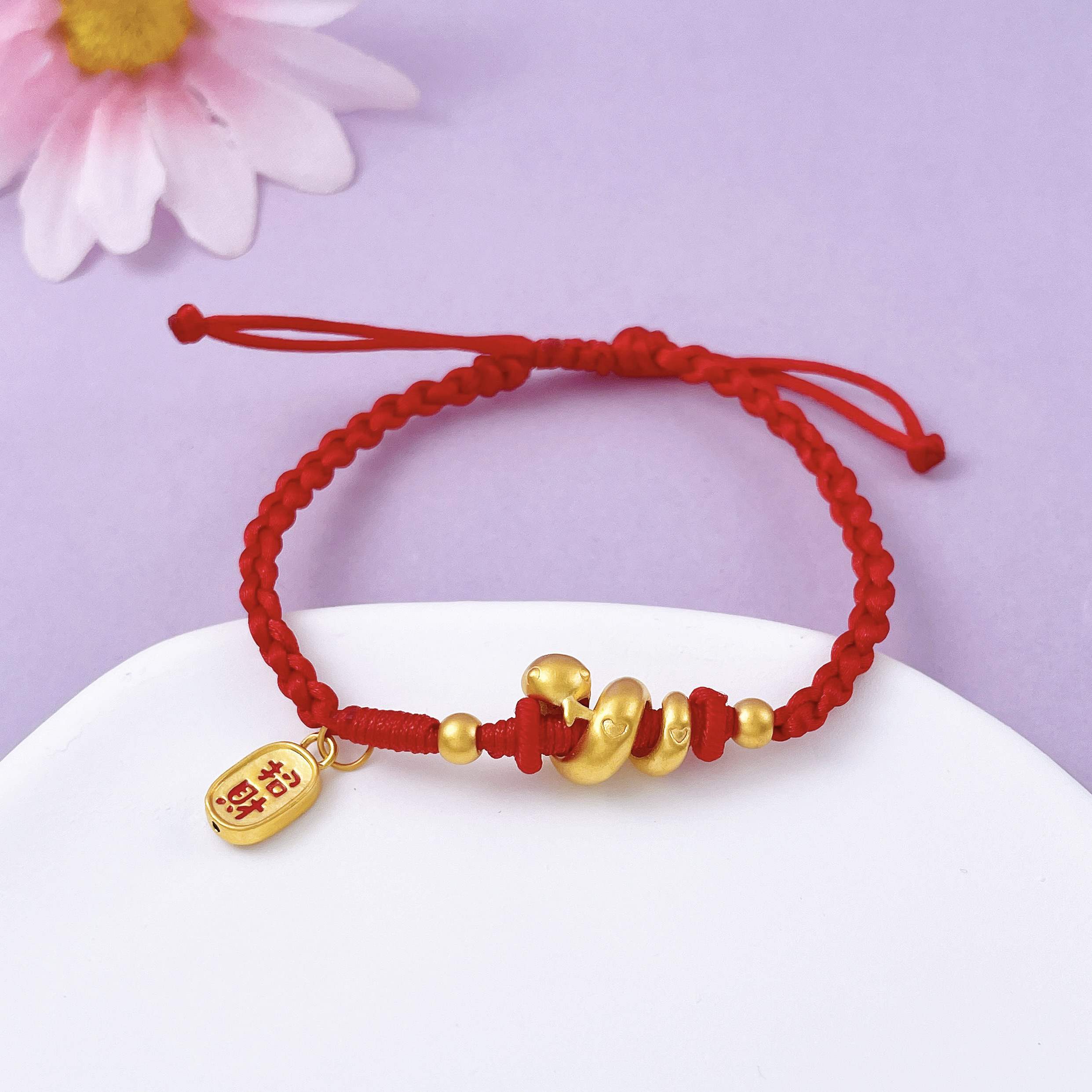 【限时7.5折】【定价黄金】足金 #低温珐琅 #蛇年新品 #招财纳福 无氰5D空心招财纳福卷卷蛇生肖蛇吊饰编绳手串成品(成人配戴)(AA5DSC00064)预售产品下单后不退款不退货不换货不补差价