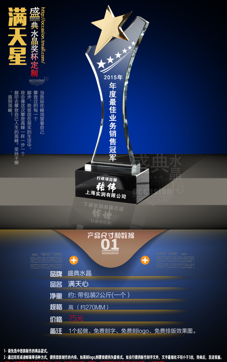 奖杯奖牌 定做水晶奖牌制作奖杯 定制水晶奖杯定做创意奖杯刻字