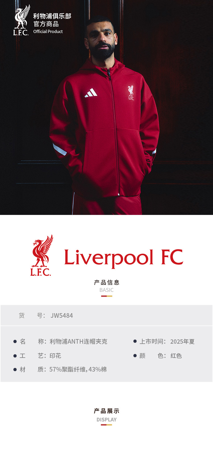 【官网同款】利物浦俱乐部 | 利物浦ANTH连帽夹克男女同款