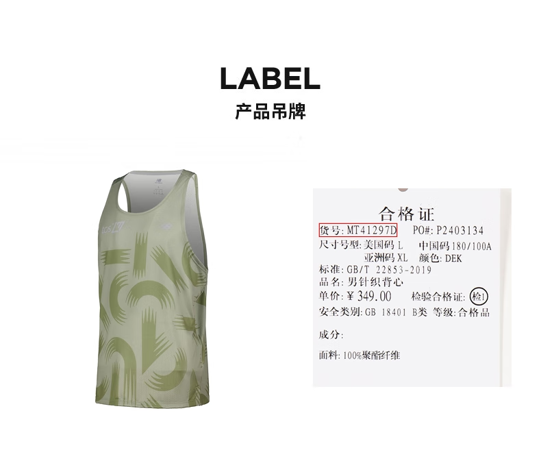 NEW BALANCE/NB Athletics Run Singlet 男款圆领印花T恤户外运动休闲速干透气运动背心