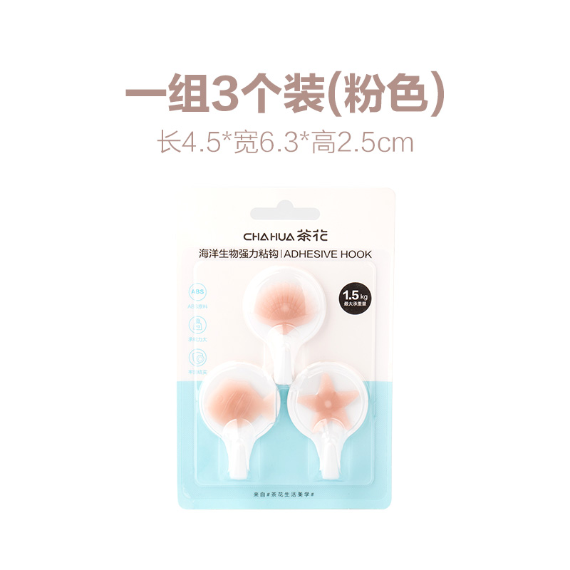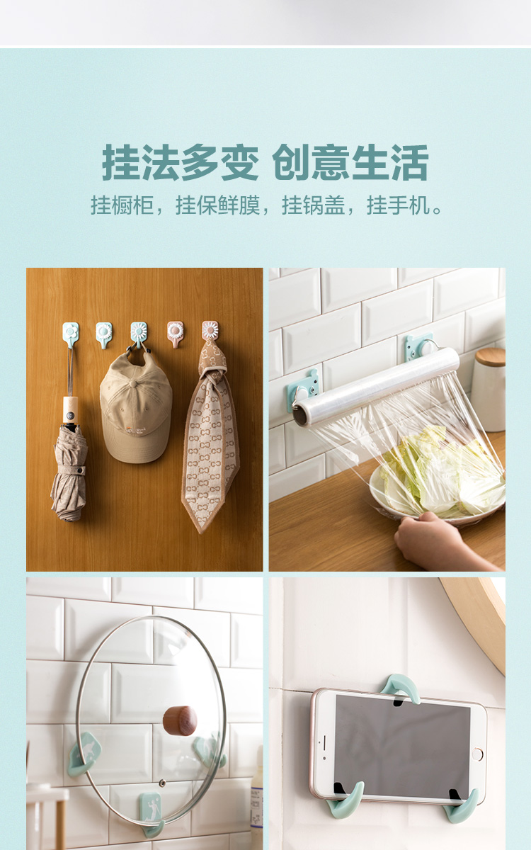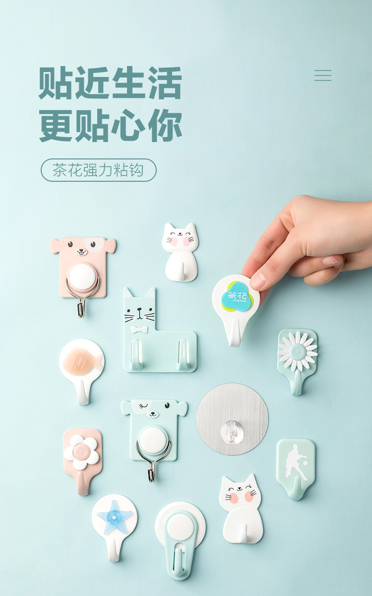 茶花挂钩家用墙壁墙上免打孔衣帽钩厨房卡通粘钩粘贴钩子