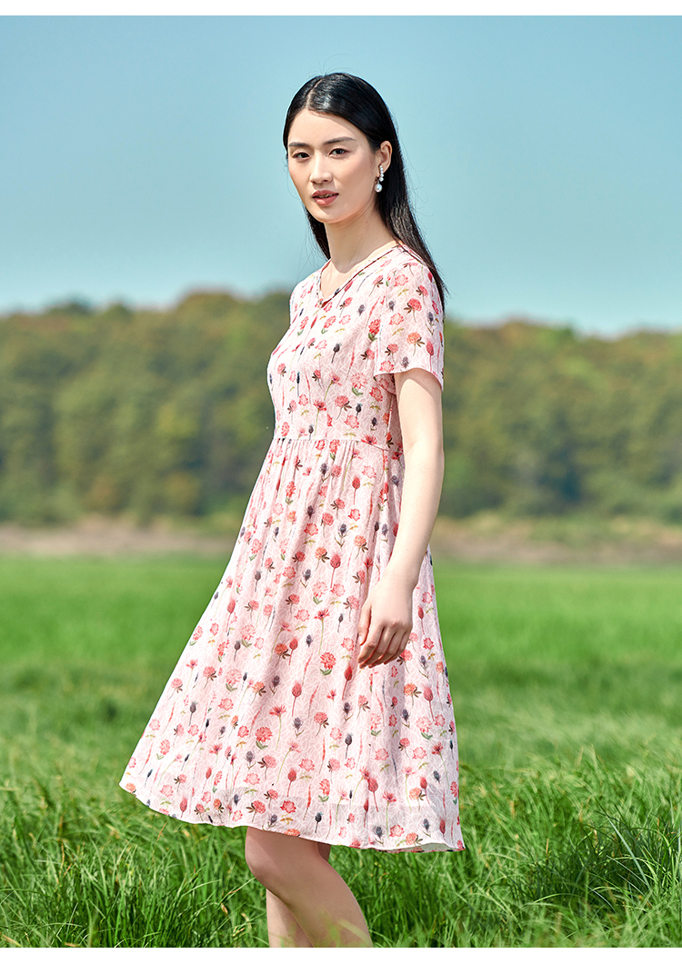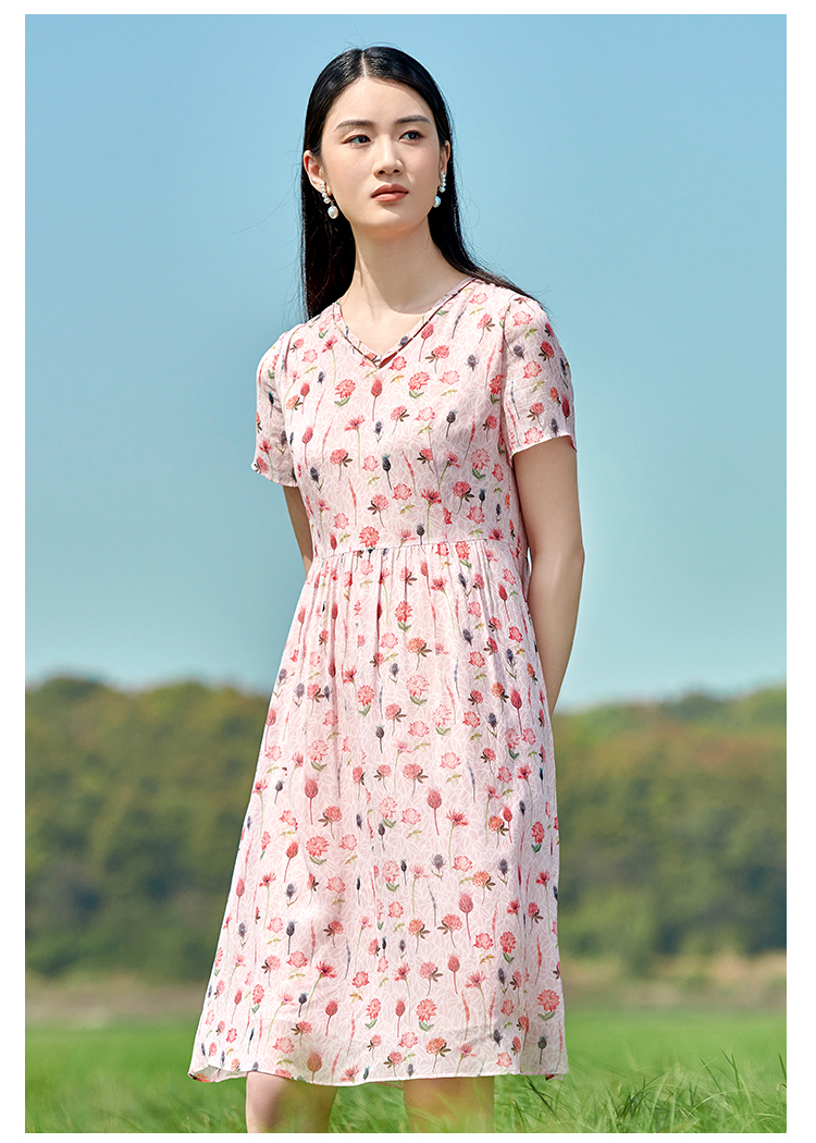 佐尔美2022夏季新款 桑蚕丝真丝乔其小碎花甜美连衣裙女E22LS52