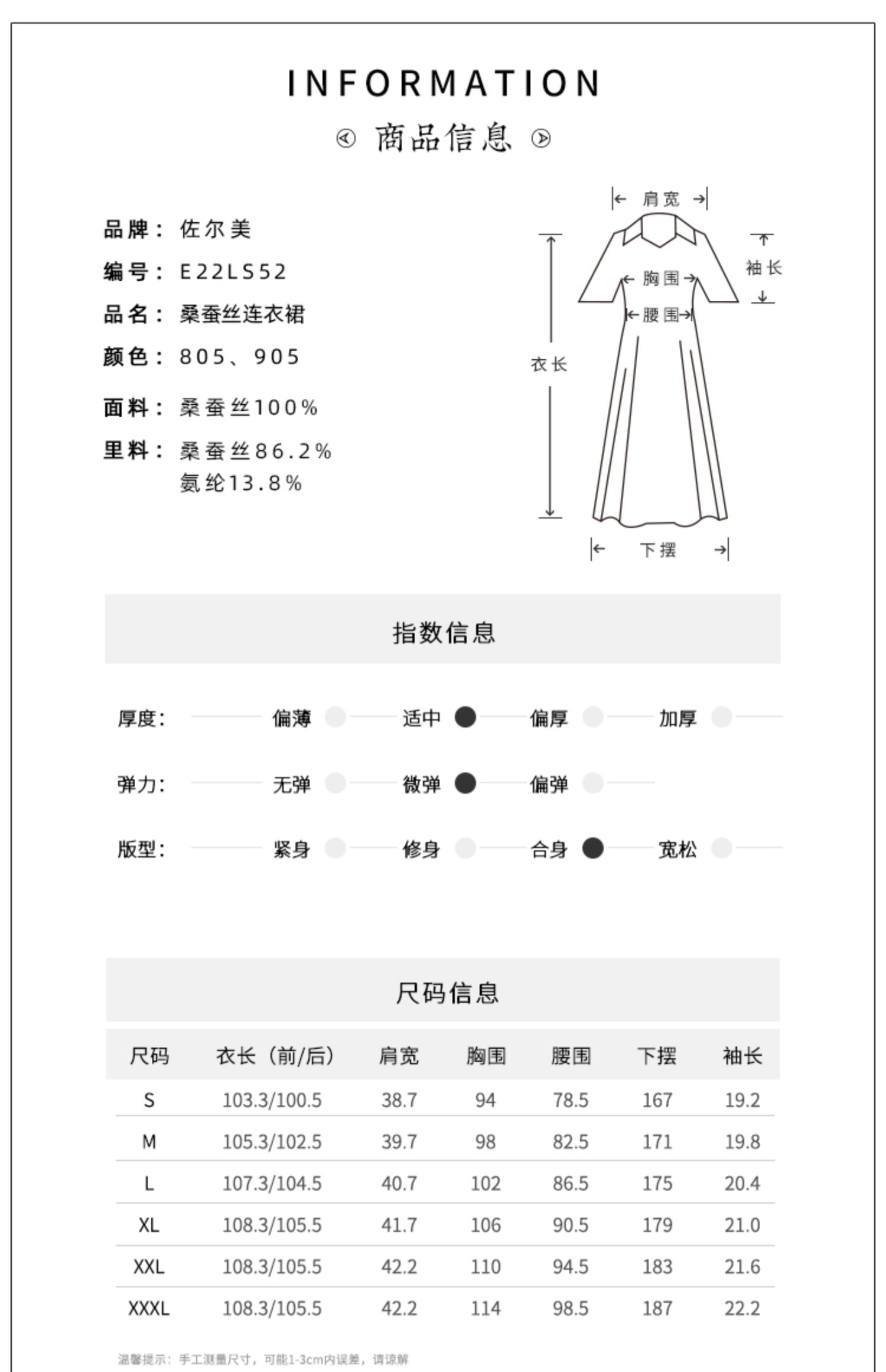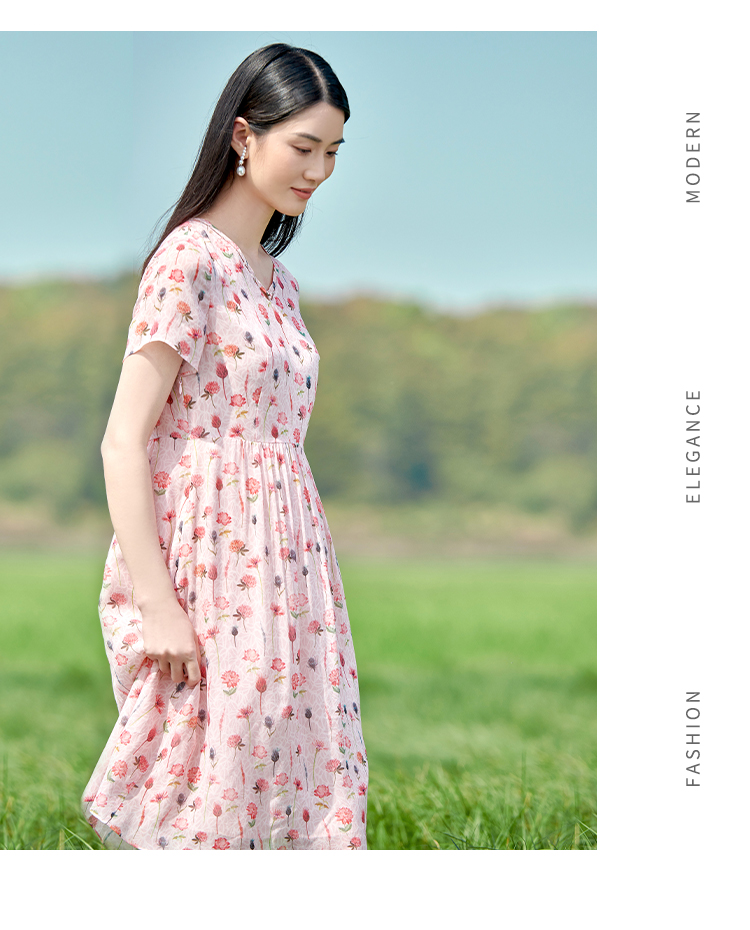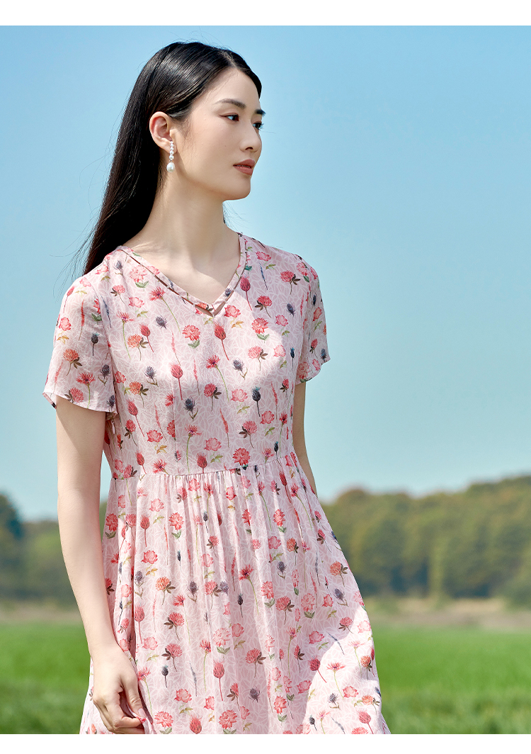 佐尔美夏季新款 优雅国风气质100%桑蚕丝中长连衣裙女E22LS16
