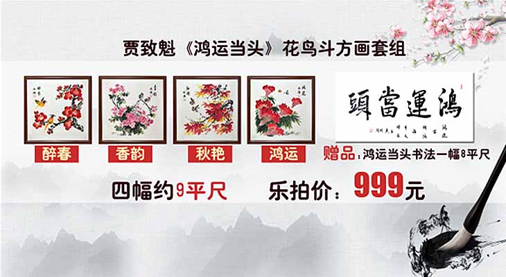 组件:斗方画*4, 装裱尺寸 54cm*54cm,