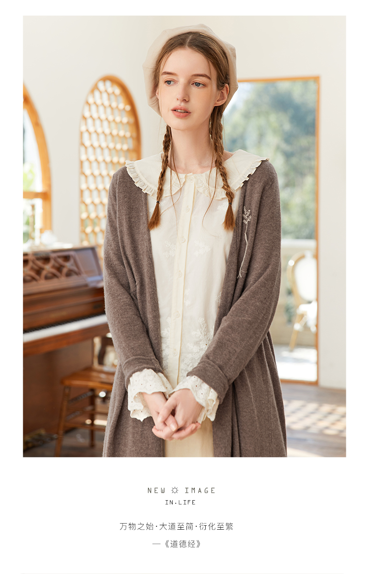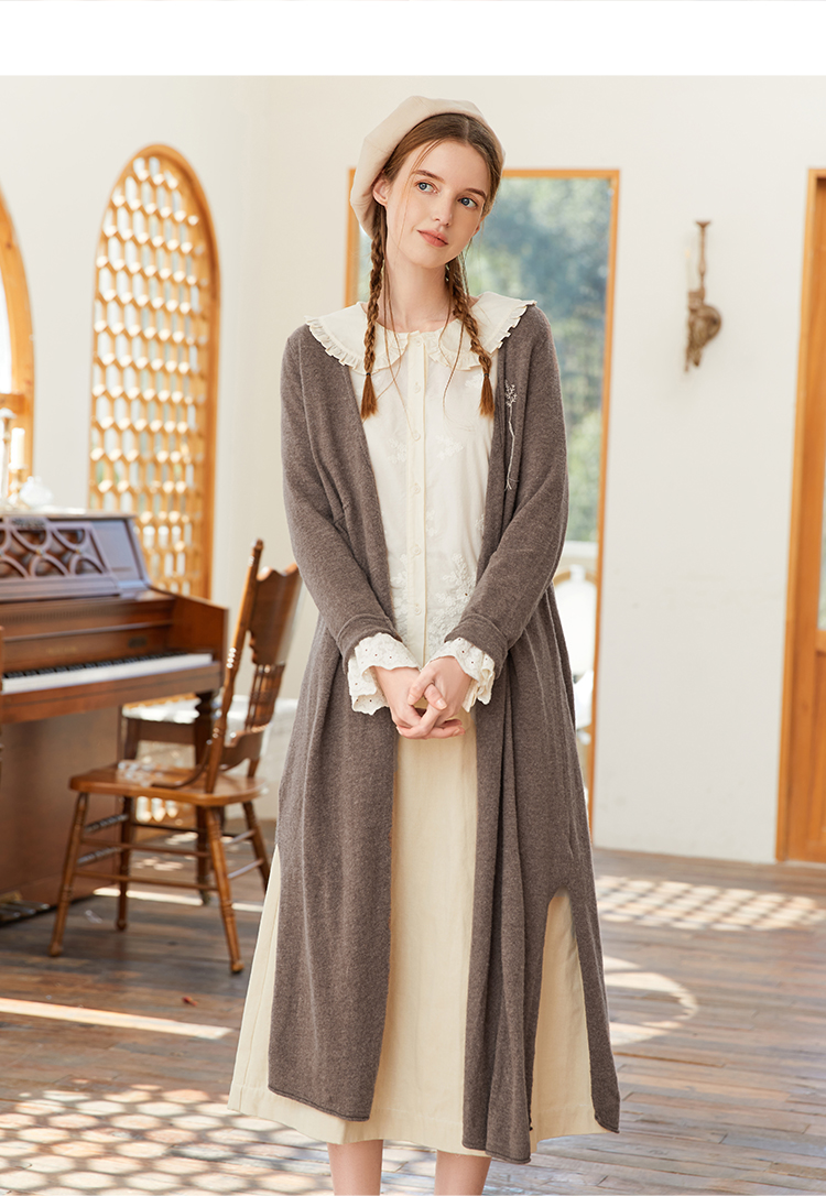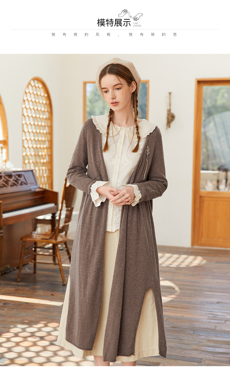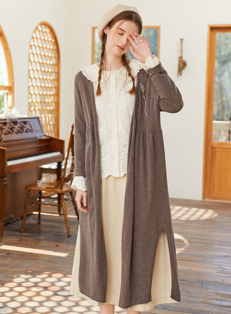 Famecoco范可儿开叉长款开身毛衣外套女春款羊毛针织衫