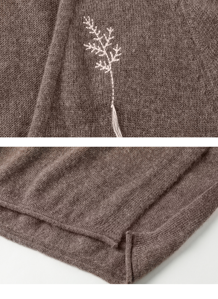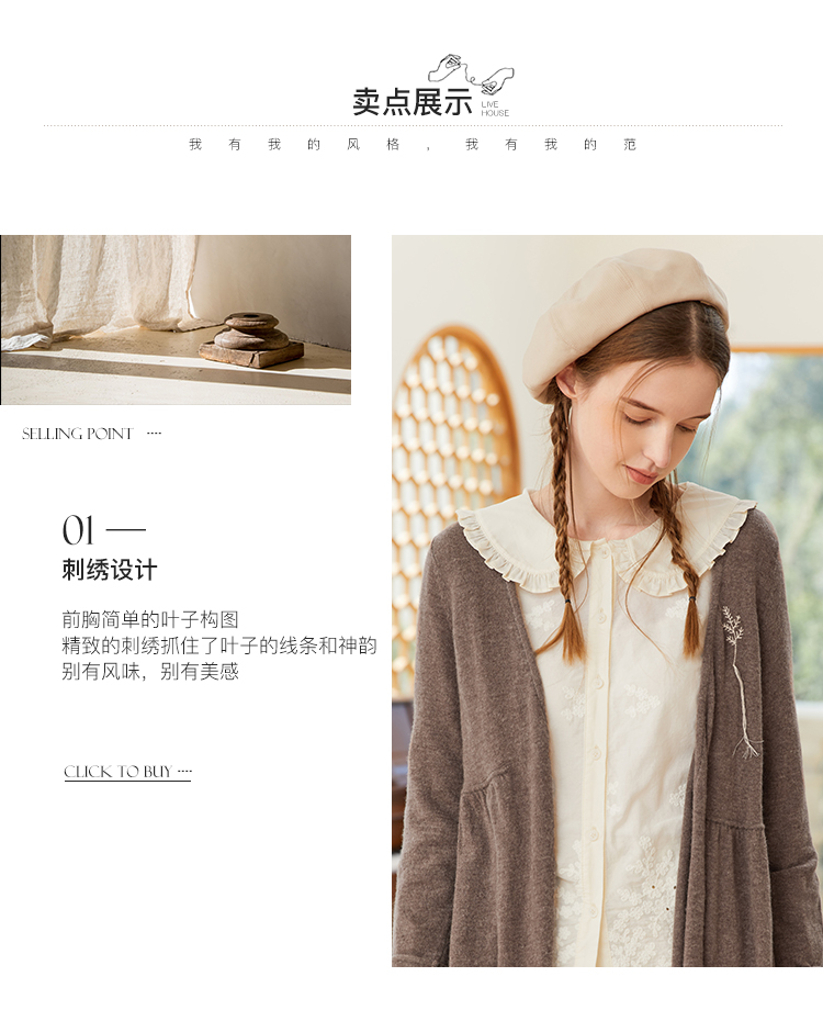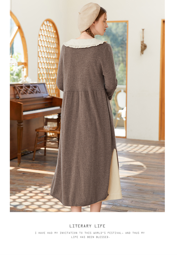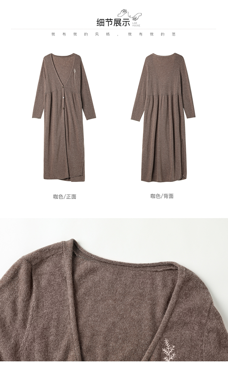 Famecoco范可儿开叉长款开身毛衣外套女春款羊毛针织衫