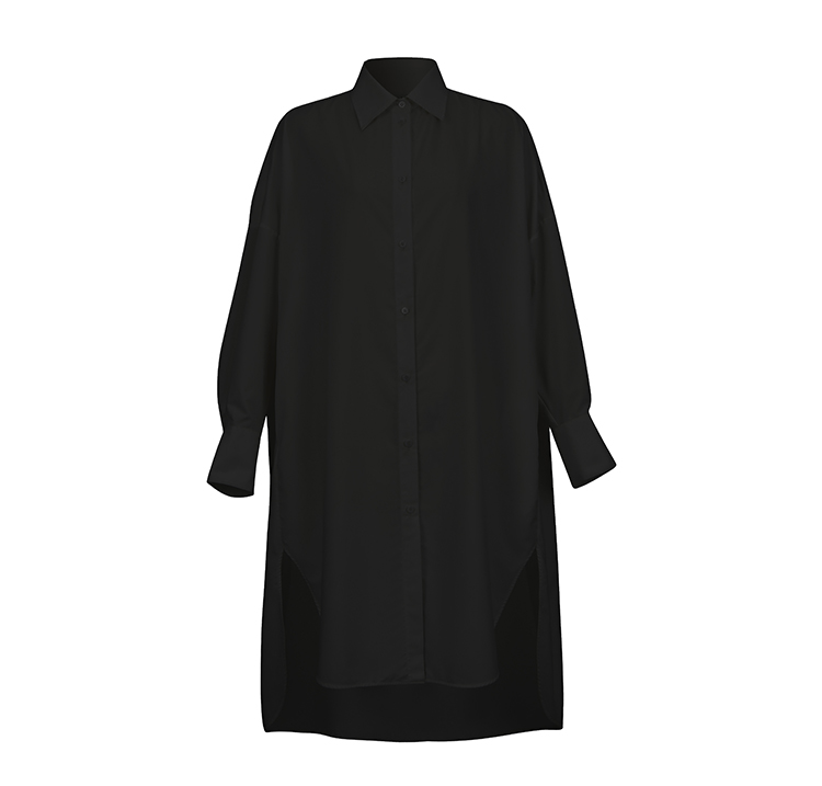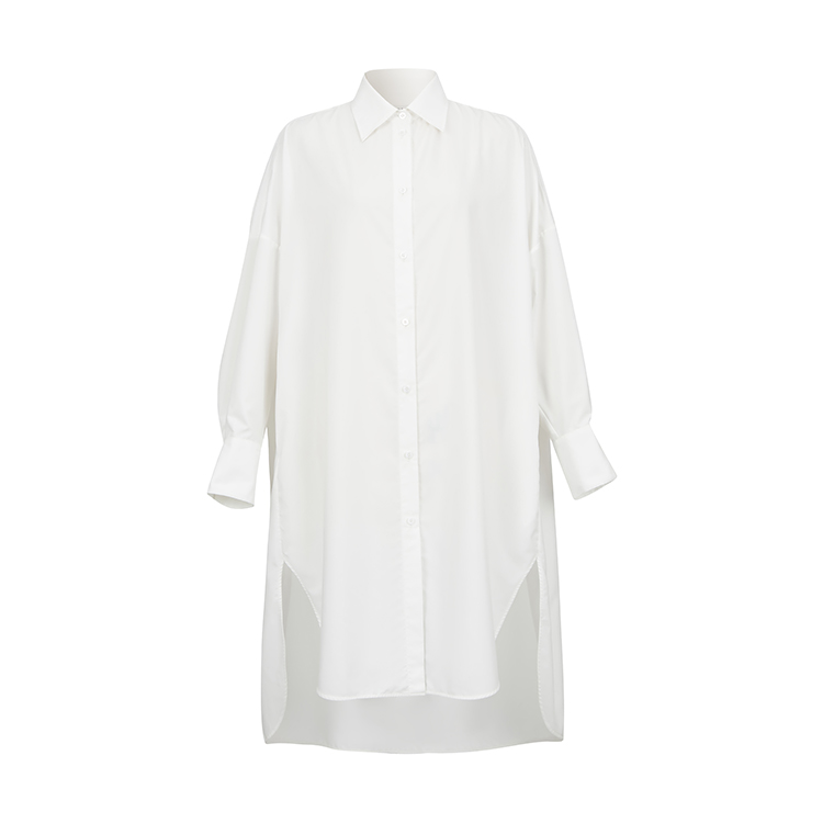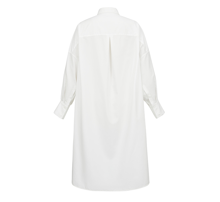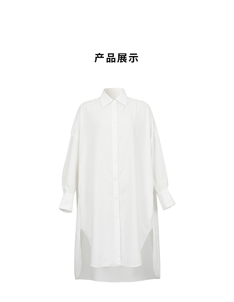 HIDEMI 不易皱清透极简大廓形oversize宽松剪刀领长款衬衫连衣裙 黑色/白色