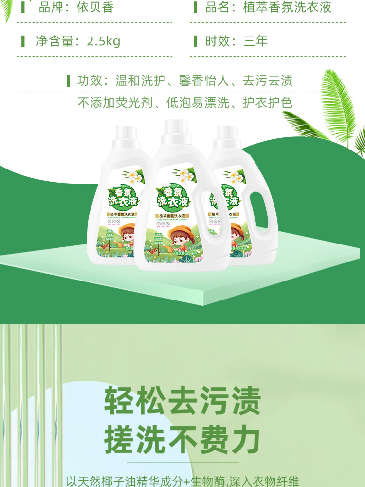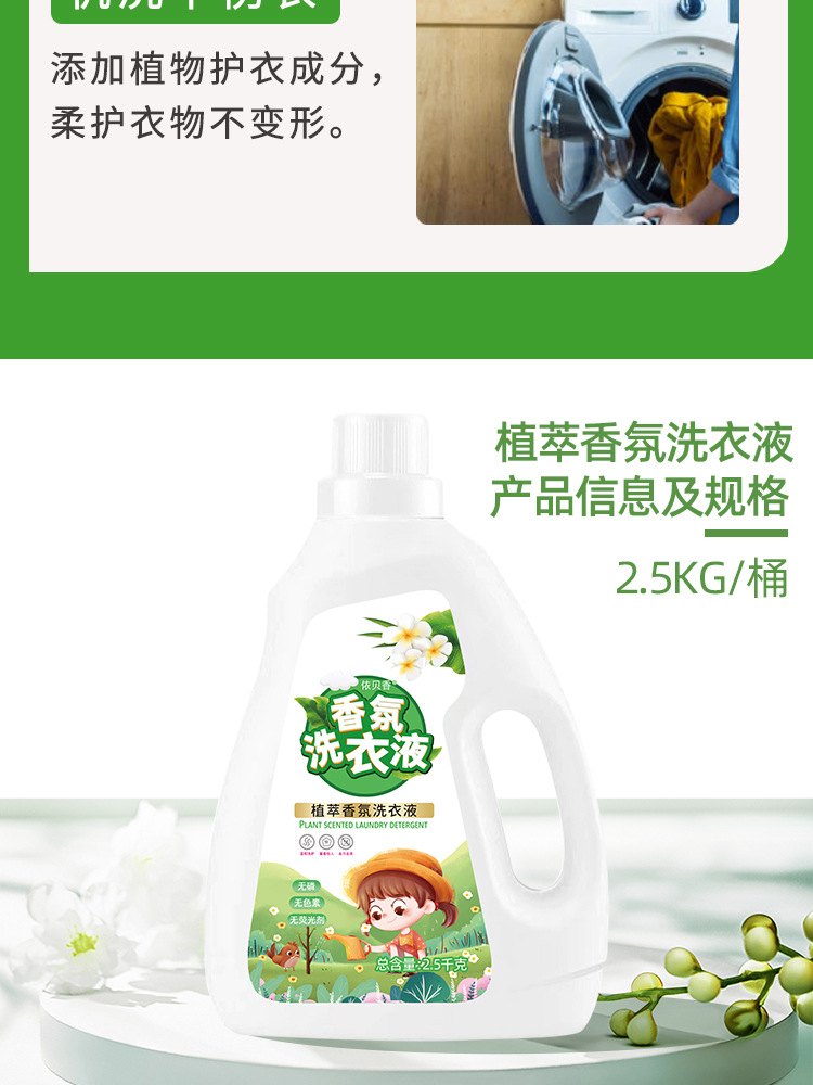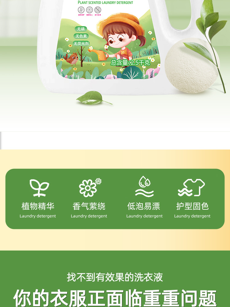 【让洗衣变得更轻松!香氛洗衣液】植萃香氛洗衣液5斤量家用大桶装2.5kg地推礼品洗衣液,轻松去污渍,搓洗不费力。ry