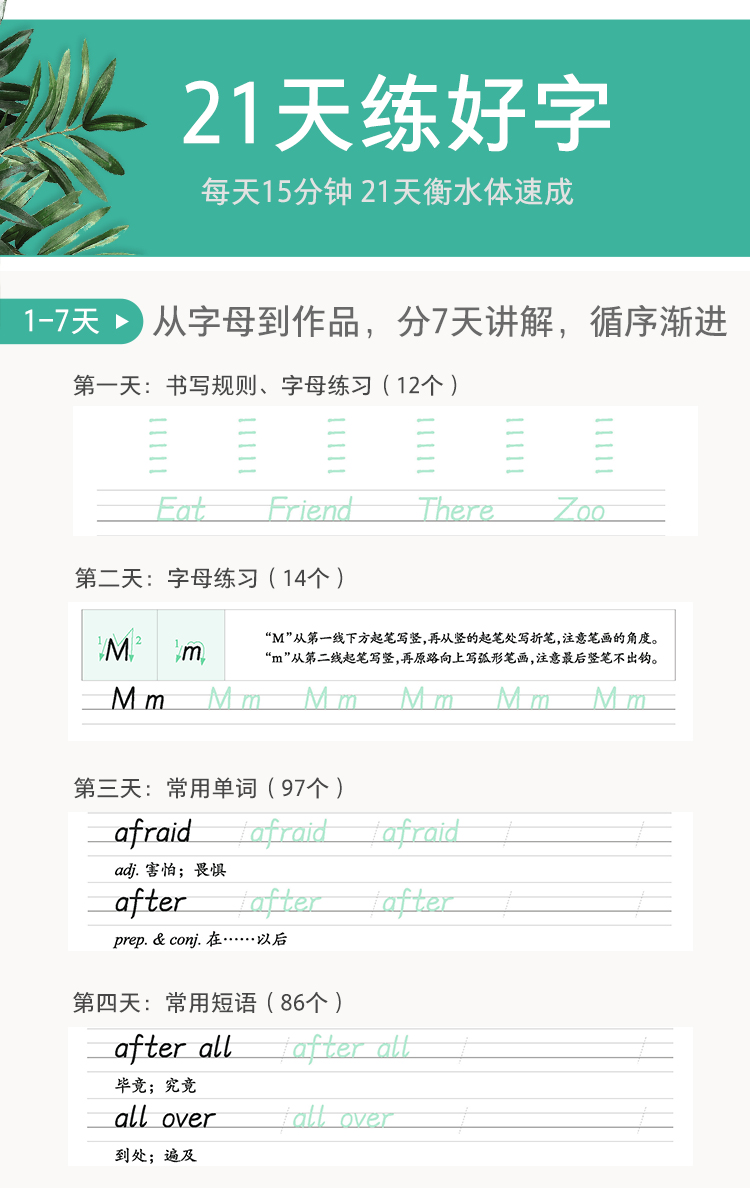 墨点字帖:7天学会衡水体每天一篇美丽英文英语字帖