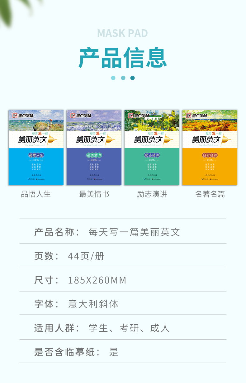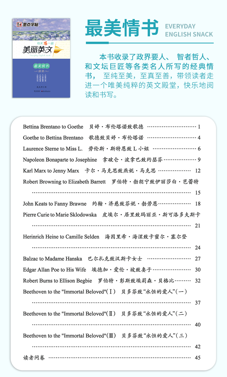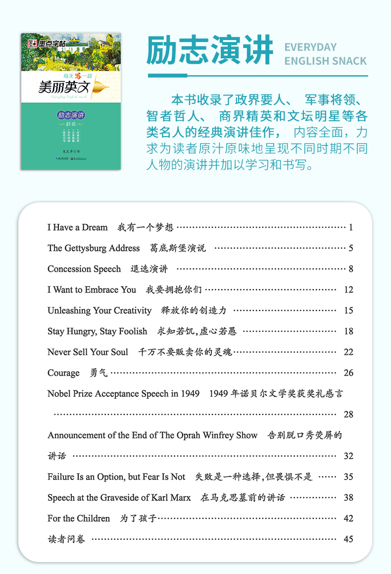 墨点字帖:每天一篇美丽英文·励志演讲 名著名篇 品悟人生 最美情书意大利斜体