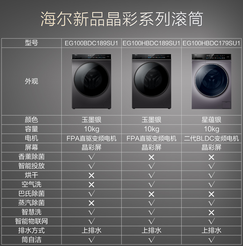 【磁悬浮直驱】海尔晶彩系列 10KG滚筒洗衣机全自动洗烘一体 直驱变频 加热洗 智能投放 晶彩大屏玉墨银外观EG100HBDC189SU1