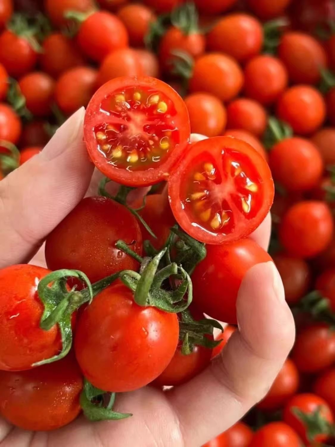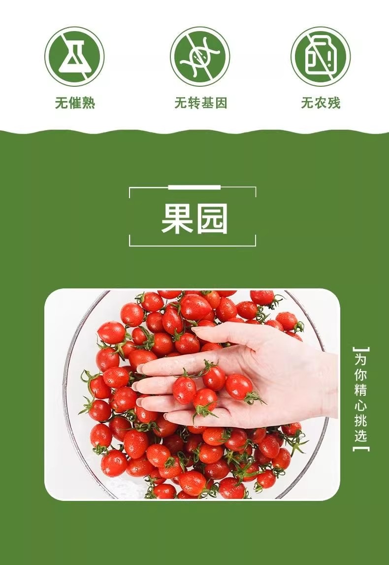 2.山东圣女果新鲜采摘发货,在物流运输过程晃动果子间摩擦会有果柄脱落的现象,不影响正常食用。