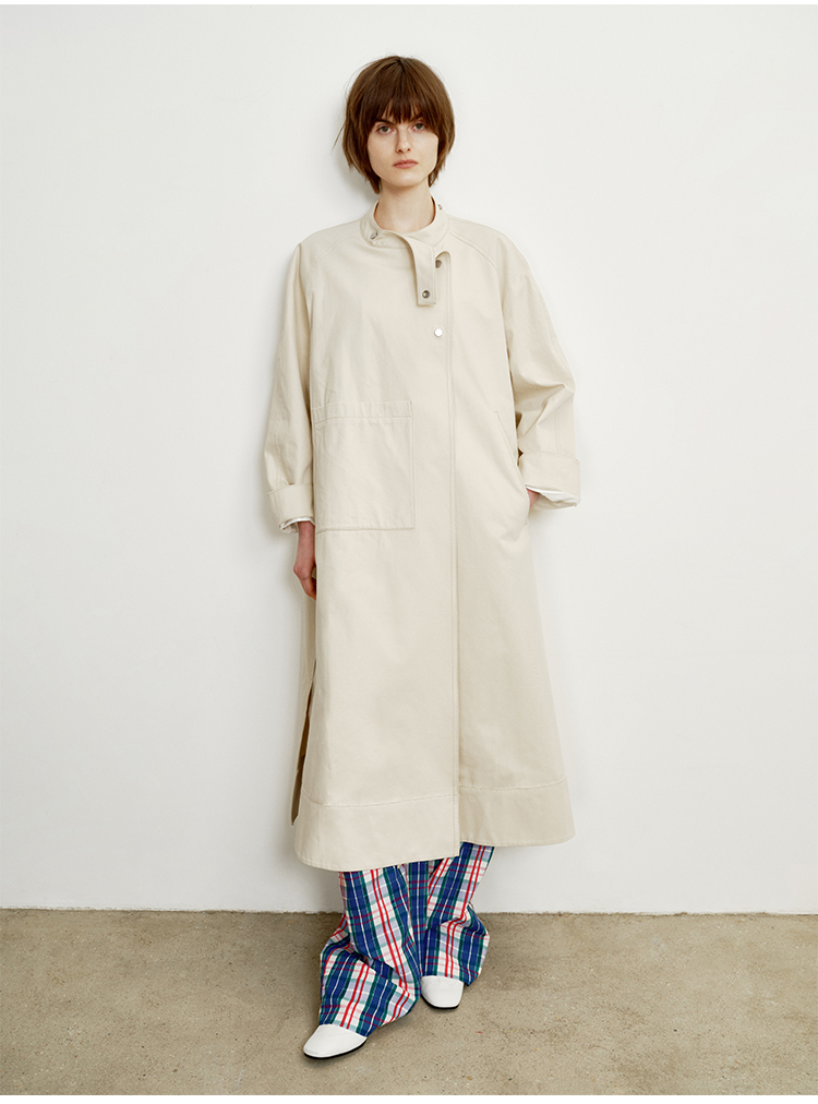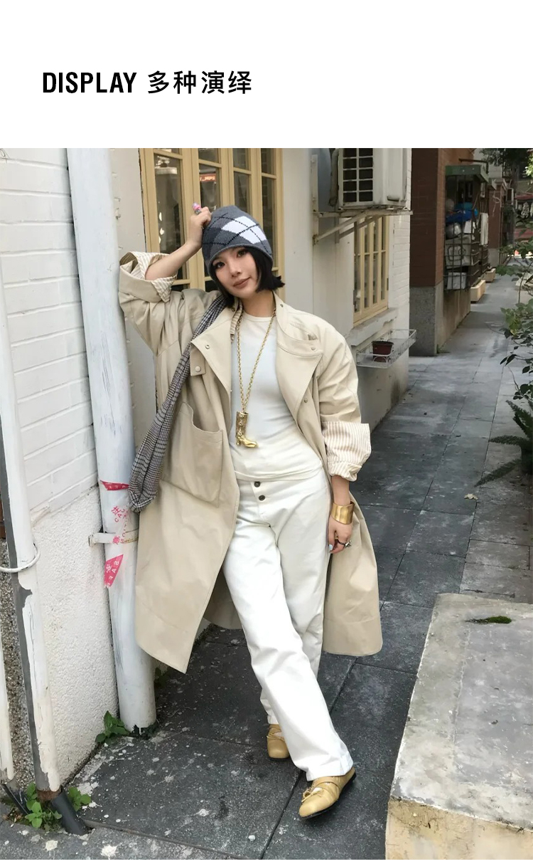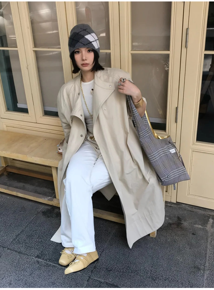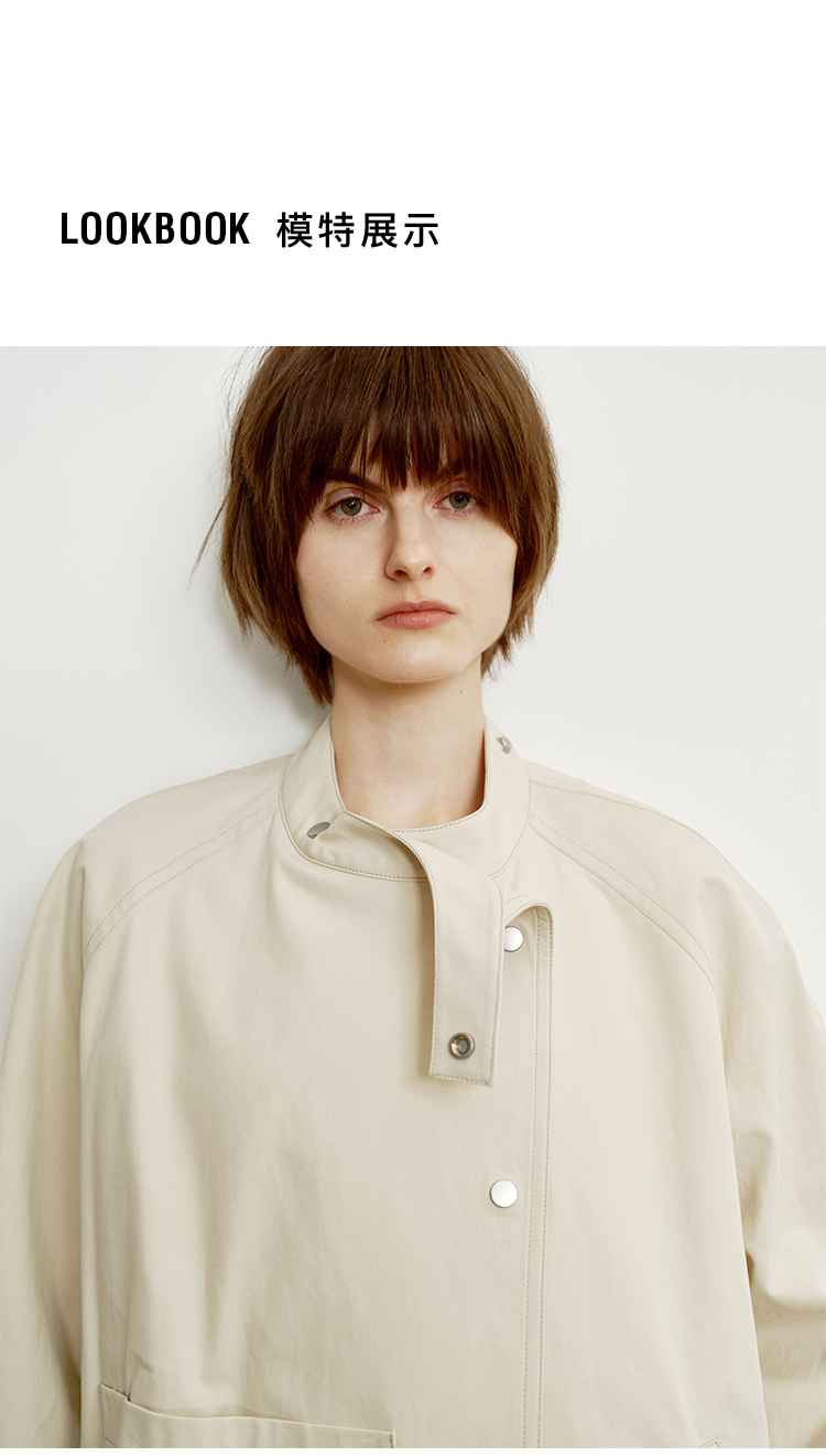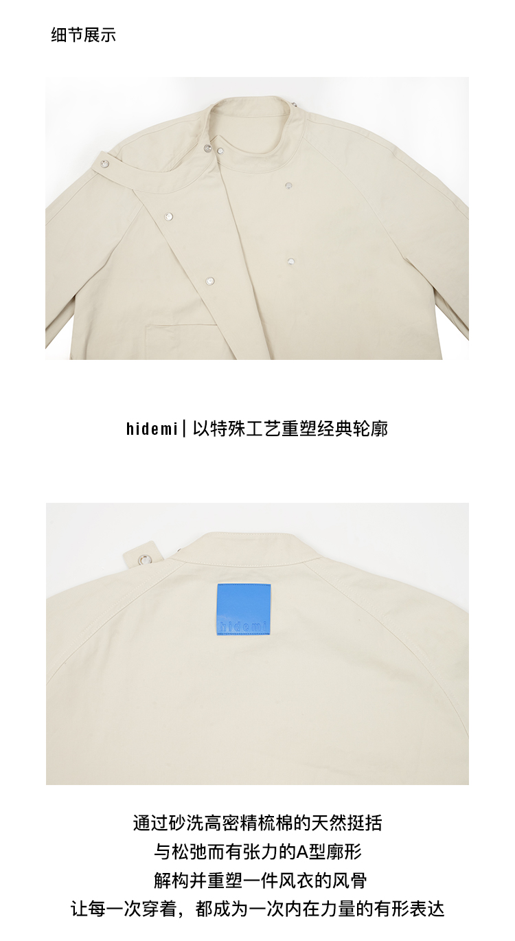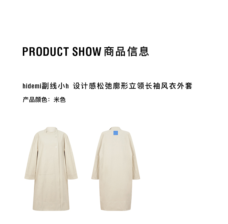 hidemi副线小h 设计感松弛廓形立领长袖风衣外套
