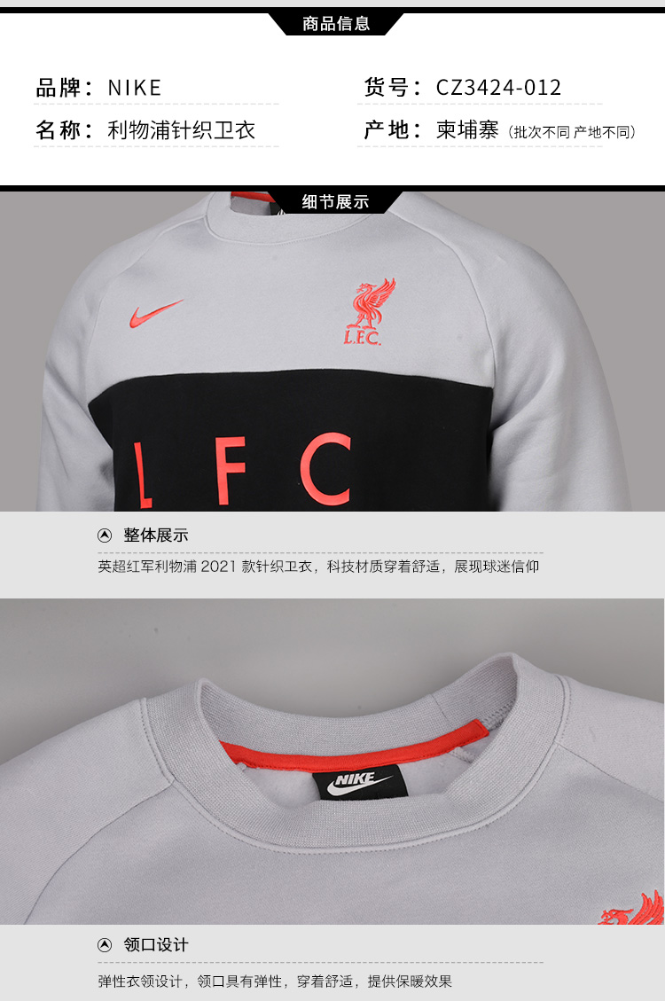 小李子:正品NIKE/耐克 利物浦AIR MAX主题运动卫衣男CZ3424-012