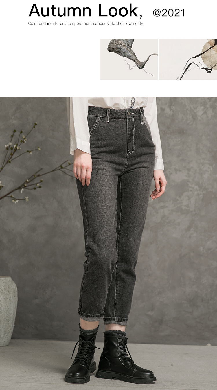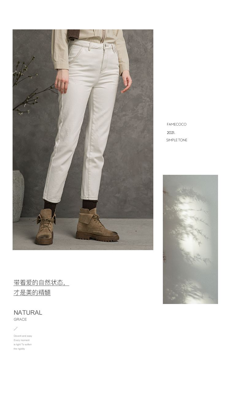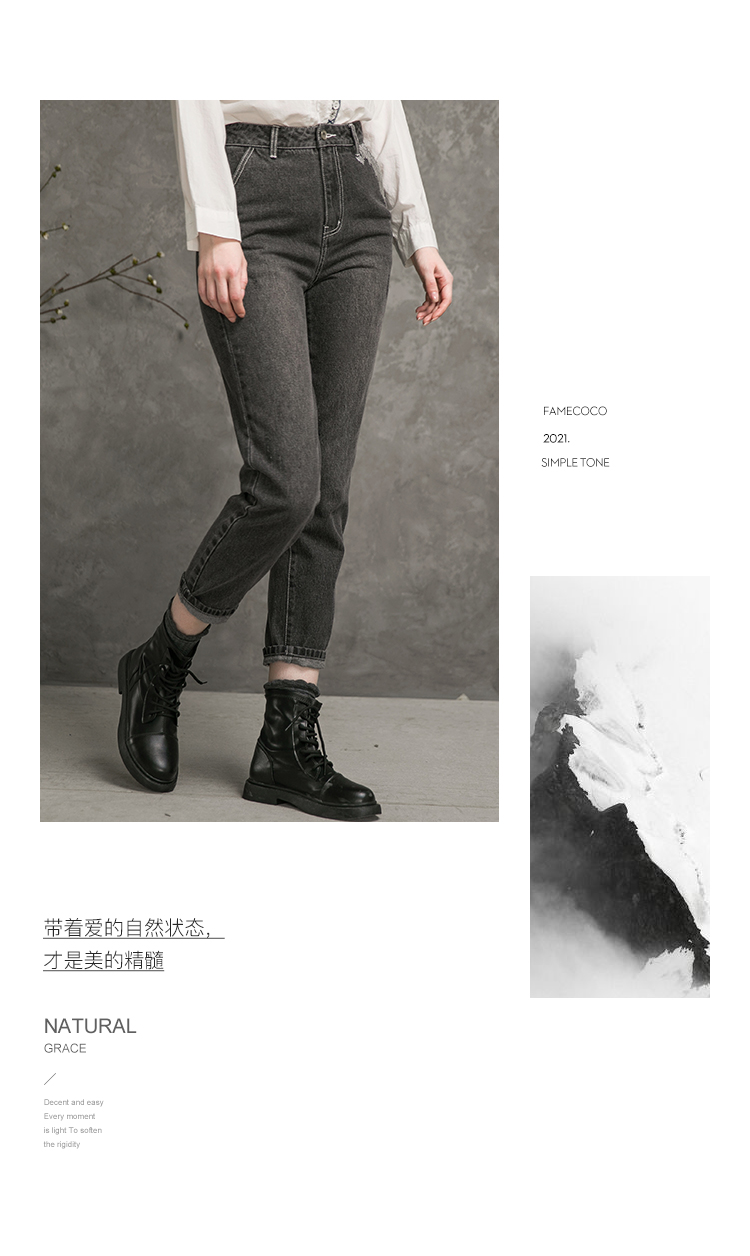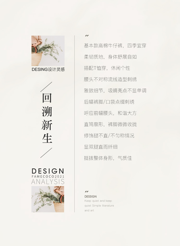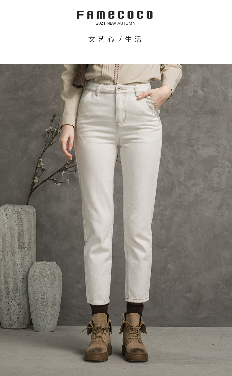 Famecoco范可儿刺绣牛仔裤女秋直筒设计感长裤F216GA009